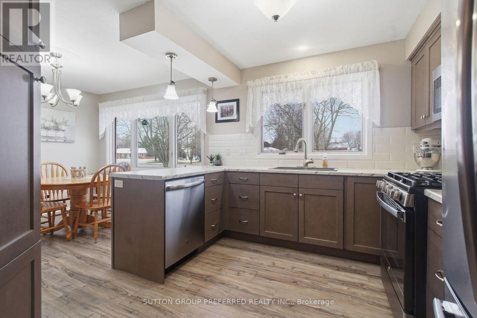Well appointed brick home with attached garage, shop, barn & chicken coop on 1.36 Acres is ideal for first time buyers, downsizers, families & hobbyists! Beautifully renovated 3 bedroom bungalow has a bright eat in kitchen with updated cupboards, newer stainless steel appliances & Pella window with B/I blinds in eating area. 2 newer bathrooms & a spacious L shaped lower level family room with gas fireplace. Basement also has utility room, laundry room & cold storage (not finished). Generous foyer between the garage & home with access to the landscaped yard with mature trees & L shaped patio for relaxing or entertaining. All renovations completed since 2021. New updated flooring & stairs, most windows, shingles, attic insulation, electrical reno, fireplace, garage door & opener. Multiple uses for both the huge insulated workshop with concrete floor, water & radiant gas heating on one side and lots of room for storage on the other side and the shed with lean to. Included are the Dewalt compressor, chain falls & remotes for the garage doors. Furnace was replaced in 2017. Just move in and enjoy! (id:64974)