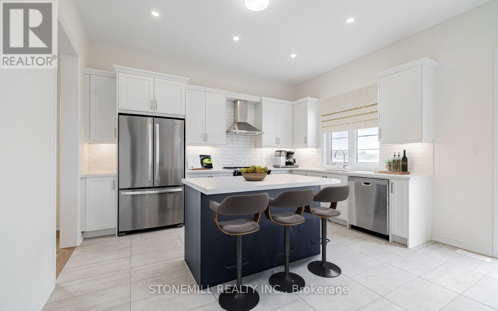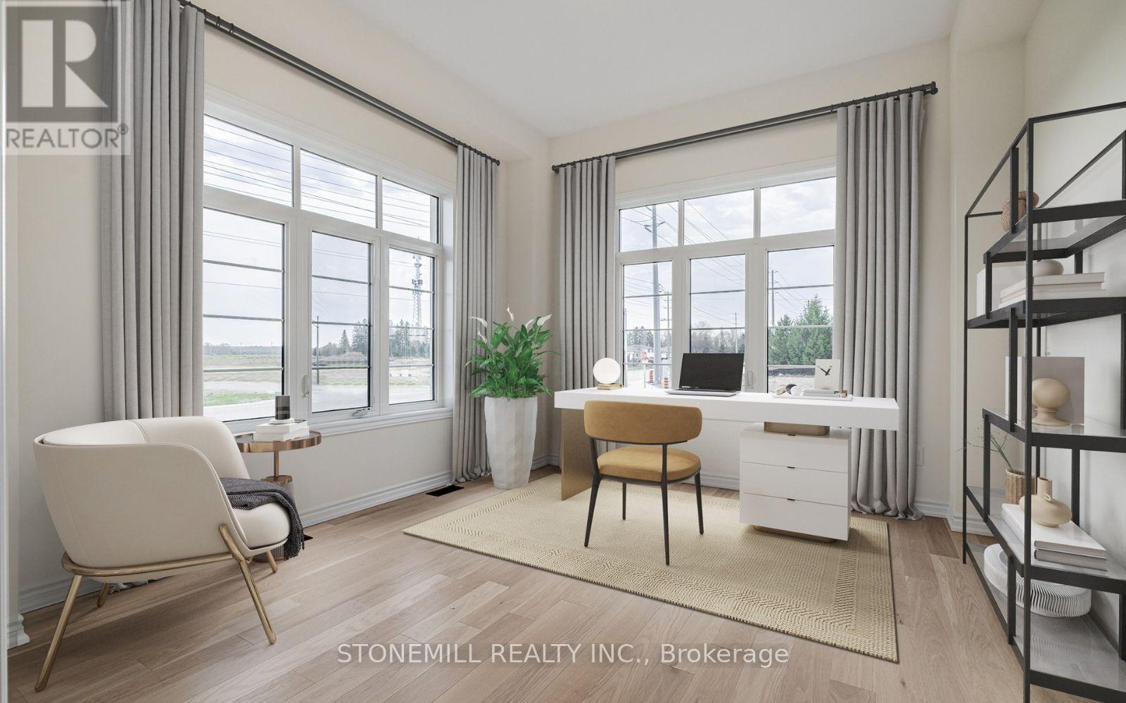Welcome to the Heartland Community by Brookfield Residential, an upscale, family-friendly neighborhood nestled in the charming Town of Baxter. This growing community is just a short drive from Alliston or Angus, providing ample access to outdoor activities along with modern lifestyle conveniences and energy efficient living. This stunning brand new 3100 sq ft Windermere model features over $100k in upgrades, including soaring 10' main floor ceilings, 4 generously sized bedrooms and oversized windows allowing an abundance of natural light throughout. A main floor office/study provides for a private work area, and the large mudroom leads to your 3-car garage, ensuring that parking is never an issue. The chef-inspired kitchen showcases upgraded two-toned cabinetry, backsplash and quartz countertops with a centre island and breakfast bar. Retreat upstairs to the primary bedroom with hardwood floors, raised tray ceiling, and 5-piece ensuite. Enjoy direct washroom access from all bedrooms, along with a generous sized laundry room and ample storage space. Stainless steel kitchen appliances and side by side washer and dryer are included and central A/C is already installed, making this home truly turnkey and ready for you to move in. Home is covered under the Tarion New Home Warranty. **Pictures have been virtually staged** (id:64974)