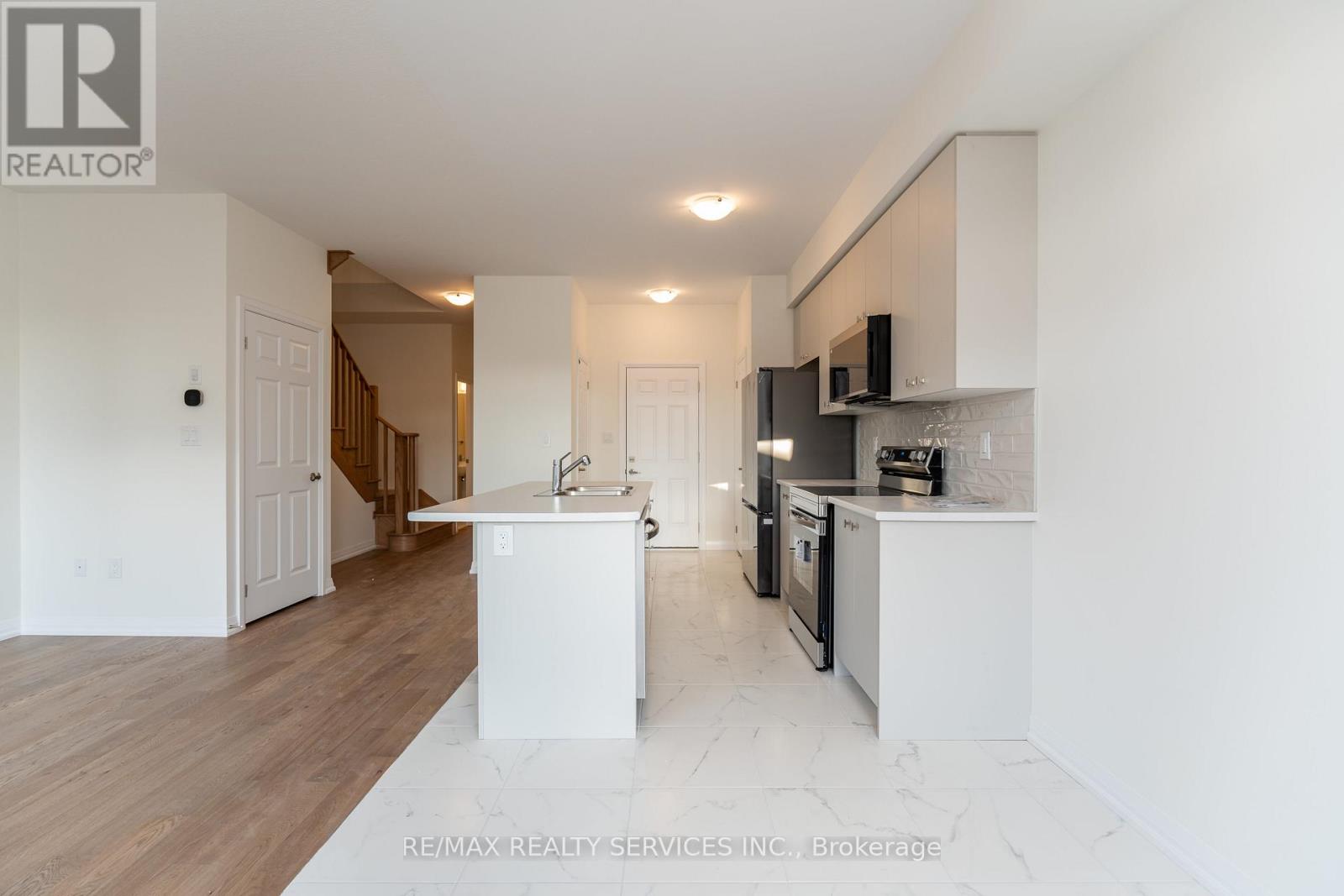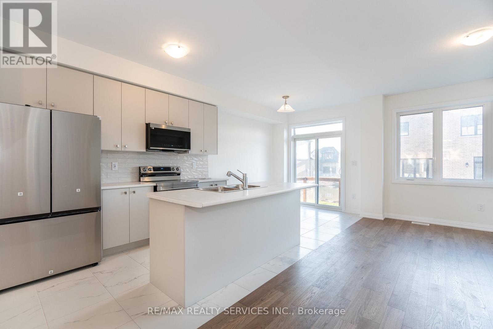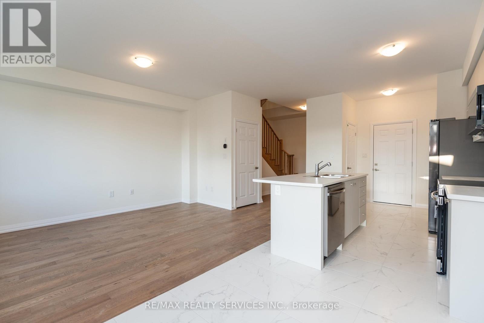 Stunning less than 2-year-old freehold 2-storey townhouse located in a newly built, family-friendly community of Caledonia. This beautifully maintained carpet-free home features a bright open-concept main floor with a spacious family room and a chef-inspired kitchen complete with center island, stainless steel appliances, pantry, and breakfast area overlooking the backyard-perfect for everyday living and entertaining. Convenient direct access from garage to home. Elegant oak staircase leads to the second level featuring a huge primary bedroom with walk-in closet and 4-piece ensuite, plus two additional generously sized bedrooms. Laundry room has been converted into a functional den/home office, ideal for today's work-from-home needs. Unfinished basement provides ample storage and future potential. Located close to parks, schools, shopping, and all major amenities. Move-in ready starting May 1st, 2026. (id:64974)