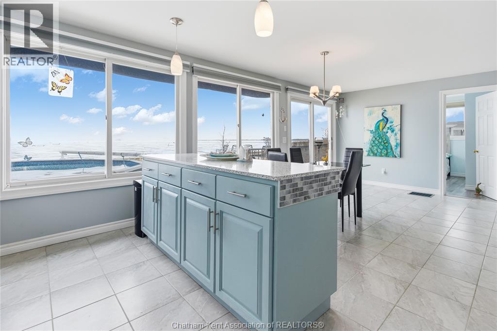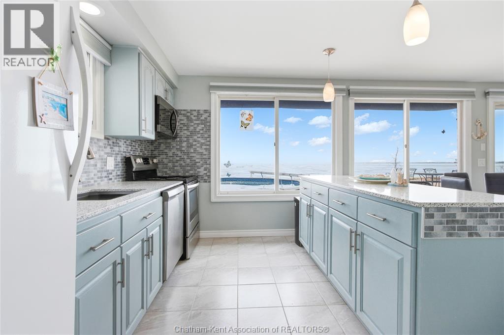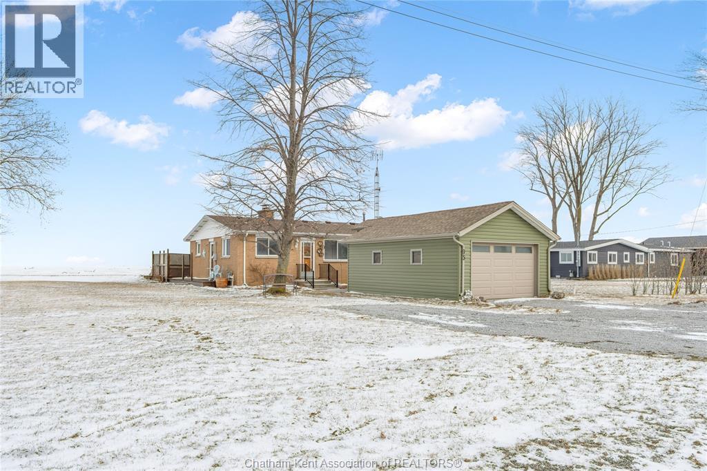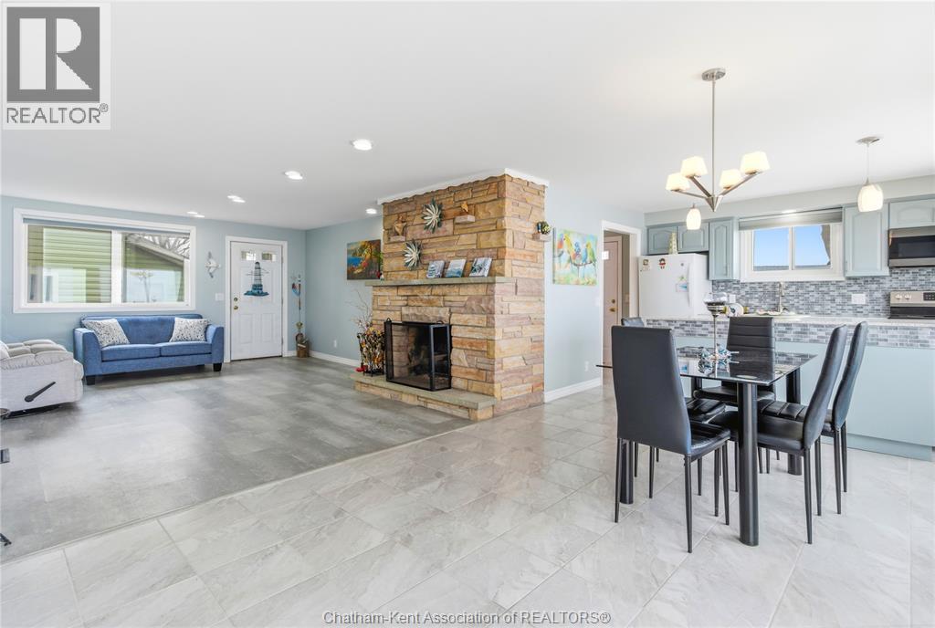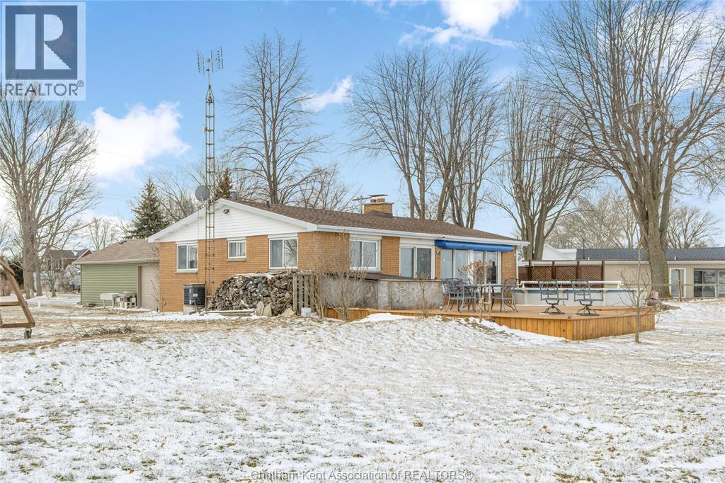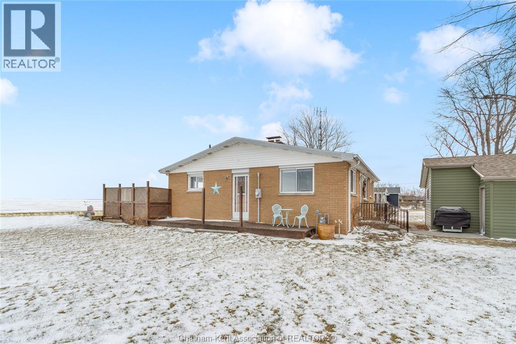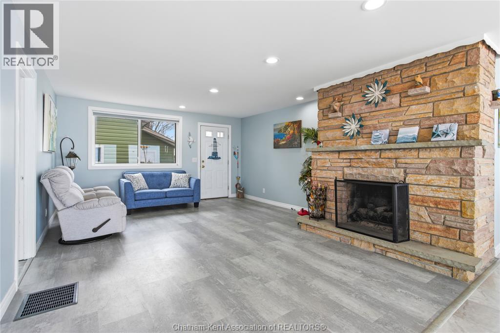 Enjoy the waterfront lifestyle with this charming 3-bedroom brick ranch, boasting a large detached garage and breathtaking views in Lighthouse Cove. Situated on a 50-foot lot with a steel breakwall, the home showcases tasteful upgrades and expansive windows that frame picturesque lake views. The open-concept layout is perfect for entertaining, featuring a beautiful kitchen with an island, quartz countertops, a dedicated dining area, and patio doors leading to a spacious deck. The living room provides a great space to relax by the gas fireplace and enjoy the view. Enjoy the convenient cheater ensuite that boasts a porcelain-tiled shower. So many updates including flooring, drywall, roof, furnace, air conditioner, hot water tank and so much more! Whether you’re relaxing by the pool, enjoying the hot tub, or taking in the stunning sunrises and sunsets, this home is ideal for hosting family and guests. With canals connecting to the lake and boat traffic, you’ll experience the energy of true waterfront living along with exceptional boating, swimming, and world-class fishing right on Lake St Clair. Conveniently located less than 10 minutes from Tilbury and Highway 401, 25 minutes to Chatham, and about 35 minutes to Windsor, this property is perfectly positioned for a staycation or year-round living. A $250 Melody Isle Association Fee grants access to the boat launch, beach, and lake lot. This property may be sold in conjunction with MLS #26004206 and MLS #26004208, providing a rare opportunity to assemble multiple parcels. Combined, they offer the potential for a substantial waterfront estate or your oversized future endeavours. Buyer to conduct their own due diligence. Don’t miss out on your slice of Lighthouse Cove—contact us today for more details (id:64974)