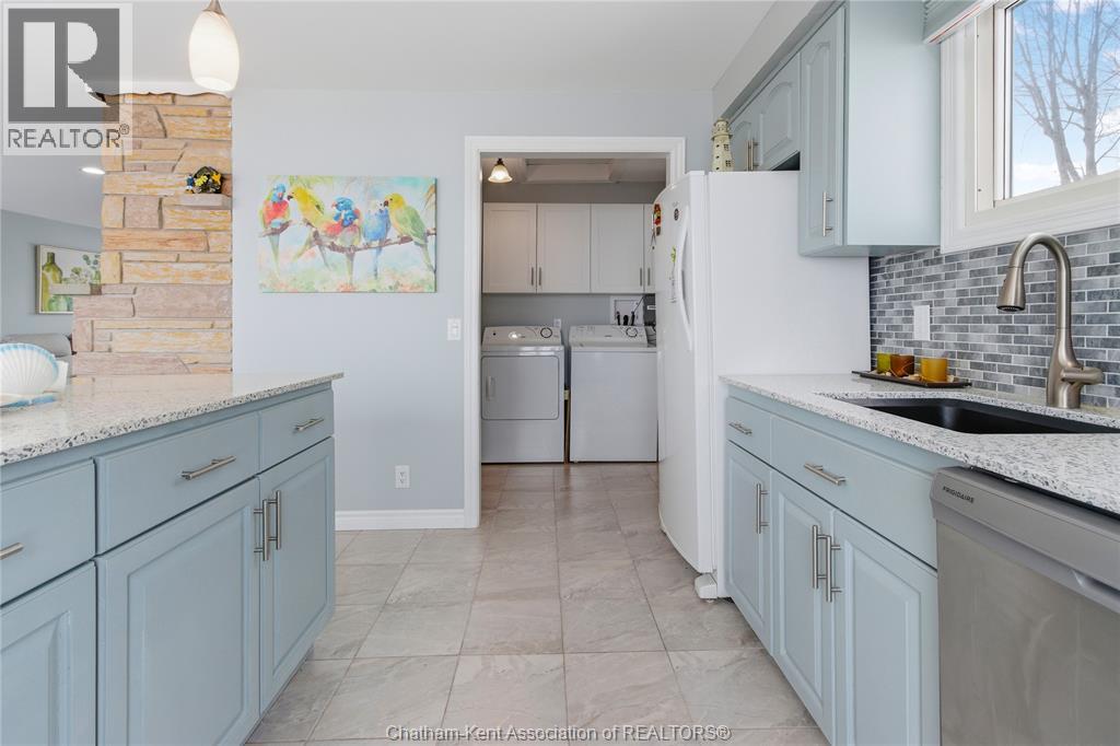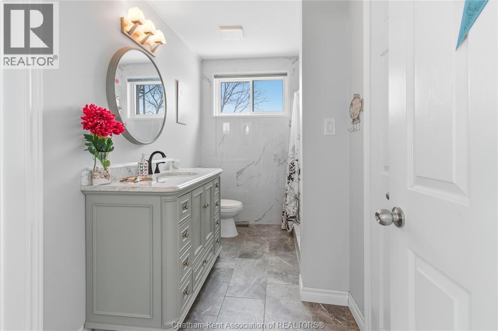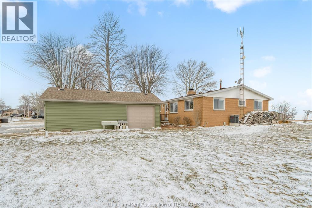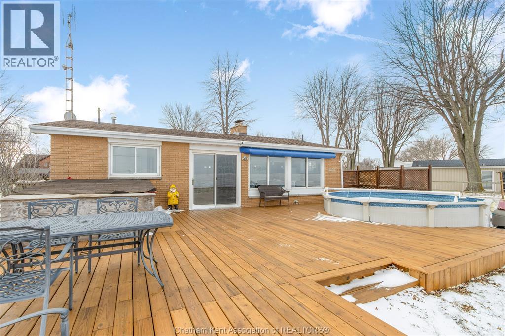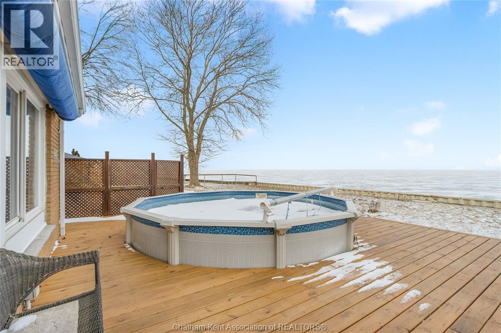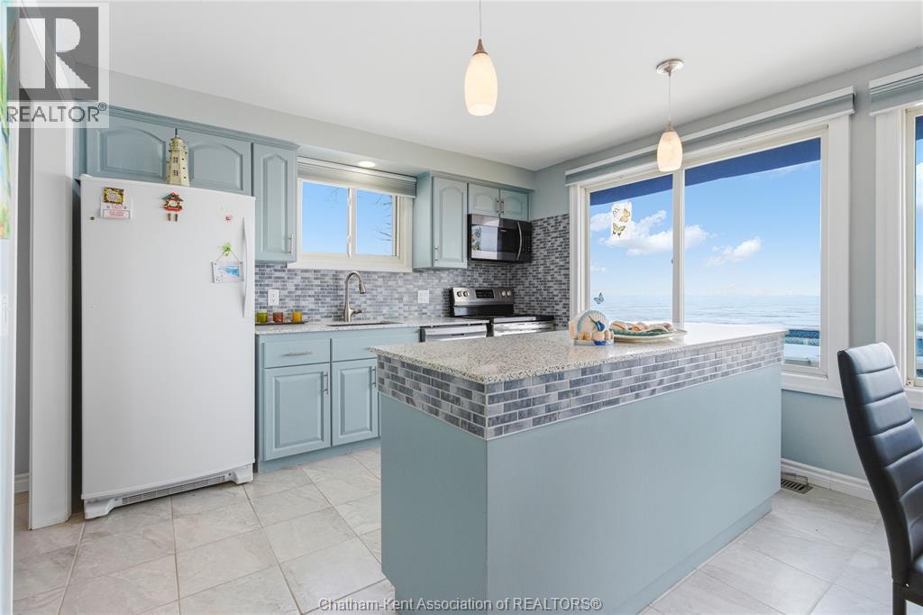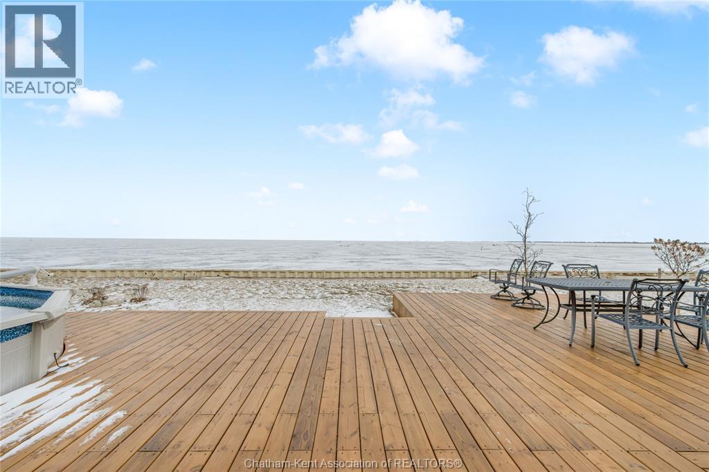 Enjoy the waterfront lifestyle with this charming 3-bedroom brick ranch, boasting a large detached garage and breathtaking views in Lighthouse Cove. Situated on a 50-foot lot with a steel breakwall, the home showcases tasteful upgrades and expansive windows that frame picturesque lake views. The open-concept layout is perfect for entertaining, featuring a beautiful kitchen with an island, quartz countertops, a dedicated dining area, and patio doors leading to a spacious deck. The living room provides a great space to relax by the gas fireplace and enjoy the view. Enjoy the convenient cheater ensuite that boasts a porcelain-tiled shower. So many updates including flooring, drywall, roof, furnace, air conditioner, hot water tank and so much more! Whether you’re relaxing by the pool, enjoying the hot tub, or taking in the stunning sunrises and sunsets, this home is ideal for hosting family and guests. With canals connecting to the lake and boat traffic, you’ll experience the energy of true waterfront living along with exceptional boating, swimming, and world-class fishing right on Lake St Clair. Conveniently located less than 10 minutes from Tilbury and Highway 401, 25 minutes to Chatham, and about 35 minutes to Windsor, this property is perfectly positioned for a staycation or year-round living. A $250 Melody Isle Association Fee grants access to the boat launch, beach, and lake lot. This property may be sold in conjunction with MLS #26004206 and MLS #26004208, providing a rare opportunity to assemble multiple parcels. Combined, they offer the potential for a substantial waterfront estate or your oversized future endeavours. Buyer to conduct their own due diligence. Don’t miss out on your slice of Lighthouse Cove—contact us today for more details (id:64974)