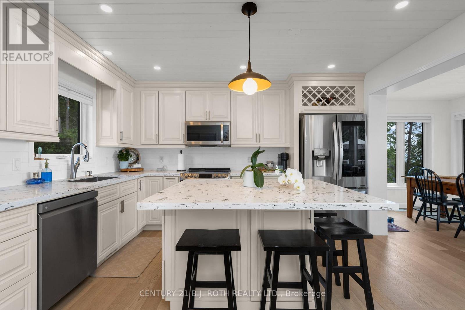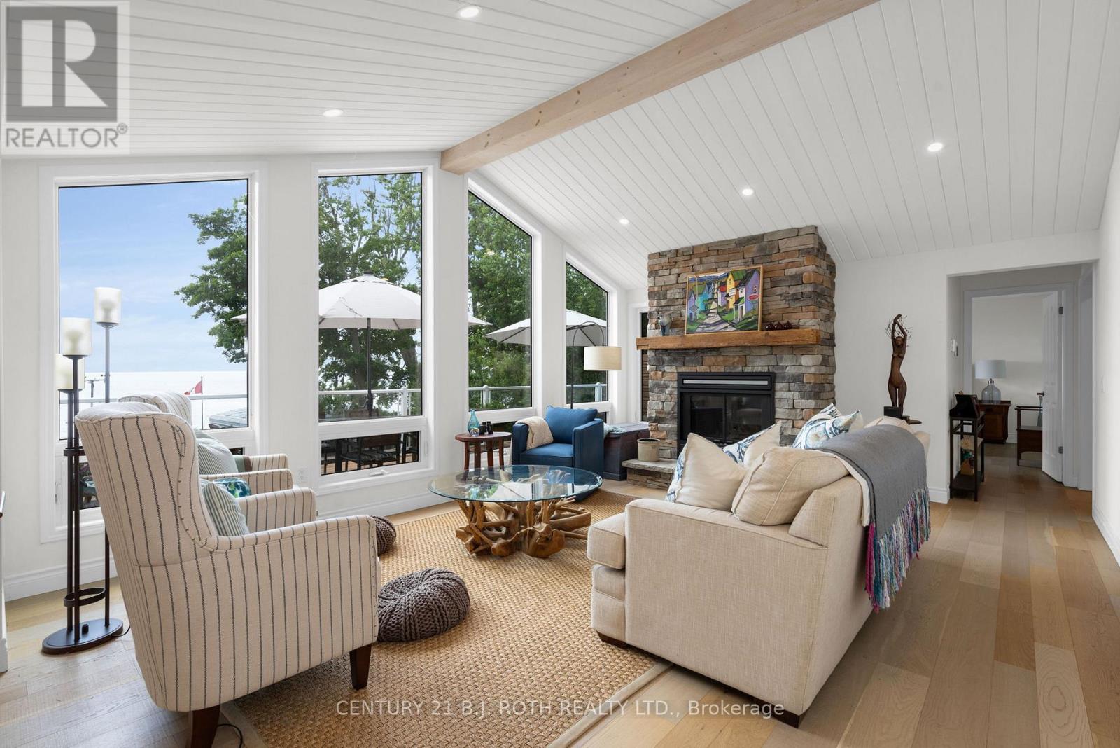 Don't be deceived by this home's modest roadside appearance-behind the front door awaits a private lakeside retreat offering over 2,700 sq. ft. of renovated living space. Ideal as a full-time residence or cottage getaway, this 2020 renovated waterfront property is just 20 minutes from Barrie and Orillia and minutes from Highway 11. Enjoy 81 feet of clean Lake Simcoe shoreline with a 72-foot dock and a shallow beach cove perfect for children and launching kayaks or paddle boards. Oversized glass doors on both levels frame stunning lake views as soon as you step inside. The upper level offers engineered hardwood floors, tongue and groove ceilings with pot lights, and an open living area centered around south-facing windows and a wood-burning fireplace. The kitchen features quartz countertops, a functional island, and upgraded LG appliances. Three bedrooms and two bathrooms include a primary suite with a custom closet, three piece ensuite, and private walkout. The lower level walkout includes a fourth bedroom, third bathroom, modern wet bar or pantry, and a laundry room. Vinyl flooring supports easy indoor-outdoor living, and a natural stone gas fireplace warms the spacious rec room. Step outside to a shaded patio leading to the 6-person Jacuzzi hot tub with lounger seating. Additional upgrades include full water treatment with UV and charcoal filtration, Rogers Ignite high-speed internet, smart-home features, new A/C (2022), new furnace with UV sterilizer (2021), new roof on house and garage (2020), 200-amp service, Generac generator, insulated triple garage with subpanel and heated workshop, invisible pet fencing, a 220V EV outlet, and two sheds, one with hydro. Move in and enjoy exceptional lakefront living. (id:64974)
