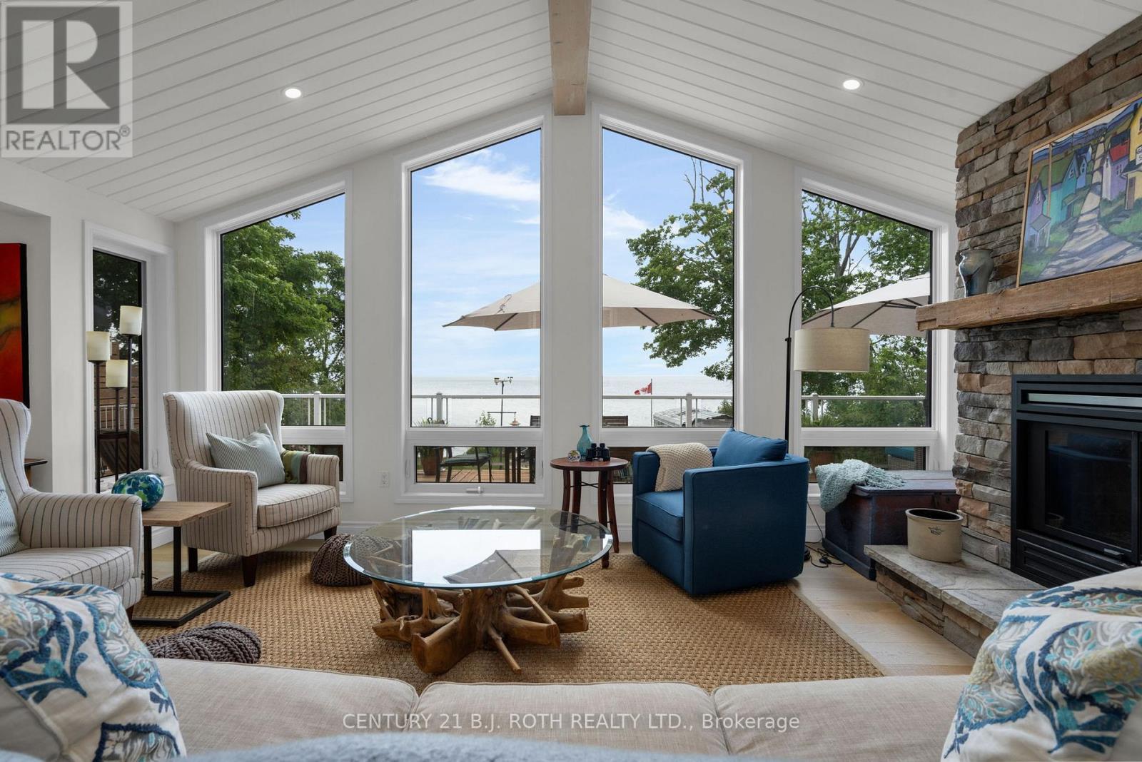 Set on 81 feet of clean, south-facing shoreline, this renovated bungalow offers over 2,700 sq ft of finished living space and a layout that works equally well as a full-time home or weekend retreat. Inside, large windows and glass doors bring in natural light and frame the lake from both levels. The main floor features an open living and dining area with a wood-burning fireplace, engineered hardwood floors, and a kitchen with quartz countertops, island, and upgraded appliances. Three bedrooms and two bathrooms include a primary suite with a walkout, custom closet, and 3-piece ensuite. The fully finished walkout basement adds flexibility with a spacious rec room, gas fireplace, fourth bedroom, third bathroom, wet bar or kitchenette, and laundry. This level connects directly to a covered patio and hot tub area, creating a seamless indoor-outdoor setup. Outside, the property is designed for enjoying the water, with a 72-foot dock, shallow beach entry, and space for swimming, paddling, or relaxing by the lake. Extensive updates and features include new shingles (2020), furnace with UV sterilizer (2021), A/C (2022), water treatment system with UV and charcoal filtration, 200-amp service, Generac generator, and smart home integration. The insulate triple garage includes, heat, subpanel, and EV outlet, along with additional storage in two sheds (one with hydro). Located within easy reach of Barrie, Orillia, and Highway 11, this is a well-rounded waterfront property now offered at a compelling price (id:64974)