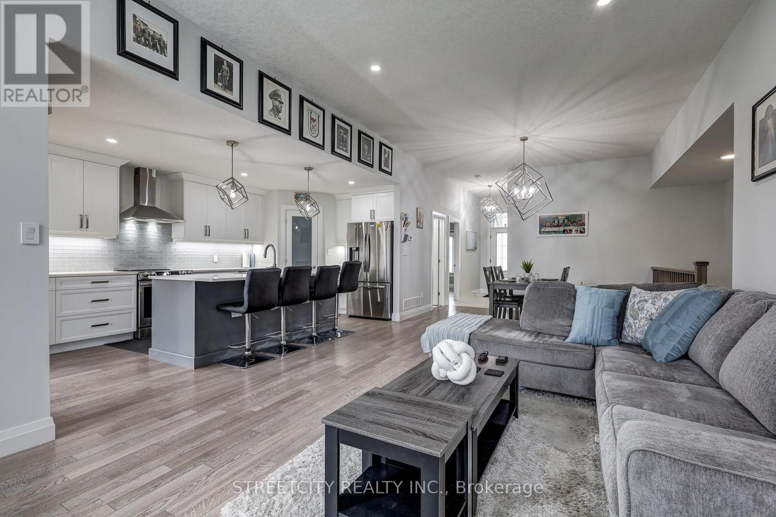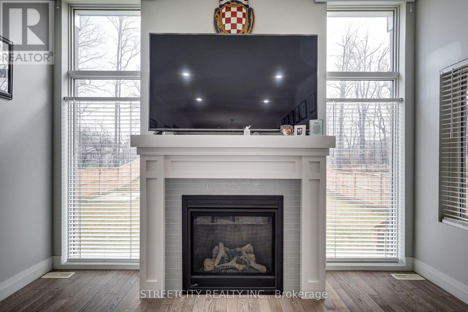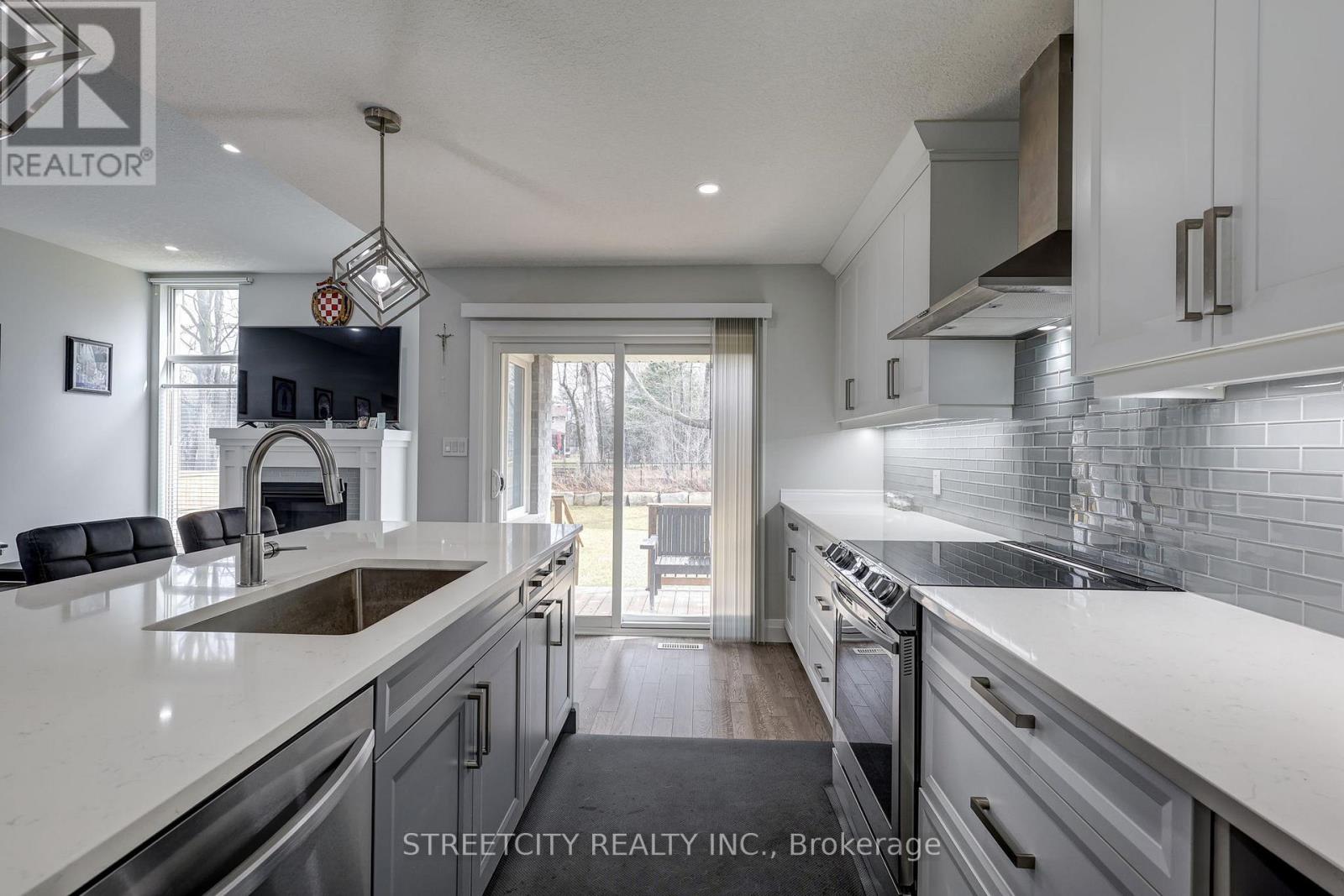 This stunning 2+2 bedroom, 3-bathroom Don West built home sits on a beautifully treed lot just minutes from Highway 401, London, and the beaches of Port Stanley. The main floor offers a bright, open-concept layout highlighted by a gorgeous great room with engineered hardwood flooring, a cozy gas fireplace, and scenic views of the private yard. The kitchen is a chef's dream, featuring stone countertops, a pantry, and a stylish backsplash, all flowing seamlessly into the spacious dining area-perfect for entertaining or enjoying family meals. Patio doors lead to a covered rear patio and a fully fenced backyard with plenty of room for kids, pets, or even a future pool. The primary suite is a true retreat, complete with a luxurious 5-piece ensuite showcasing double sinks, a soaker tub, and a walk-in shower, along with a generous walk-in closet and convenient access to the main floor laundry. A second bedroom and an additional 4-piece bathroom complete the main level. The fully finished lower level is ideal for a growing family, offering two more bedrooms, a 3-piece bathroom, and ample space for teenagers or family movie nights. A stunning concrete driveway and double car garage provide plenty of parking. Located within the Southwold school district and within walking distance to two parks, this home offers the perfect blend of comfort, style, and family-friendly living. Don't wait on this stunning home! (id:64974)