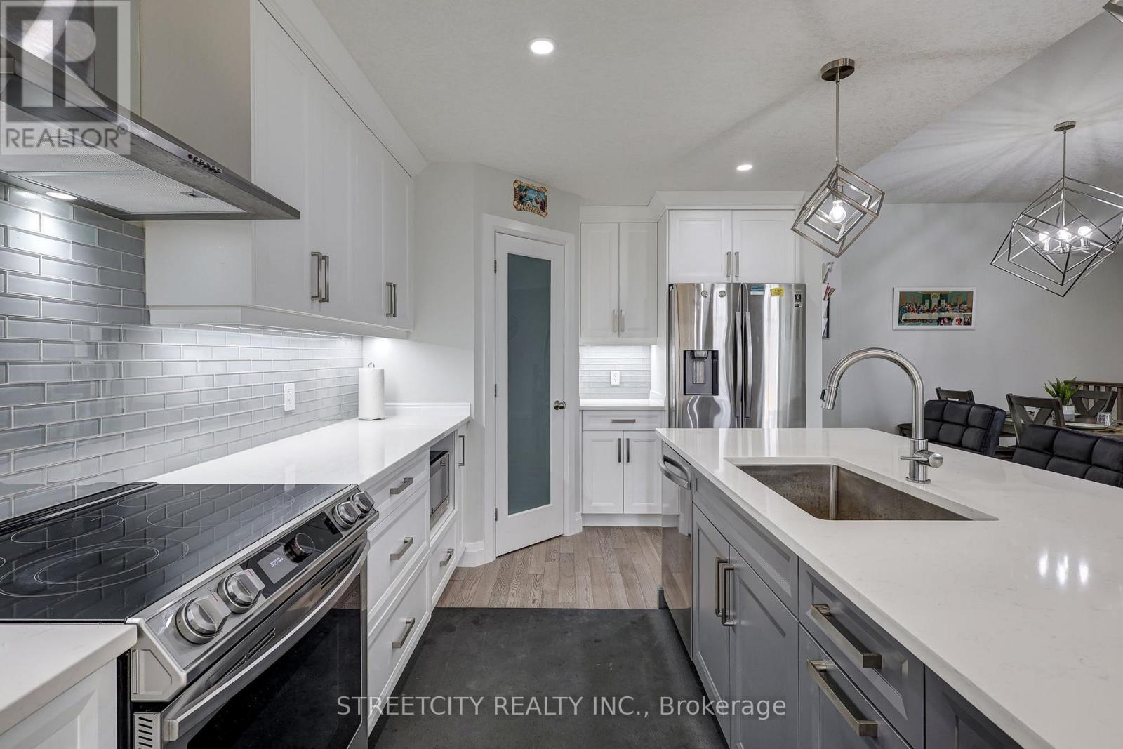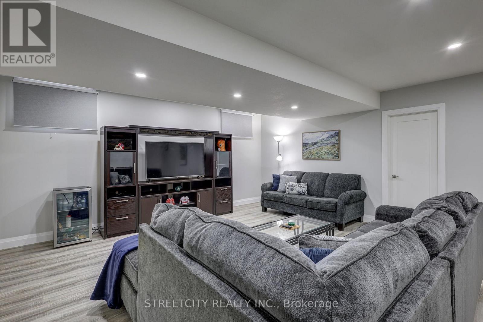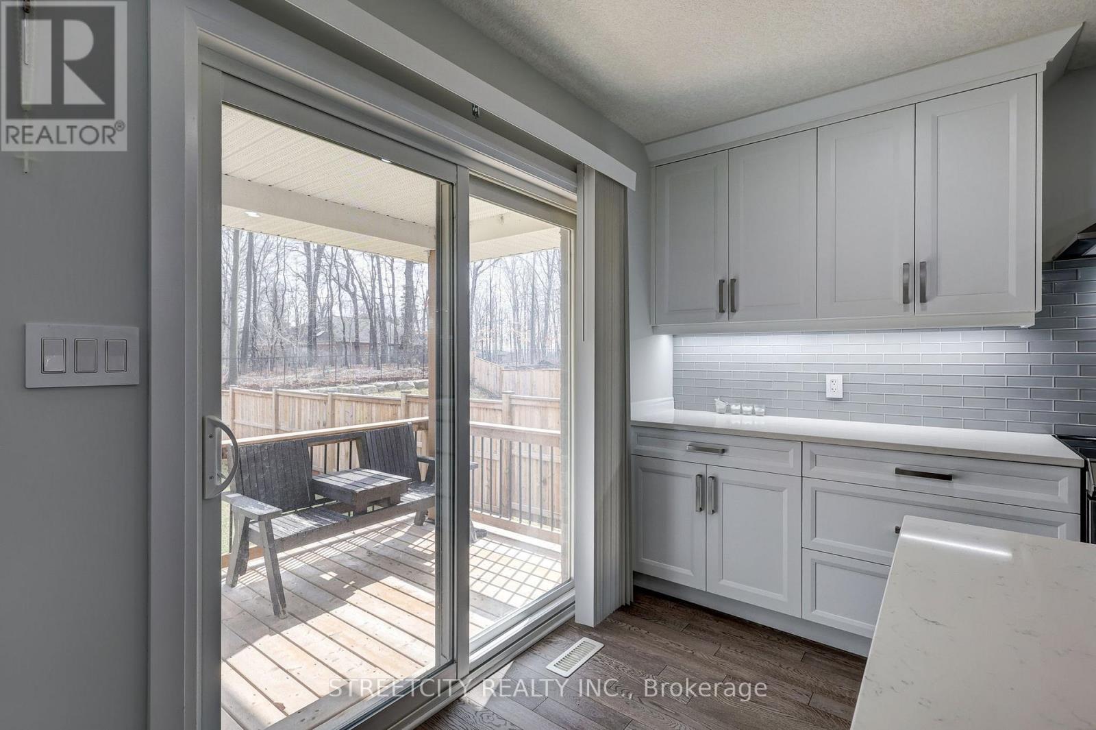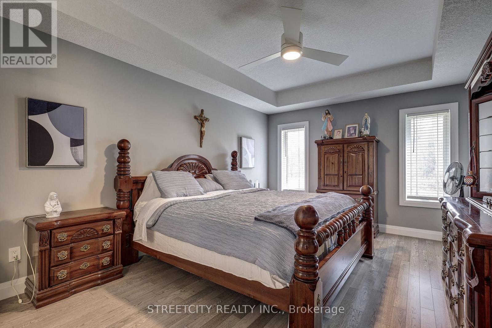 This stunning 2+2 bedroom, 3-bathroom Don West built home sits on a beautifully treed lot just minutes from Highway 401, London, and the beaches of Port Stanley. The main floor offers a bright, open-concept layout highlighted by a gorgeous great room with engineered hardwood flooring, a cozy gas fireplace, and scenic views of the private yard. The kitchen is a chef's dream, featuring stone countertops, a pantry, and a stylish backsplash, all flowing seamlessly into the spacious dining area-perfect for entertaining or enjoying family meals. Patio doors lead to a covered rear patio and a fully fenced backyard with plenty of room for kids, pets, or even a future pool. The primary suite is a true retreat, complete with a luxurious 5-piece ensuite showcasing double sinks, a soaker tub, and a walk-in shower, along with a generous walk-in closet and convenient access to the main floor laundry. A second bedroom and an additional 4-piece bathroom complete the main level. The fully finished lower level is ideal for a growing family, offering two more bedrooms, a 3-piece bathroom, and ample space for teenagers or family movie nights. A stunning concrete driveway and double car garage provide plenty of parking. Located within the Southwold school district and within walking distance to two parks, this home offers the perfect blend of comfort, style, and family-friendly living. Don't wait on this stunning home! (id:64974)
