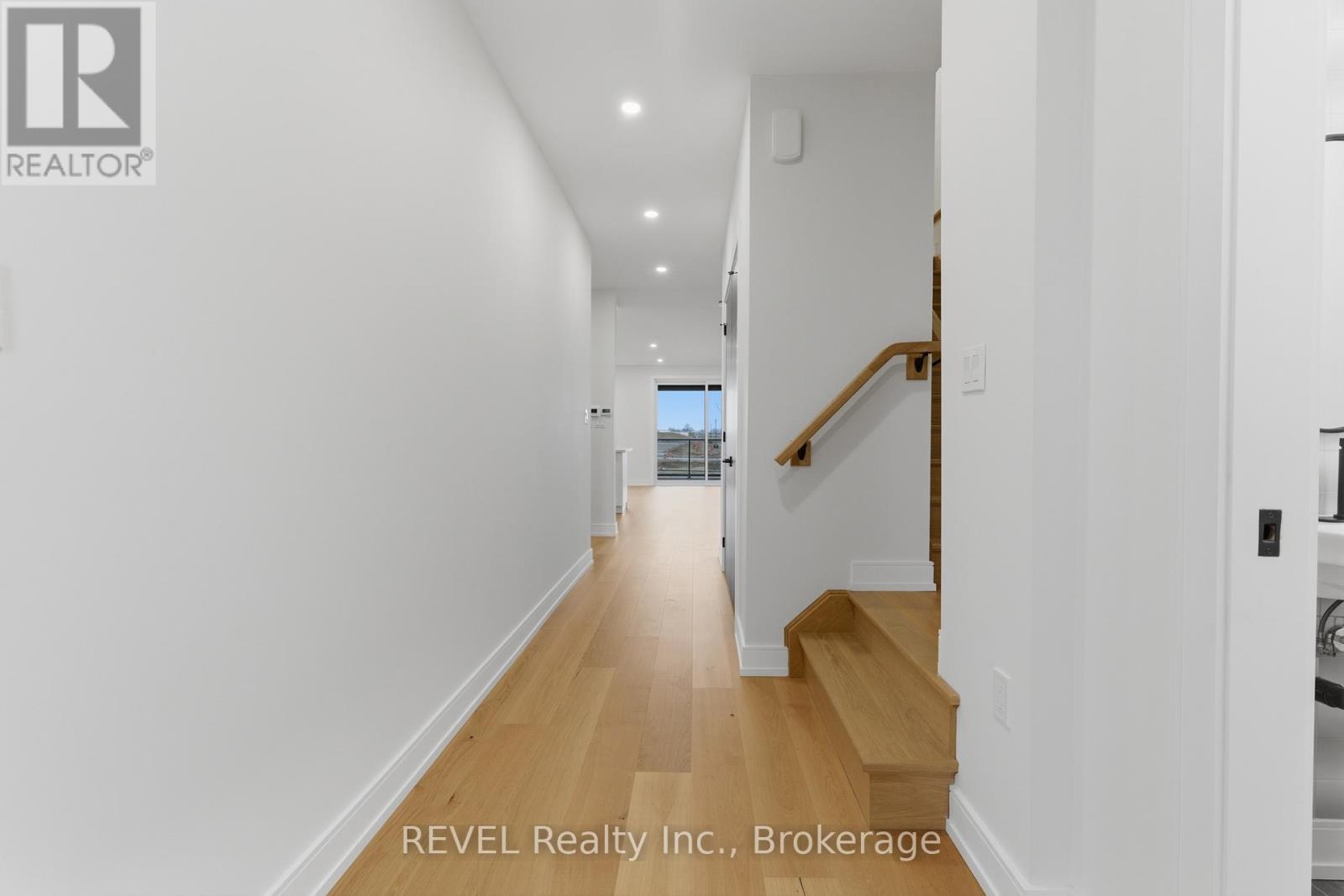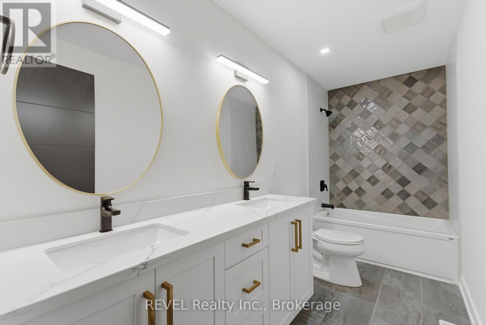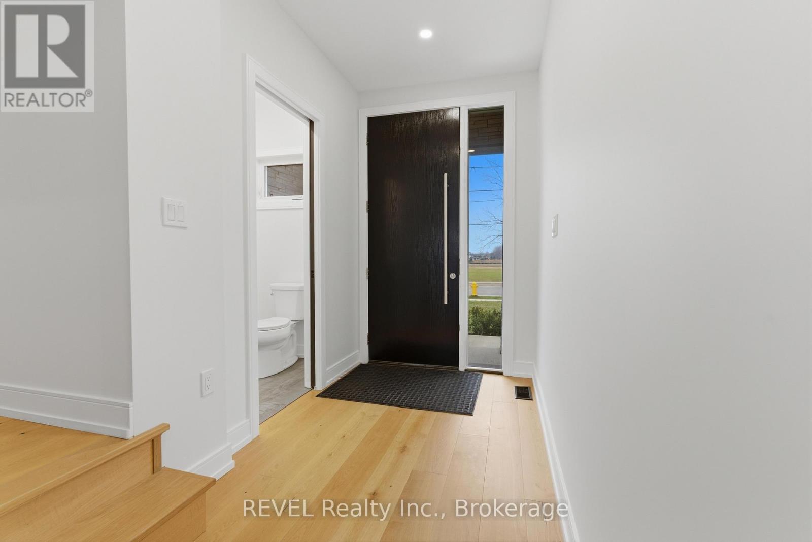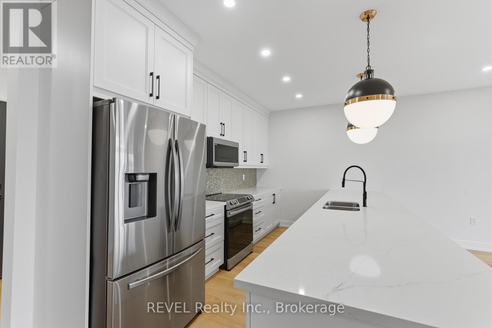 Beautifully finished freehold townhouse offering 3 bedrooms and 2.5 bathrooms in one of Fonthill's most sought-after communities. Designed for modern living with a functional layout, quality finishes, and convenient access to local amenities.The main floor features 9 ft ceilings and an open-concept layout with large windows providing excellent natural light. The kitchen is well-appointed with quartz countertops, a large island, floor-to-ceiling soft-close cabinetry, stainless steel double sink, and Riobel dual-spray faucet. The living and dining area includes LED pot lighting and direct access to a covered deck through sliding doors, creating an easy indoor-outdoor flow.A mudroom with garage access and a 2-piece powder room complete the main level.The second floor offers a spacious primary bedroom with walk-in closet and a 5-piece ensuite featuring a double vanity, freestanding soaker tub, and tiled shower. Two additional bedrooms share a 4-piece bathroom with double vanity and Mirolin tub/shower combination. Convenient second-floor laundry includes a sink and additional storage.The unfinished walkout basement provides excellent potential for additional living space, with natural light and access to a covered patio. Located close to parks, walking trails, schools, shopping, dining and 406, this home offers a strong combination of layout, finish, and location. (id:64974)
