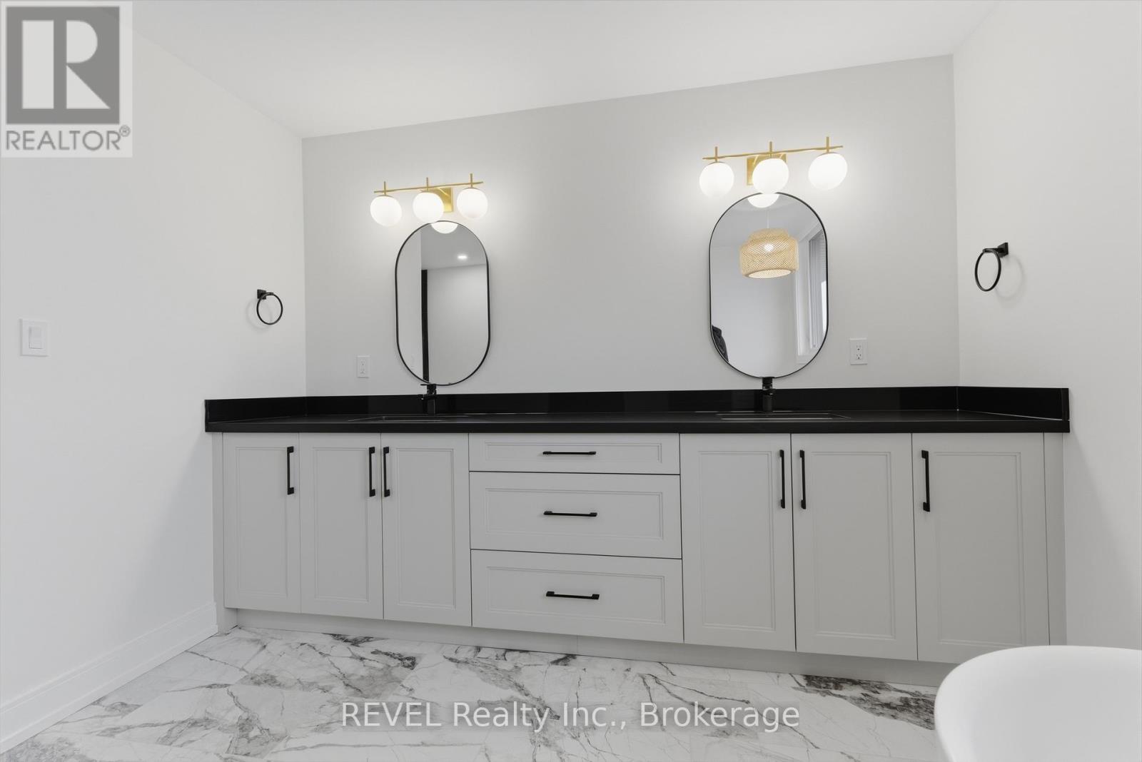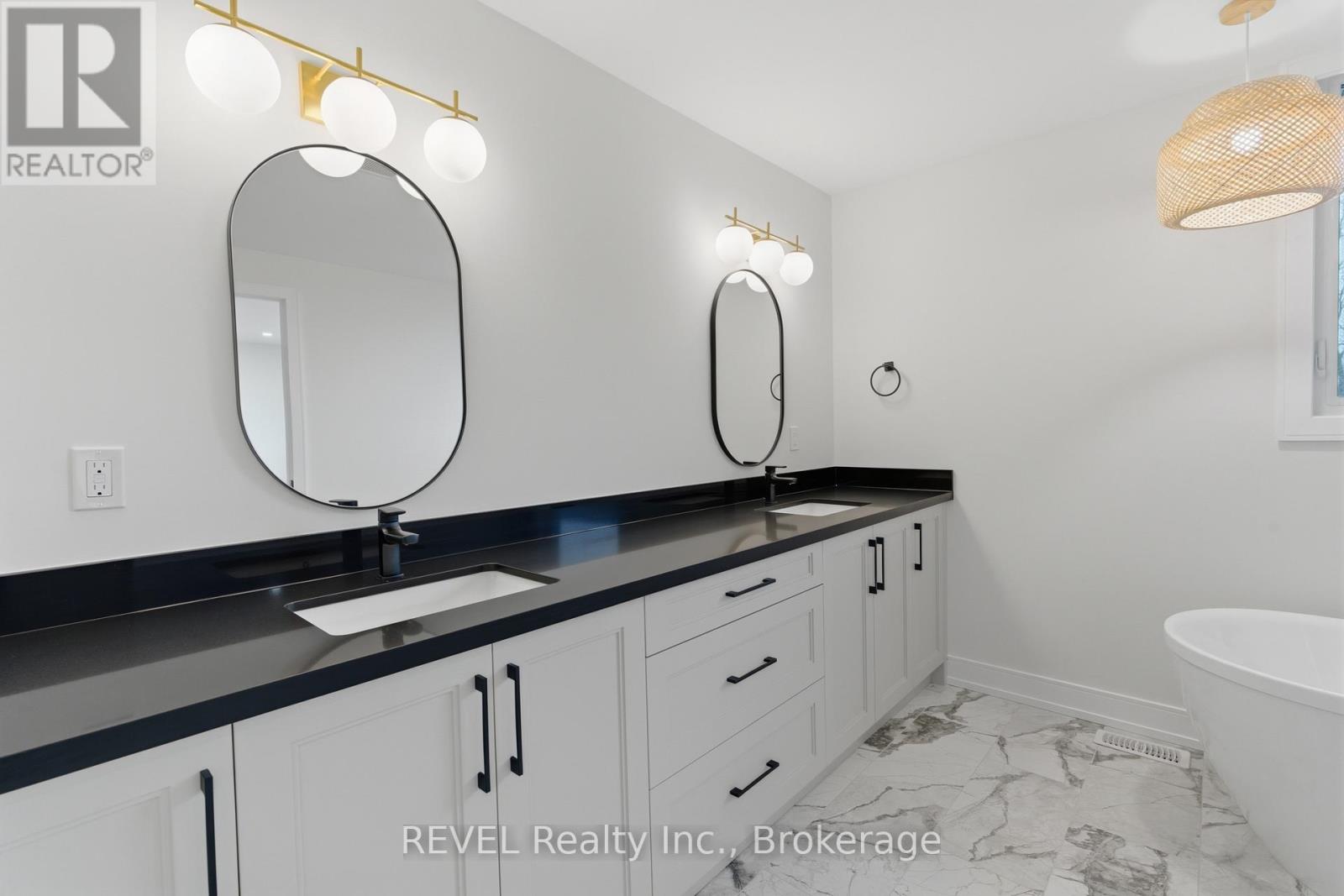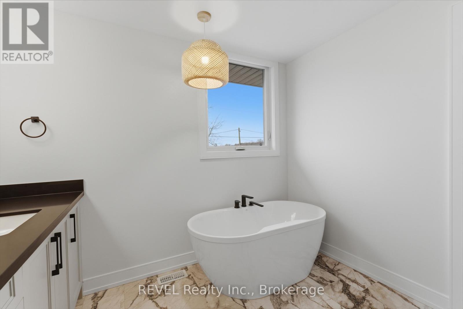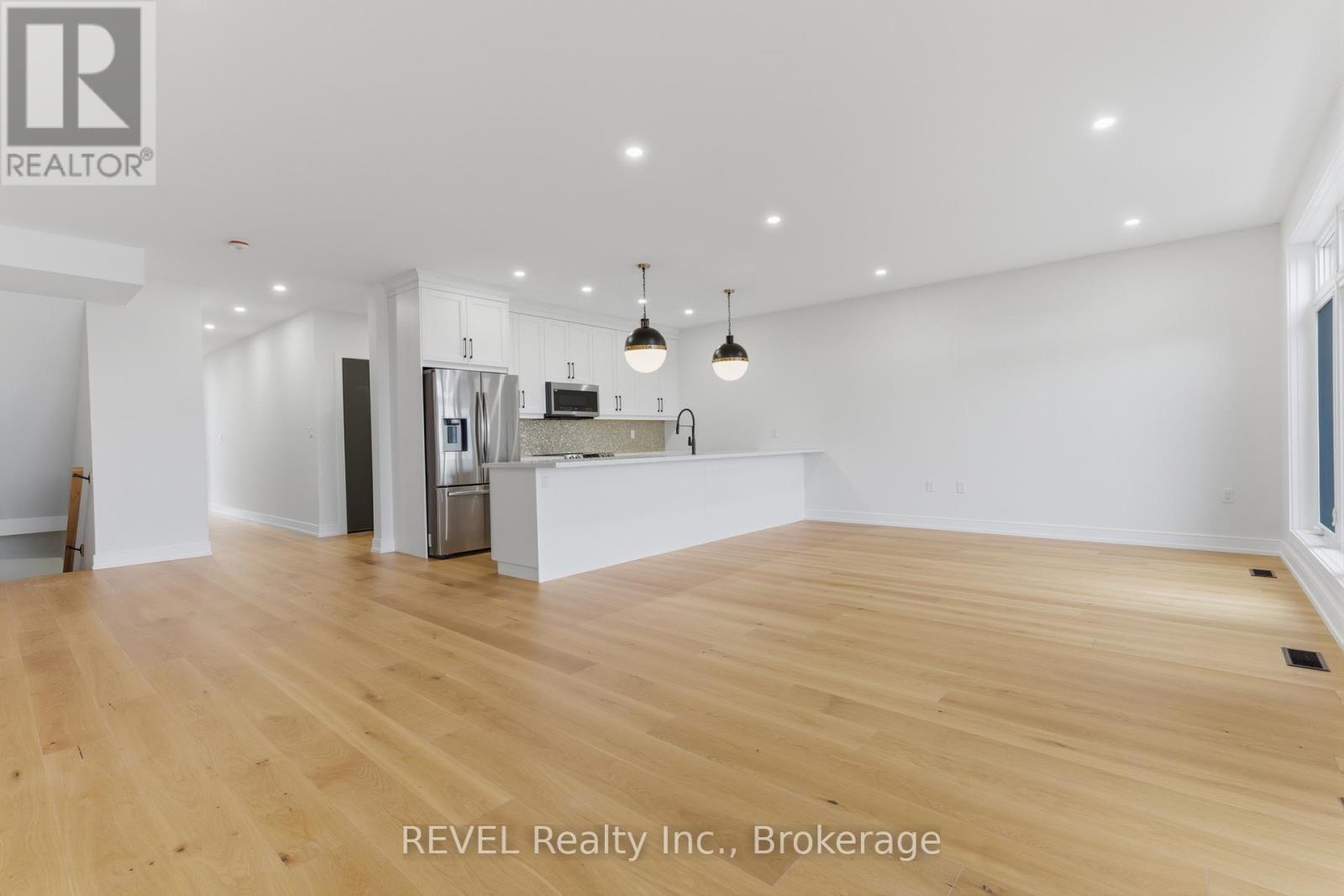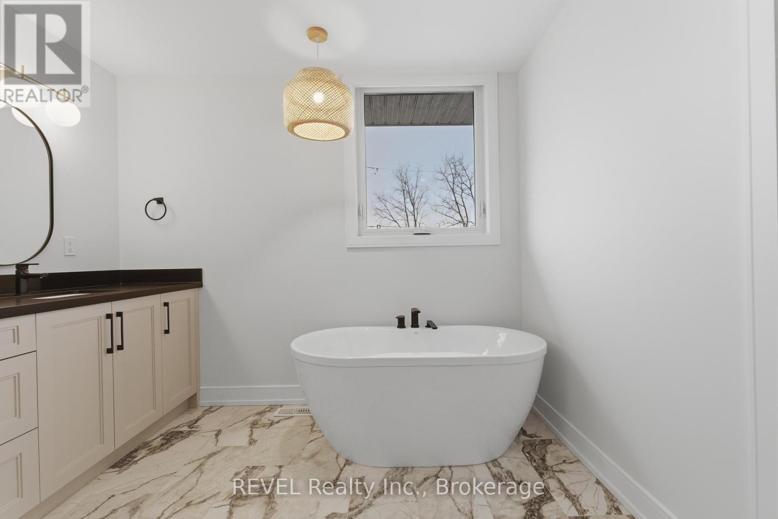 Beautifully finished freehold townhouse offering 3 bedrooms and 2.5 bathrooms in one of Fonthill's most sought-after communities. Designed for modern living with a functional layout, quality finishes, and convenient access to local amenities.The main floor features 9 ft ceilings and an open-concept layout with large windows providing excellent natural light. The kitchen is well-appointed with quartz countertops, a large island, floor-to-ceiling soft-close cabinetry, stainless steel double sink, and Riobel dual-spray faucet. The living and dining area includes LED pot lighting and direct access to a covered deck through sliding doors, creating an easy indoor-outdoor flow.A mudroom with garage access and a 2-piece powder room complete the main level.The second floor offers a spacious primary bedroom with walk-in closet and a 5-piece ensuite featuring a double vanity, freestanding soaker tub, and tiled shower. Two additional bedrooms share a 4-piece bathroom with double vanity and Mirolin tub/shower combination. Convenient second-floor laundry includes a sink and additional storage.The unfinished walkout basement provides excellent potential for additional living space, with natural light and access to a covered patio. Located close to parks, walking trails, schools, shopping, dining and 406, this home offers a strong combination of layout, finish, and location. (id:64974)