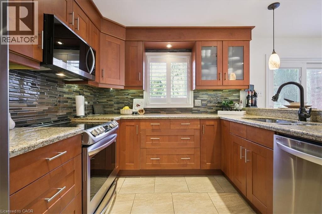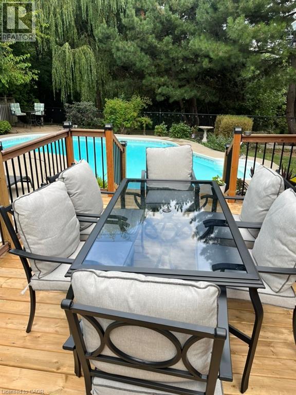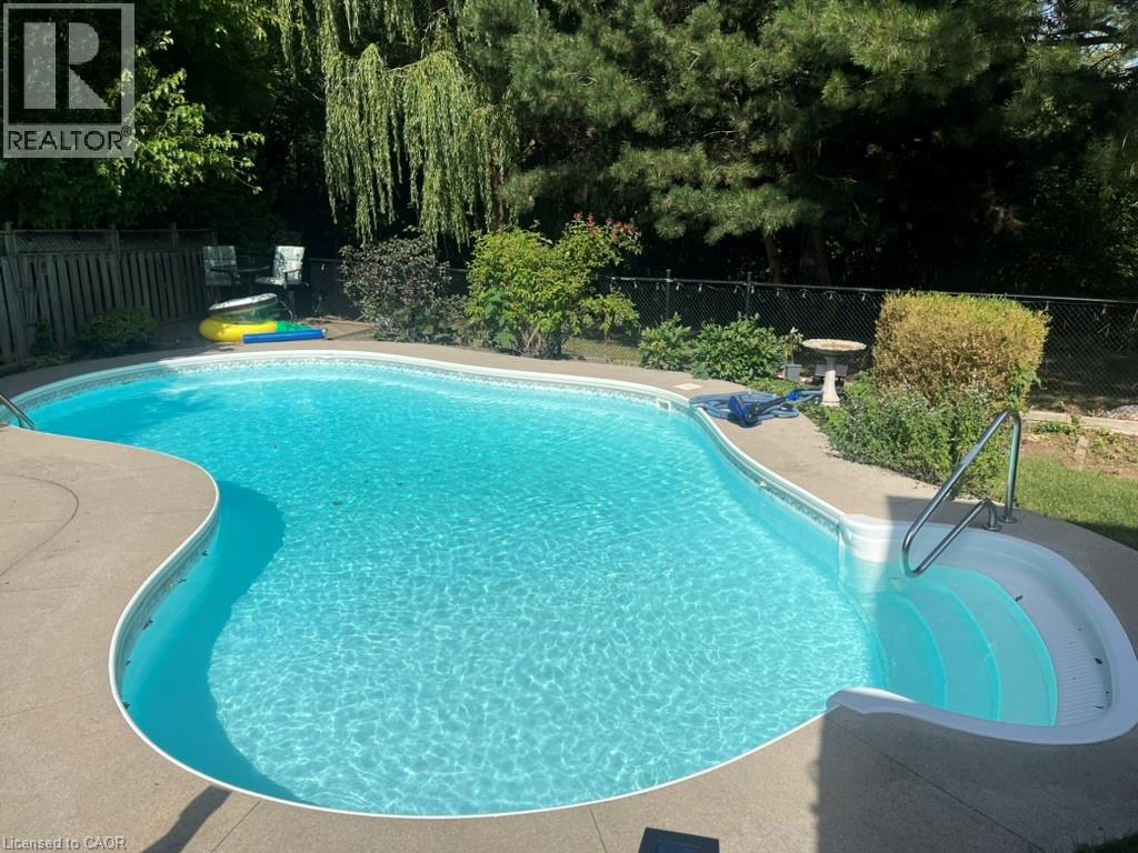 Tucked against a peaceful ravine in one of Waterdown’s most family-friendly neighbourhoods, this beautifully maintained two-storey home offers space, privacy, and the perfect setting to make lasting memories. Just a short stroll to Belmont Park and Guy Brown Elementary School, the location blends everyday convenience with a true sense of community. The generous pie-shaped lot provides plenty of room for kids and pets to explore, play, and grow. The backyard is a true retreat—your own private escape designed for summer living. Spend warm afternoons lounging beside the 20' x 35' lagoon-style heated inground pool, complete with built-in steps and a newer heater (approximately six years old). Whether hosting lively pool parties or enjoying a quiet evening swim, this outdoor oasis delivers relaxation and fun in equal measure. Inside, the thoughtfully designed main floor offers exceptional versatility to suit your lifestyle. Create an elegant dining space perfect for hosting large gatherings or opt for a cozy dinette just off the kitchen with sliding doors that open onto the deck—ideal for effortless indoor-outdoor entertaining. The inviting living room, anchored by a charming gas fireplace, provides a warm and welcoming space to unwind. A main floor office or den near the foyer offers a quiet work-from-home option, while the convenience of main floor laundry simplifies daily routines. Upstairs, spacious bedrooms and well-appointed bathrooms ensure comfort for the whole family, giving everyone a place to recharge at the end of the day. The fully finished lower level expands your living space even further, featuring a large recreation room perfect for movie nights or games, an additional bedroom and bathroom, plus ample storage. Just minutes from downtown Waterdown’s shops, restaurants, and amenities.This home offers the ideal balance of tranquility and connectivity. A rare opportunity to enjoy ravine-side living with all the comforts of a vibrant, established community. (id:64974)