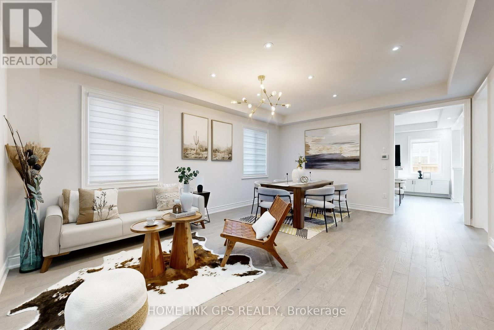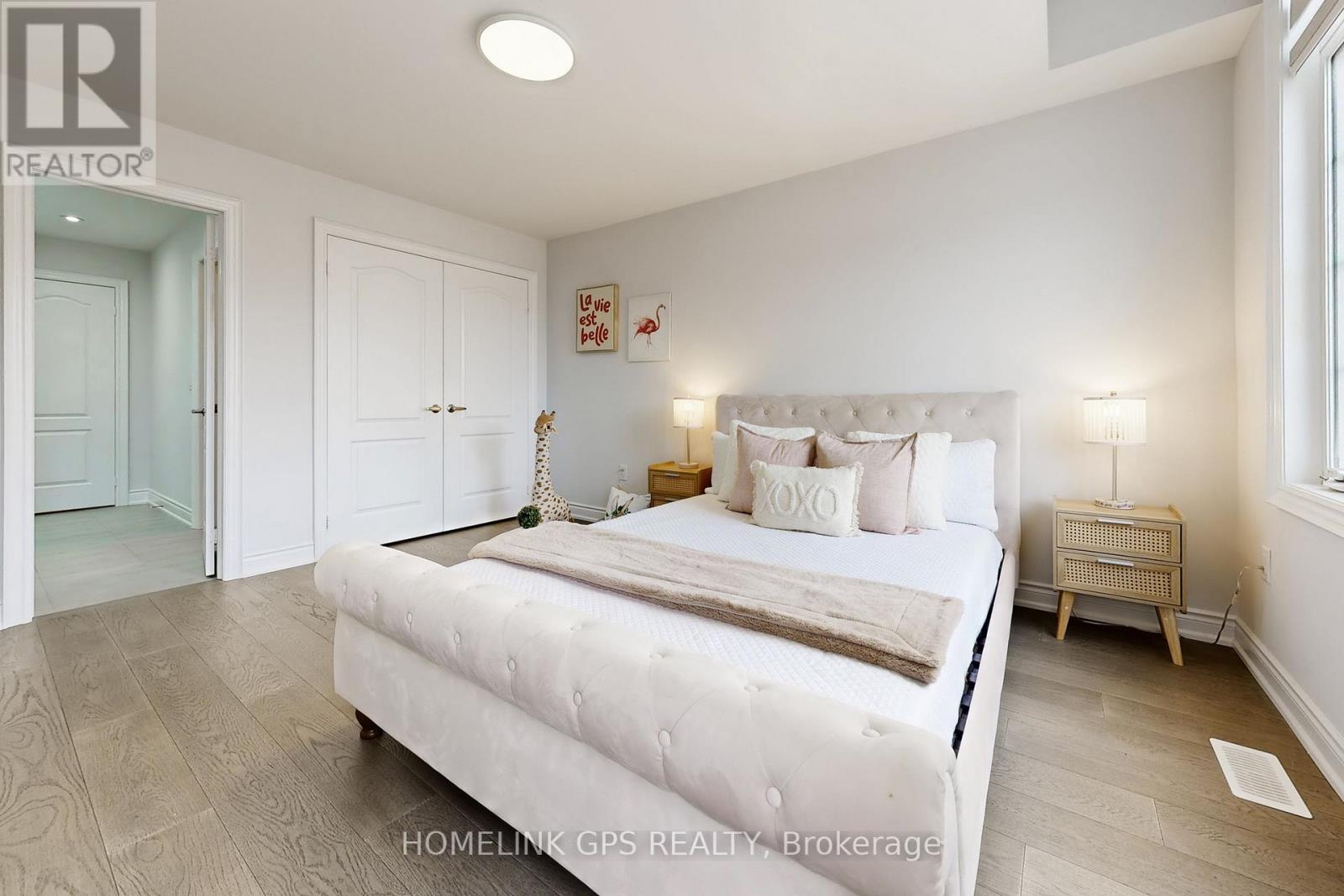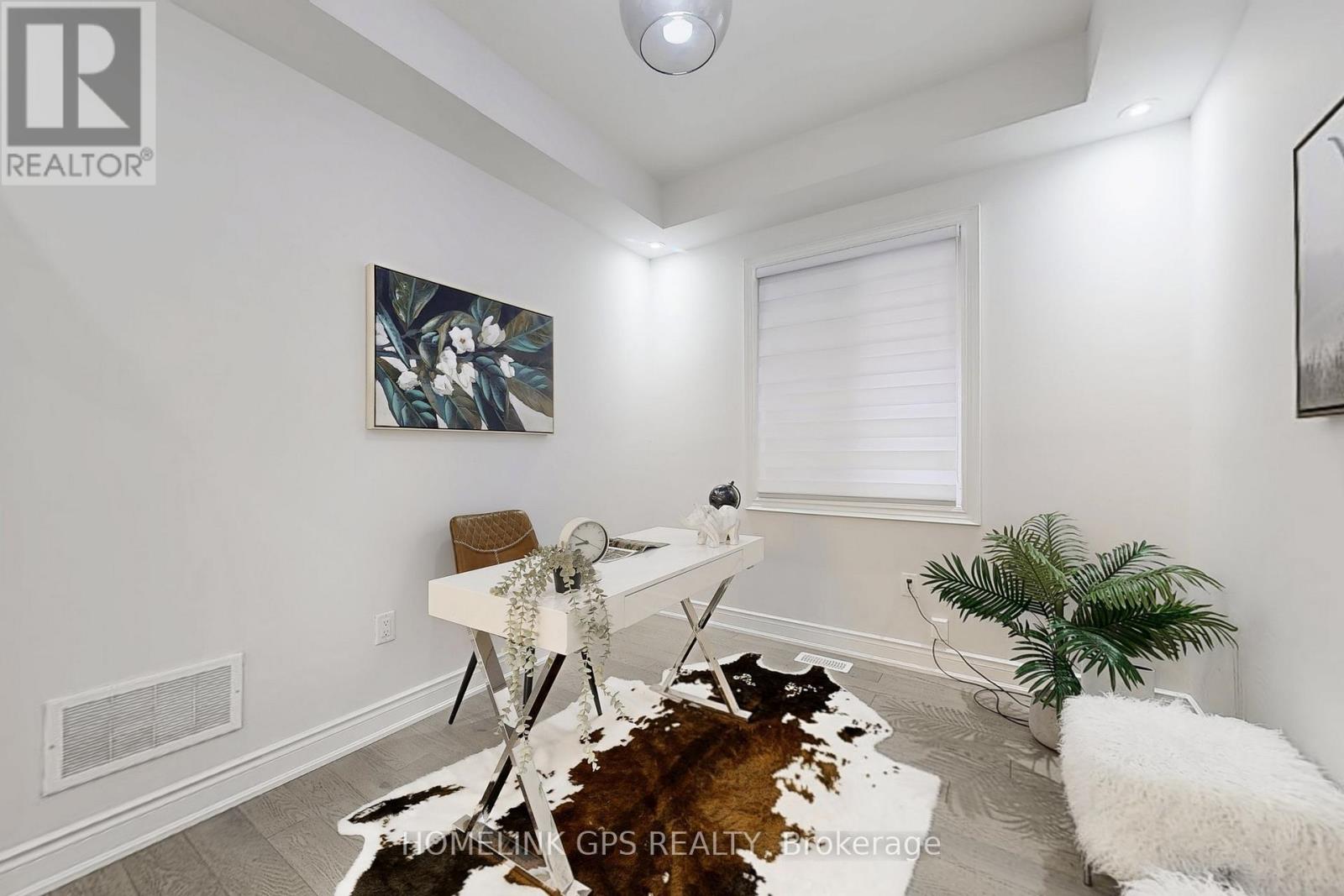 Must See .Stunning Executive 3118 sqft 5-Bedroom Residence in a Mature & Highly Sought-After Community! Built in 2022 and with Tarion New Home Warranty. Bright, functional layout features 9ft ceilings on the main floor and upgraded hardwood flooring throughout the entire house (No Carpet!).A gourmet Chef's kitchen boasts granite countertops, Gas stove, SS appliances .A private office provides the ideal workspace at Main floor . Fully fenced backyard. Perfect for multi-generational living! Second floor offers 3 spacious bedrooms with private ensuites and 2 bedrooms sharing a functional bath room. The rare no-sidewalk lot offers a long driveway parking up to 6 cars. Unfinished basement awaits your personal vision. Prime location: walking distance to high ranking schools, short distance to Hwy 404/407, 8 mins to Markham, and close to premium shopping mall. Experience the perfect blend of luxury, privacy, and accessibility in this established neighborhood! (id:64974)