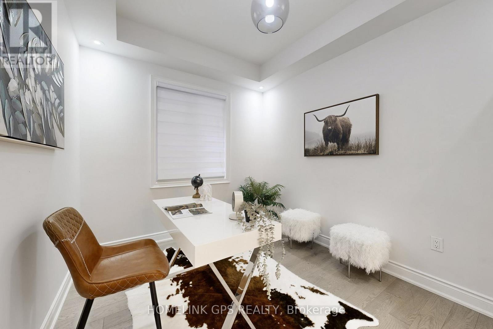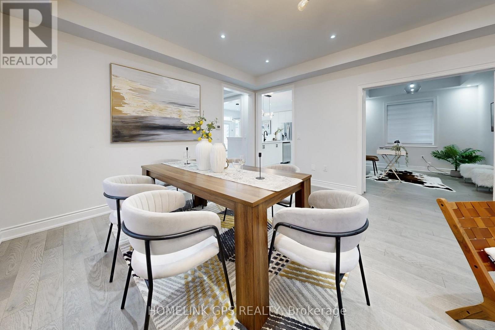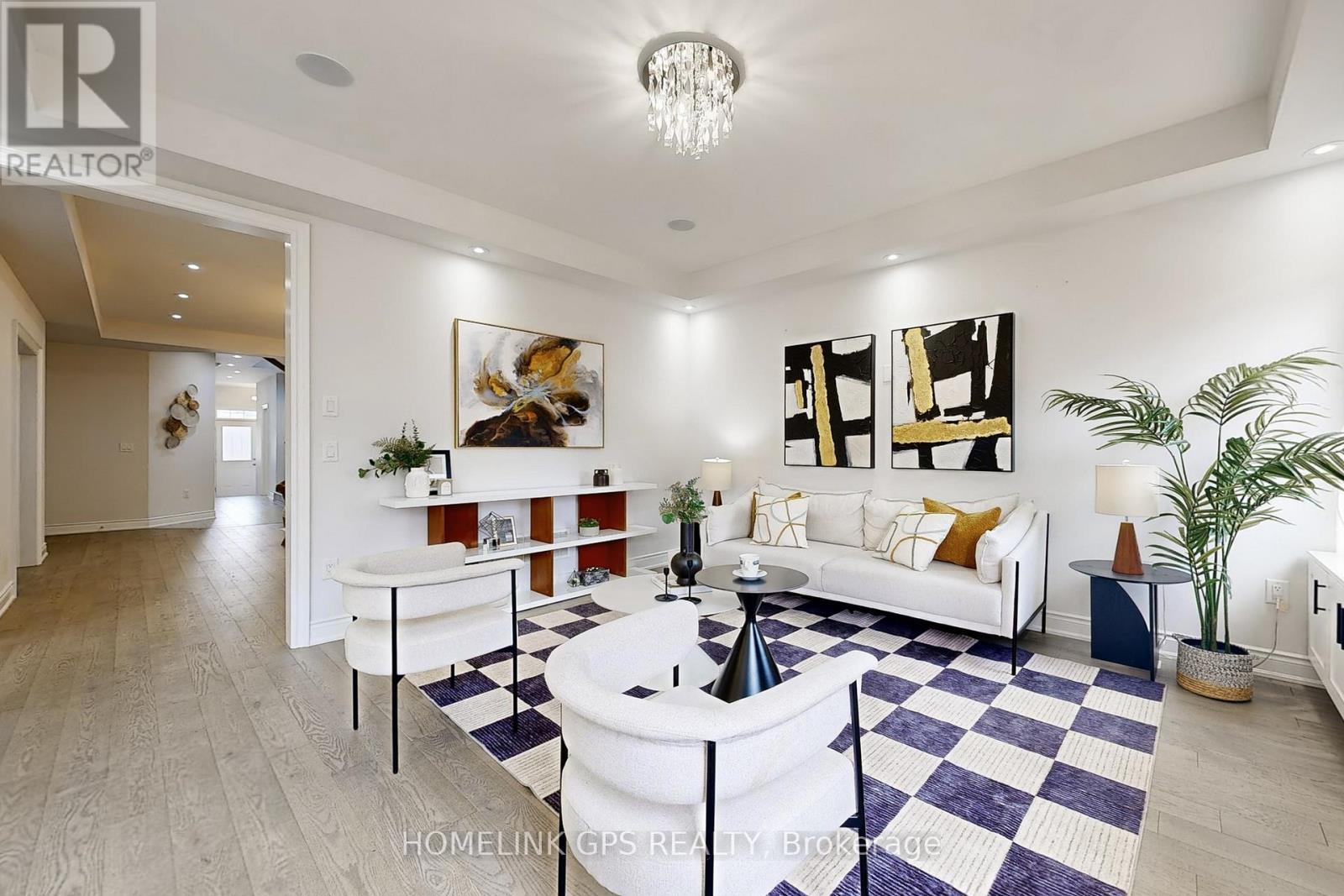 Must See .Stunning Executive 3118 sqft 5-Bedroom Residence in a Mature & Highly Sought-After Community! Built in 2022 and with Tarion New Home Warranty. Bright, functional layout features 9ft ceilings on the main floor and upgraded hardwood flooring throughout the entire house (No Carpet!).A gourmet Chef's kitchen boasts granite countertops, Gas stove, SS appliances .A private office provides the ideal workspace at Main floor . Fully fenced backyard. Perfect for multi-generational living! Second floor offers 3 spacious bedrooms with private ensuites and 2 bedrooms sharing a functional bath room. The rare no-sidewalk lot offers a long driveway parking up to 6 cars. Unfinished basement awaits your personal vision. Prime location: walking distance to high ranking schools, short distance to Hwy 404/407, 8 mins to Markham, and close to premium shopping mall. Experience the perfect blend of luxury, privacy, and accessibility in this established neighborhood! (id:64974)