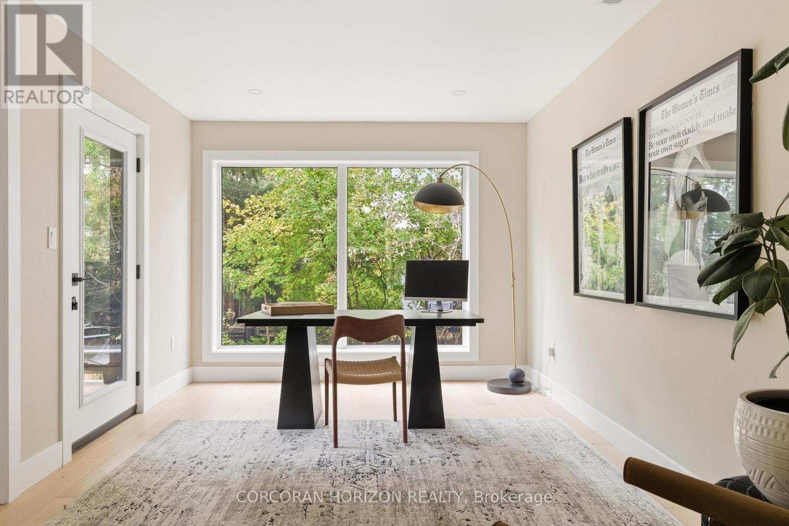 Welcome to 95 Williams Street, Waterloo! Built in 2022, this modern and spacious home offers over 4,500 sq. ft. of thoughtfully designed living space with 5 bedrooms and 5 bathrooms. Perfectly situated in the vibrant heart of Uptown Waterloo, you'll enjoy easy access to top-rated schools, parks, trails, restaurants, shops, and public transit. Step inside to an inviting open-concept main floor with 9' ceilings, pot lights, and large windows that fill the space with natural light. The chef-inspired kitchen features quartz countertops, modern cabinetry, stainless steel appliances, and a generous island-perfect for cooking and entertaining. The bright living room with a gas fireplace flows seamlessly into the dining area, which opens onto a deck ideal for outdoor gatherings or quiet relaxation. The second floor offers three spacious bedrooms, including two connected by a stylish Jack-and-Jill bathroom. This level also features a bright home office with balcony access, a convenient 2-piece powder room, and a dedicated laundry room. The third floor offers a private primary retreat complete with a large walk-in closet, a stunning 5-piece ensuite with double sinks, marble flooring, glass-enclosed shower, and a soaker tub-plus an additional great room for lounging or work-from-home flexibility. The finished basement adds versatility with a fifth bedroom, a 4-piece bathroom, and a generous rec room, perfect for guests, in-laws, or a home gym. Outside, enjoy a fully fenced backyard with open green space and a spacious deck for family barbecues or evenings under the stars. Built with quality and attention to detail, this home includes 16" engineered floor joists, 6" European white oak hardwood flooring, two-zone heating and cooling, a durable steel roof, and an extra-high garage ready for a car lift.Experience the best of modern design, everyday comfort, and Uptown living at 95 Williams Street. (id:64974)