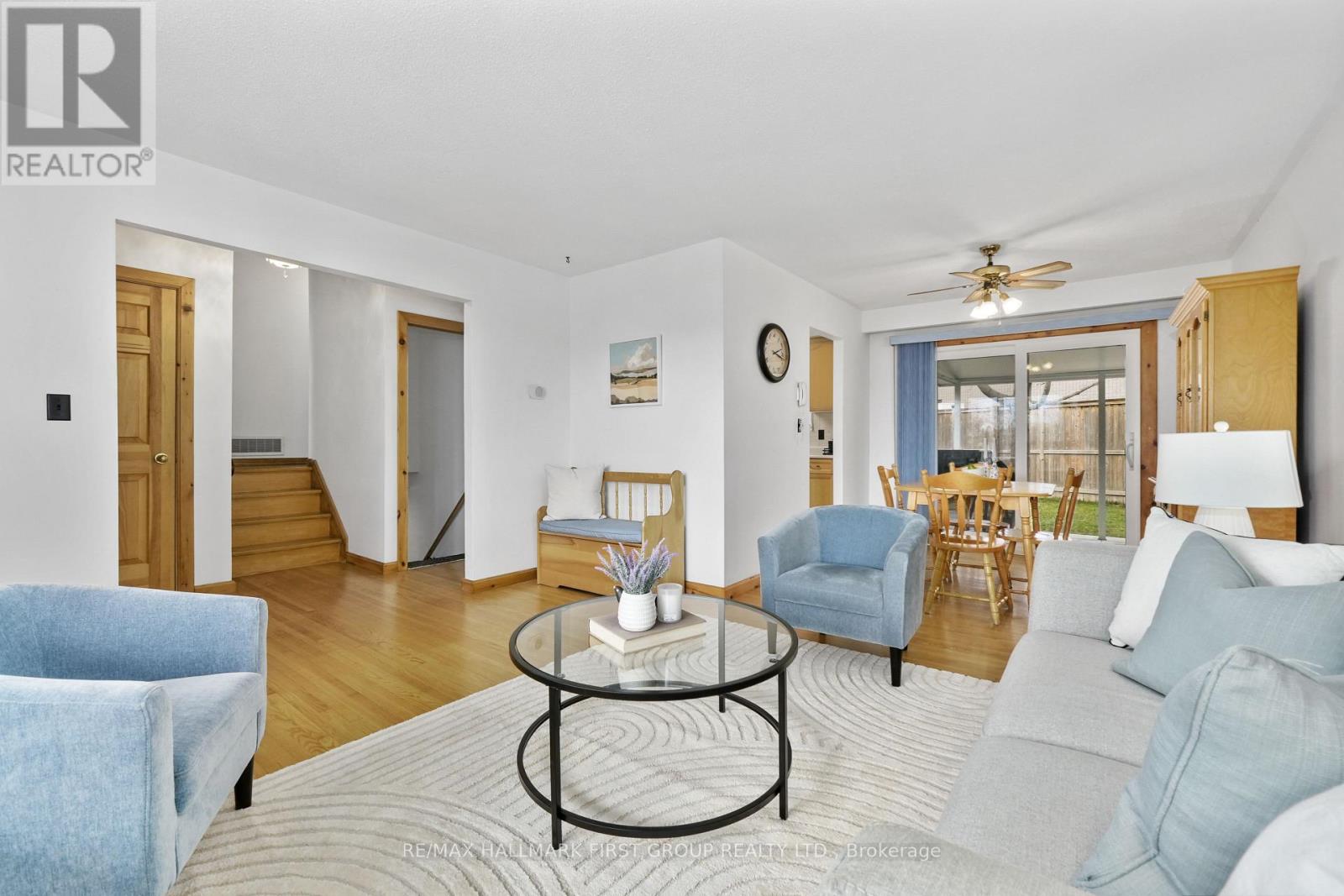 Family home set on a peaceful cul-de-sac, ideally situated in the heart of Cobourg with a separate entrance, lower level and fenced backyard. Open living and dining areas feature a carpet-free layout, creating a clean and low-maintenance living space. The bright living room is highlighted by a large wall of windows that fills the home with natural light, while the dining area offers a walkout to the back patio, extending your living space and making it ideal for summer BBQs. The kitchen is both functional and inviting, complete with a large window over the sink, tile backsplash, matching appliances, and ample cabinet and counter space. The upper level offers three well-appointed bedrooms and a full bathroom. The lower level includes a cozy family room with a fireplace and built-ins, as well as a laundry room with ample storage and a separate entrance for added flexibility. The basement adds even more living space, including a rec room, a full bathroom, and a workshop. Outside, enjoy a fenced yard with a covered patio and plenty of green space for relaxing or entertaining. Conveniently located just moments to amenities, the hospital, and with easy access to Highway 401. (id:64974)