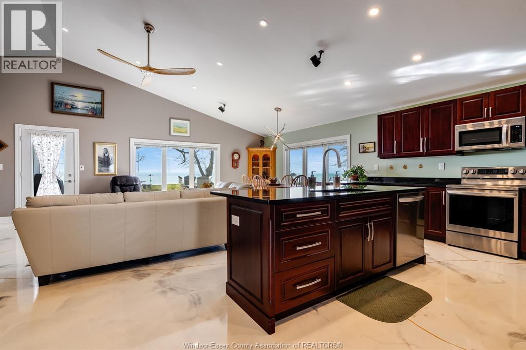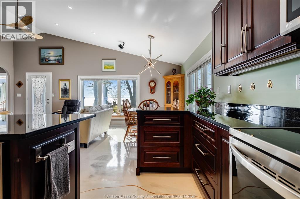 Welcome to your private waterfront retreat in Wheatley - where price, location & quality come together. Priced right for this 2023-built home sitting on a 50x504 ft lot w/200 ft into the water. Located 1 block from Wheatley Provincial Park, 5 min to Campers Cove & Talbot Trail Golf Club. Featuring 2 beds, 2 baths (incl. 4pc ensuite & walk-in closet), this open-concept, main floor home is perfect for entertaining or a relaxing getaway. Enjoy vaulted ceilings, panoramic lake views when you wake or while cooking in the stunning kitchen w/dual seated island & built in sink, cherry wood dovetail cabinetry & granite countertops. Relax on the covered porch, patio & Bose sound system (in/out). Built to last w/brick & vinyl board & batten exterior, metal break wall & armoured stone shoreline. High-end finishes incl. in-floor heating & stunning epoxy concrete floors. 200 AMP, municipal water w/filtration, heated 1.5 car garage. (id:64974)
