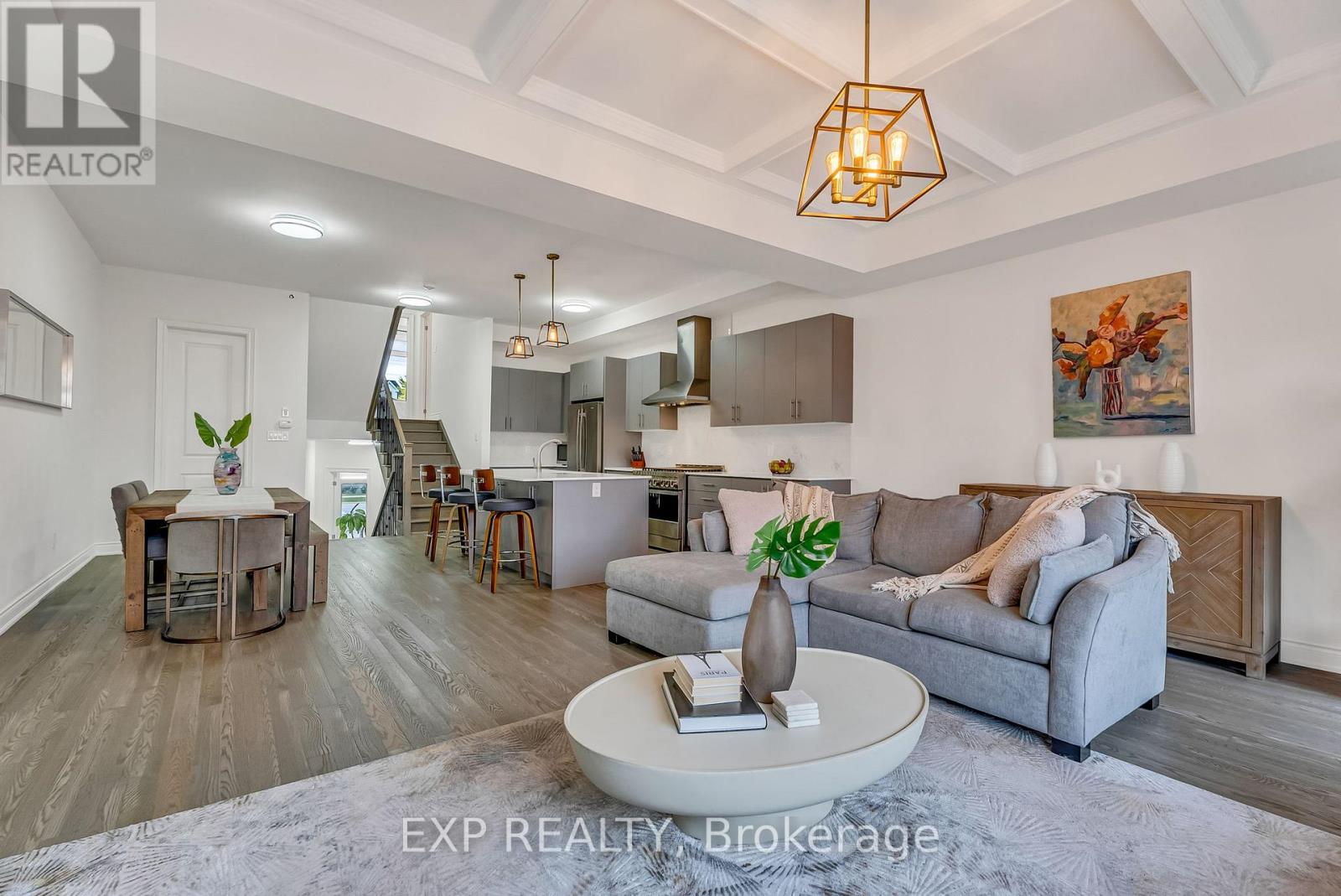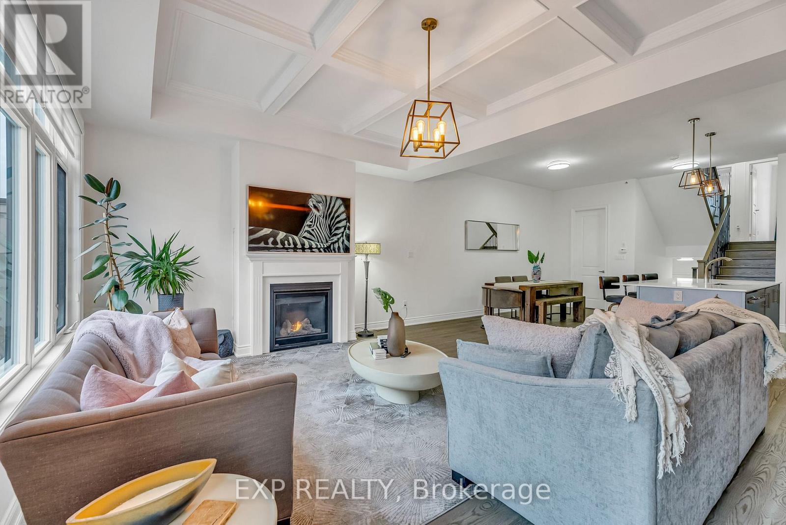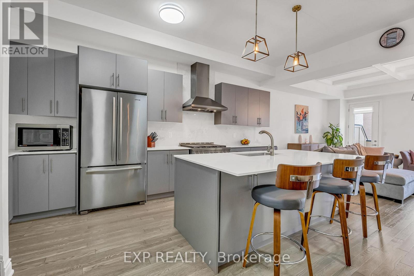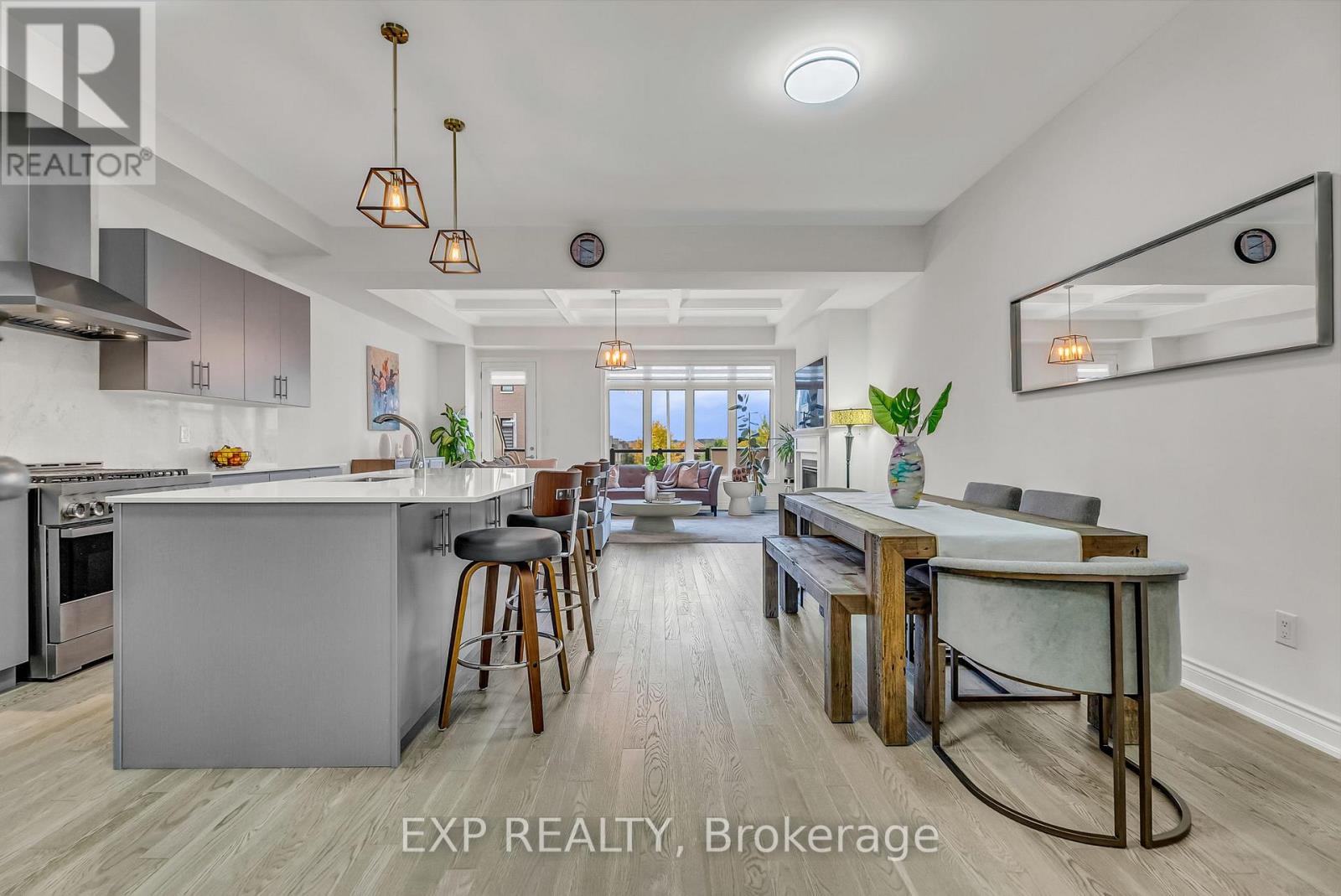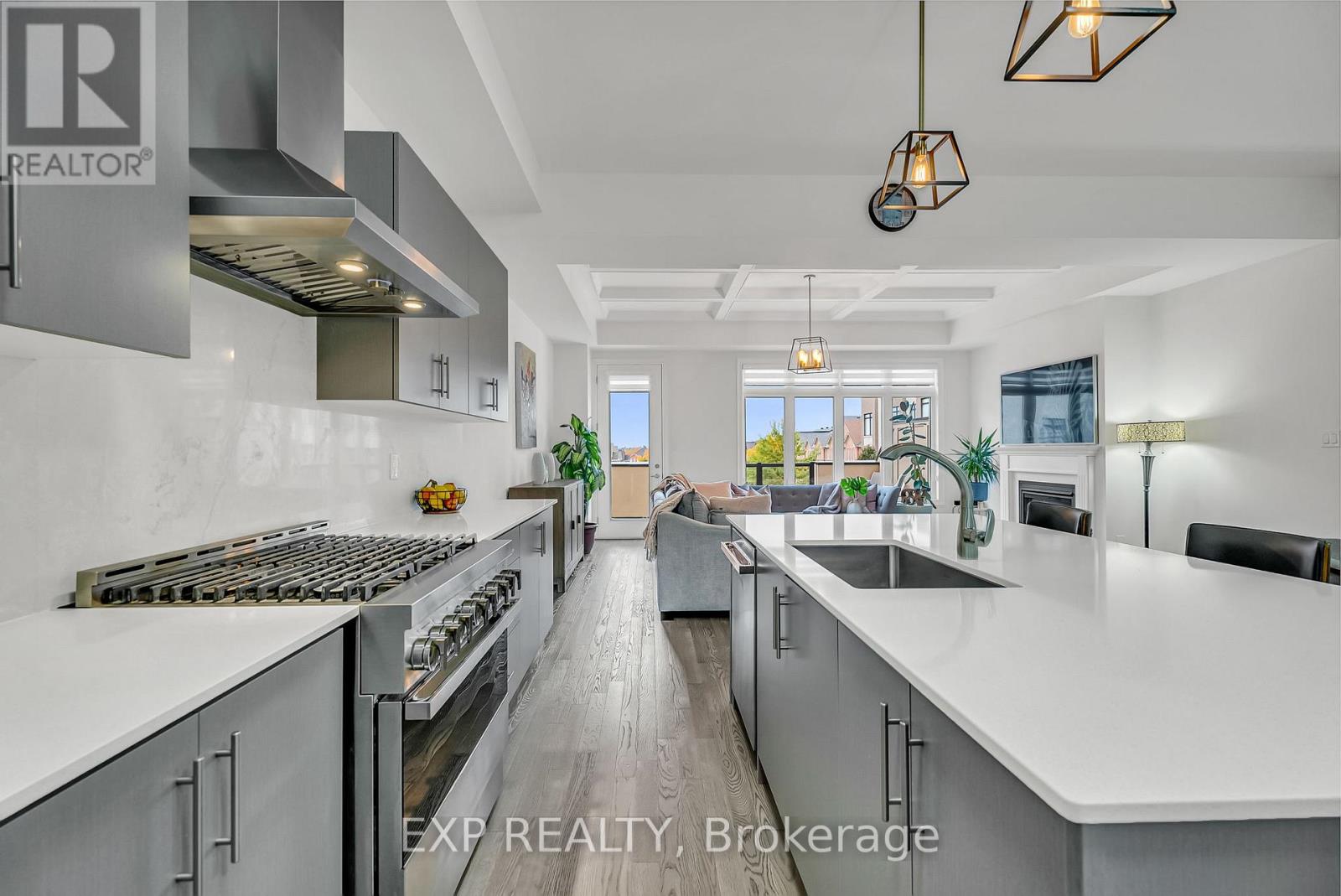 Welcome to 9548 Weston Road, an executive freehold townhome offering just over 3,000 sq ft of refined living space in Vaughan's prestigious Vellore Village. Thoughtfully designed for modern families, this upgraded home blends elegance, functionality, and premium finishes, featuring a 2-car garage, multiple outdoor walkouts, and a finished lower-level suite. The main floor boasts 10-foot smooth ceilings, an elegant waffle ceiling in the Great Room, and engineered hardwood floors throughout the main and upper levels. The chef- inspired kitchen is equipped with top-of-the-line JennAir stainless steel appliances (including a gas stove), granite countertops, an extended breakfast bar, and custom cabinetry that balances form and function. The Great Room features a cozy gas fireplace and opens to a spacious 20 x 11-foot terrace - perfect for outdoor dining and entertaining. Convenient main-floor laundry and direct garage access add everyday ease. Upstairs offers 9-foot ceilings, a primary retreat with His & Hers walk-in closets, a private balcony, and a spa-inspired 5-piece ensuite featuring a freestanding soaker tub, frameless glass shower, and quartz finishes. Two additional bedrooms provide generous space - including one with its own balcony walkout - ideal for family or guests. The fully finished lower level adds versatility with pot lights throughout, a bedroom, full bath, and kitchenette - perfect for a nanny suite, in-law suite, or independent guest quarters. Tech-savvy buyers will appreciate hardwired internet in every room for seamless connectivity. Located steps from St. Jean de Brebeuf Catholic High School, minutes to Vaughan Mills, Canada's Wonderland, Highways 400 & 407, and Cortellucci Vaughan Hospital, this home offers the perfect blend of luxury, lifestyle, and location - delivering the space of a detached home with the ease of townhome living in one of Vaughan's most desirable communities. (id:64974)
