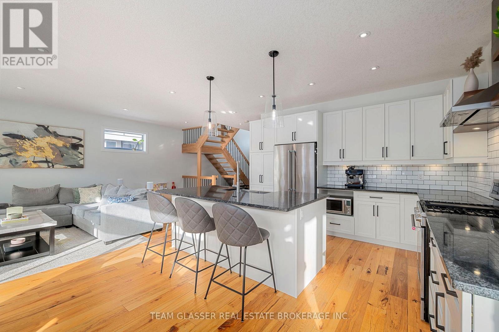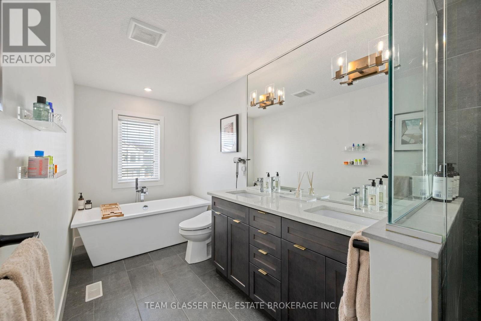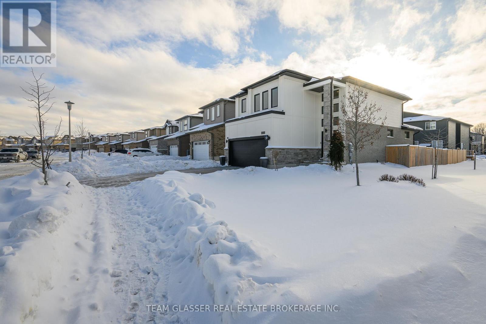 Welcome home to modern luxury in Northwest London! Built in 2018, this stunning home features 3+1 bedrooms and 3.5 baths in a premium, landscaped setting. The airy main floor boasts 9' ceilings, a custom-trimmed fireplace, and a chef's kitchen with granite counters, a massive island, double apron sink, and stainless steel appliances. Walk out to your private, fenced entertainment area!The second floor offers a lavish Master Suite with hardwood floors, walk-in closet, and a 5-piece ensuite with quartz countertops and two additional spacious bedrooms with a 4-pc bath. The bright, finished basement adds a huge rec room, a 4th bedroom with a walk-in closet, and a 3-pc bath with a tiled shower.The attached two-car garage allows for ample storage with the property being steps from Medway Valley trails, UWO, University Hospital, schools, and shopping. This exceptional property combines modern comfort with timeless design-move-in ready and made for today's lifestyle.the smart home features include: Video Doorbell and 7 security cameras, thermostat, garage door lock, Lutron light switches, wifi garage door. Also had installed high security locks(Multi-Lock)/API alarm system (id:64974)