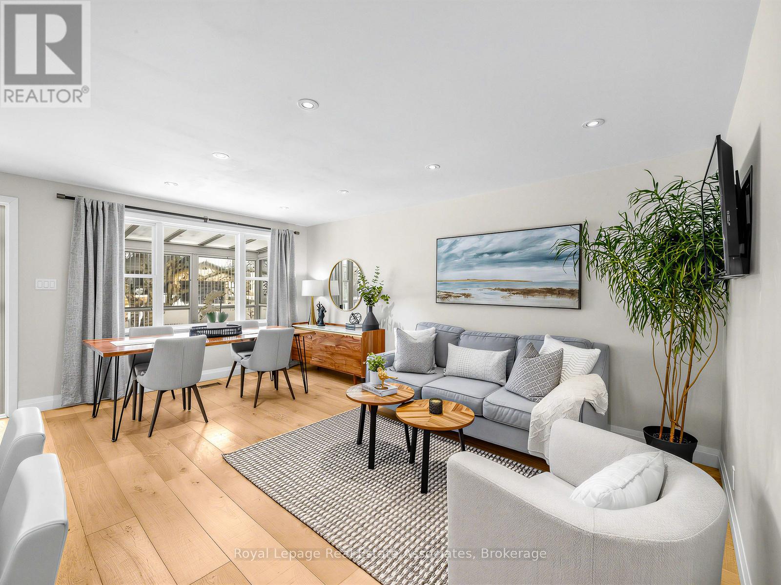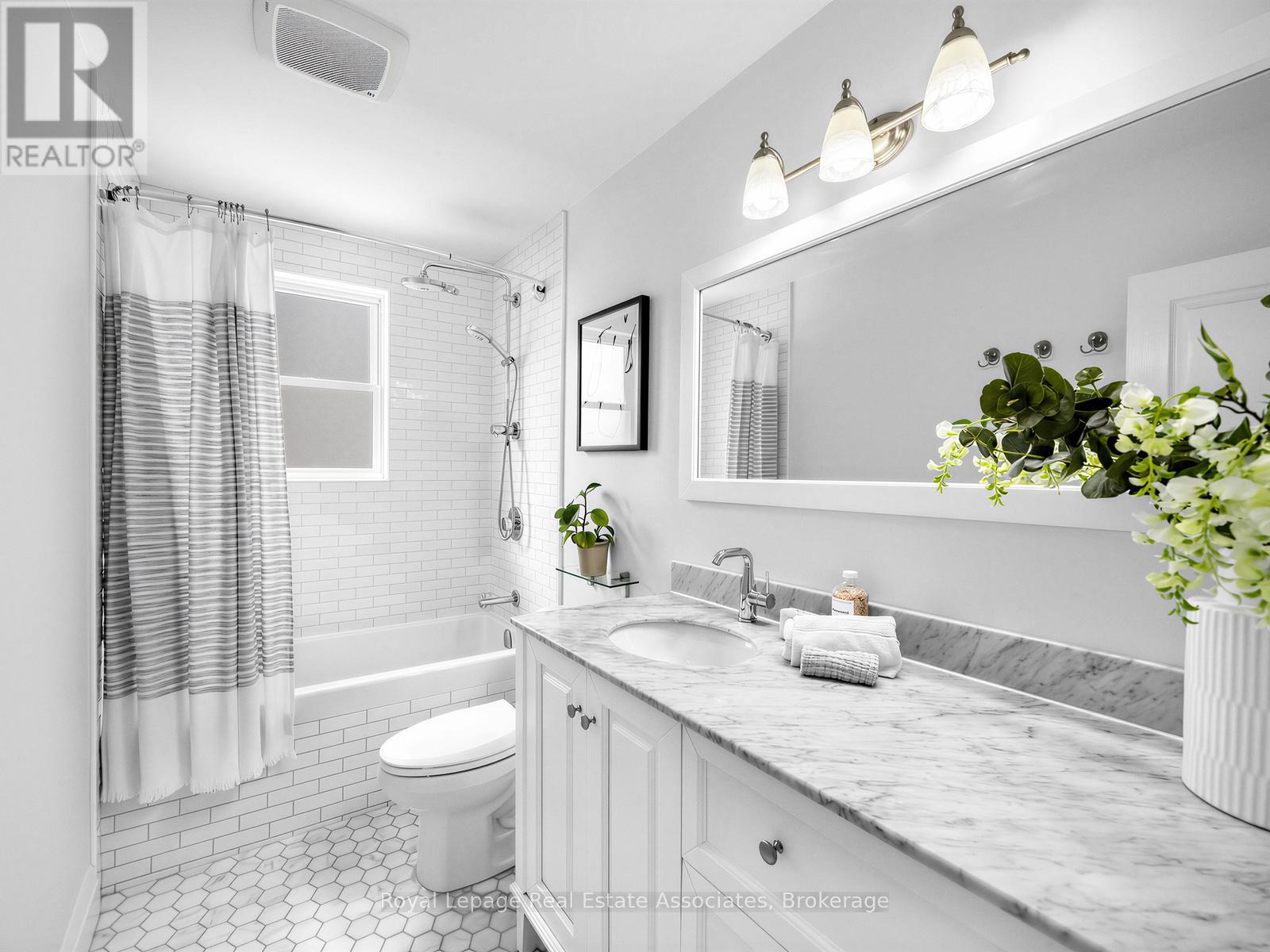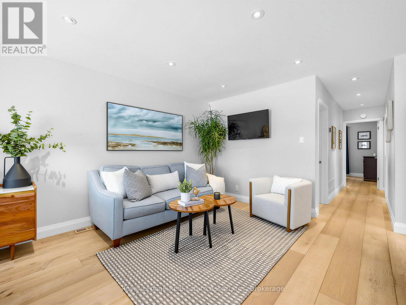 This beautifully maintained 3+1 bedroom bungalow presents a rare turnkey opportunity, ideally set on a premium 50' x 115' lot in one of Mineola East's most sought-after neighbourhoods. Ideal for young families entering the market or downsizers seeking simplified, low-maintenance living, this home offers an exceptional lifestyle. Located in a top-tier school district and just steps from the lake, this home balances quiet residential charm with urban convenience - just a 10 minute walk to Port Credit GO Station, boutique shops, fine dining and parks. The main level features a bright, open-concept layout anchored by a stylish kitchen with granite countertops and a center island, flowing seamlessly into the living and dining areas-perfect for everyday living and effortless entertaining. Wide-plank hardwood floors run throughout, while oversized windows fill the home with natural light. Spa-inspired bathrooms on both the main and lower levels showcase elegant, modern finishes. The fully finished lower level expands the living space with a versatile media/recreation area, custom built-ins, a laundry room with sink, an additional bedroom with above-grade window, and a beautifully appointed 3-piece bath-ideal for guests, extended family, or flexible work-from-home needs. Enjoy your morning coffee on the welcoming covered front porch with new vinyl flooring, or unwind in the private, fully fenced backyard oasis complete with a hot tub, stone patio with gazebo, BBQ hookup, and generous green space for children and pets to play. A detached heated garage (gas unit heater) provides year-round comfort and added convenience. Notable upgrades include: AC 2025, Roof 2021. A rare opportunity to combine comfort, community, and convenience in one exceptional location. Move in and enjoy! (id:64974)
