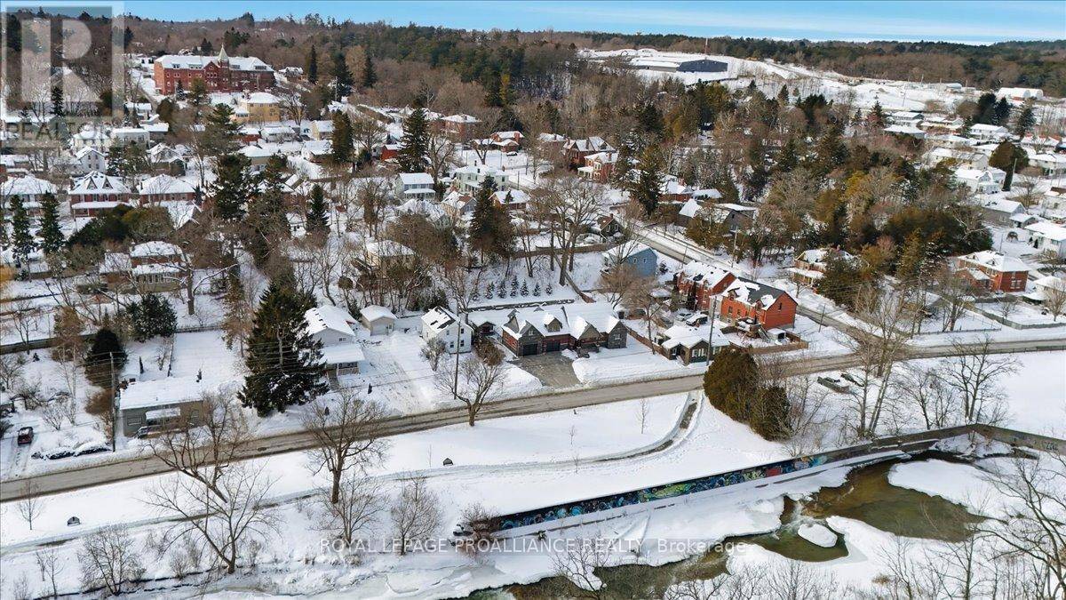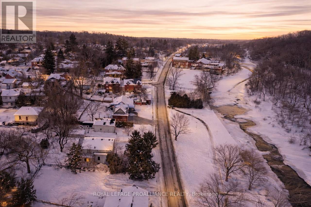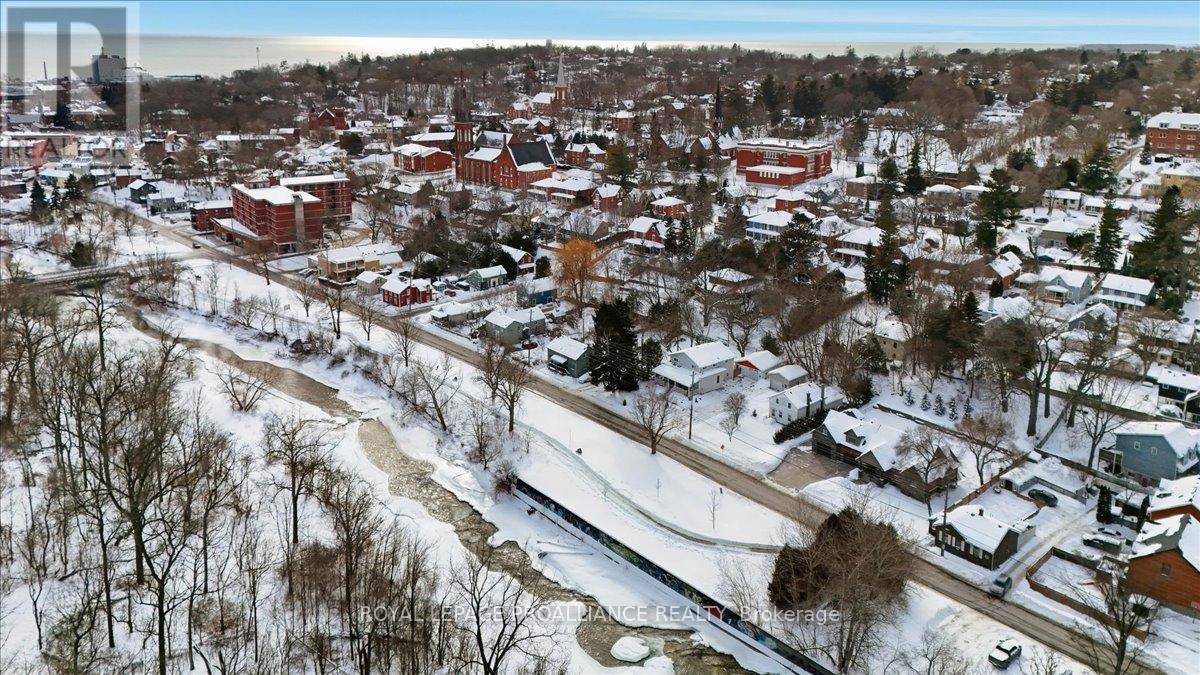 Century home dating to the late 1800s with a later full second-storey addition, set on a quiet stretch of Cavan Street in Port Hope's historic core. From the deep covered front porch, there is a clear view of the Ganaraska River, known for its seasonal salmon run, with parkland, rivers trails and downtown Port Hope within walking distance. The centre-hall layout offers four true bedrooms, a rare feature for homes of this era. The main floor includes an eat-in kitchen with walk-out to the yard, formal dining room, living room, main-floor laundry, and a 3-piece bath. Upstairs, four bedrooms are anchored by a 5-piece bathroom with soaker tub and modern shower. The primary bedroom features a private balcony overlooking the fenced backyard. Set on an oversized in-town lot, the property has been professionally landscaped, with gardens and lawn that become a summer showstopper. A private double driveway and detached garage add practicality rarely found this close to the core. This is the kind of home people move to Port Hope for. Not a designated heritage property, offering historic character with out renovations restrictions and a strong connection to the Ganaraska River. *Property Tour Video Under Virtual Tour. (id:64974)