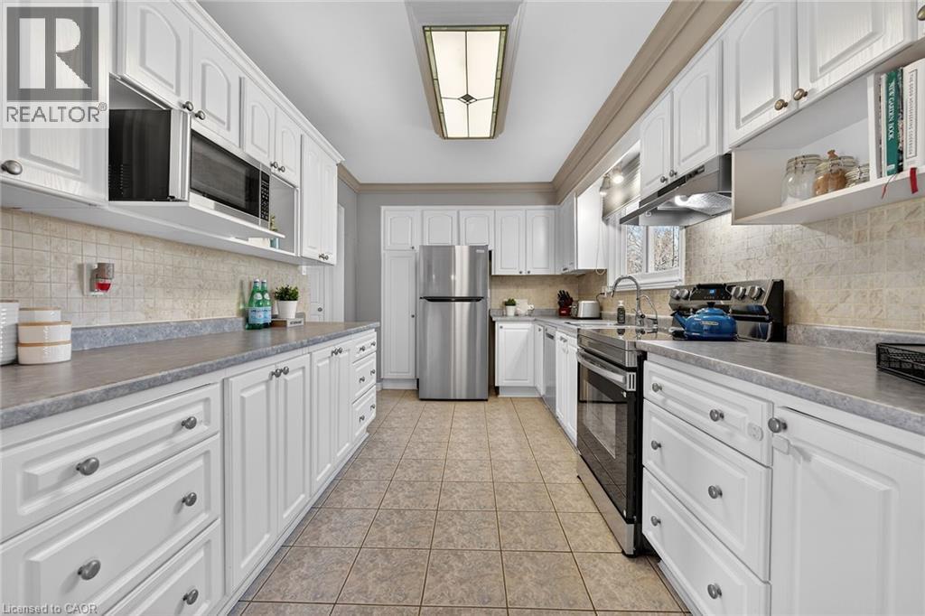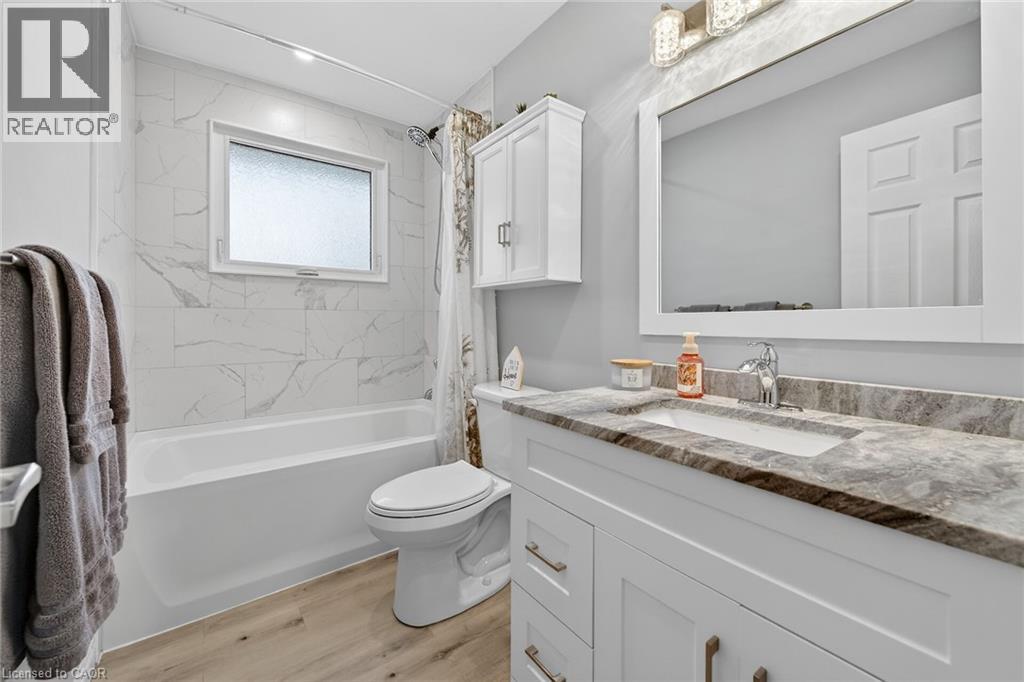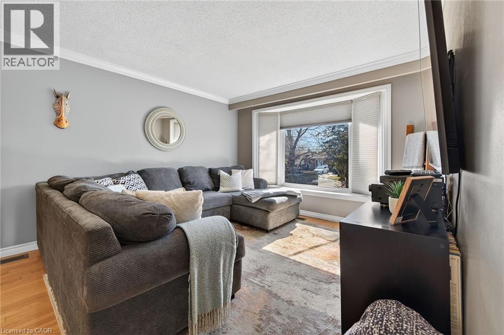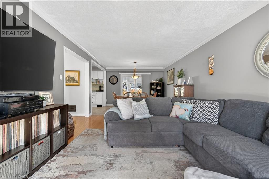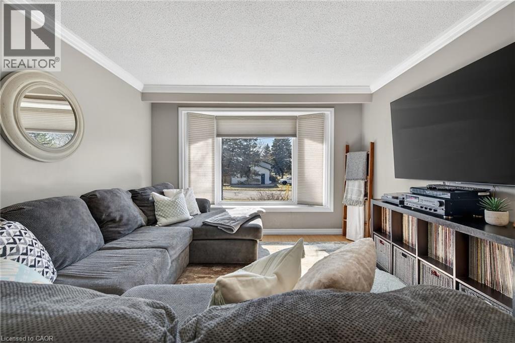 Nestled on an oversized pie-shaped lot this raised bungalow has a lot to offer. Front entry with wainscoting. Main floor offers a spacious living room complete with hardwood floors and a bay window. This, in turn, is open to the dining room, which has large sliding doors leading to the 3 season sunroom - perfect spot to start and end your day overlooking your backyard. Kitchen is loaded with white cabinetry and new appliances. Gorgeous main bathroom completely renovated. Rest of main floor provides 3 bedrooms. Lower level features a large family room with gas fireplace & large above grade window. A 4th bedroom, laundry/utility room, 2 piece bath and access to the garage completes this level. Parking is a breeze with parking for 4 on the asphalt paved driveway plus an additional spot in the attached garage with inside access. Located close to amenities, walking paths, the Grand River, schools & parks. Offering peace of mind with many updates including: Furnace & A/C (2021); House & Sunroom Roof (2022); Main Bath (2022); Chimney (2021); Hot Water Heater (2021); All Indoor Outlets & Switches (2020); Dishwasher (2020); Washer (2023); Dryer (2025); Gas Fireplace Inspected/Serviced w/ a 2 yr warranty (2025); Fridge & Stove (2026). (id:64974)