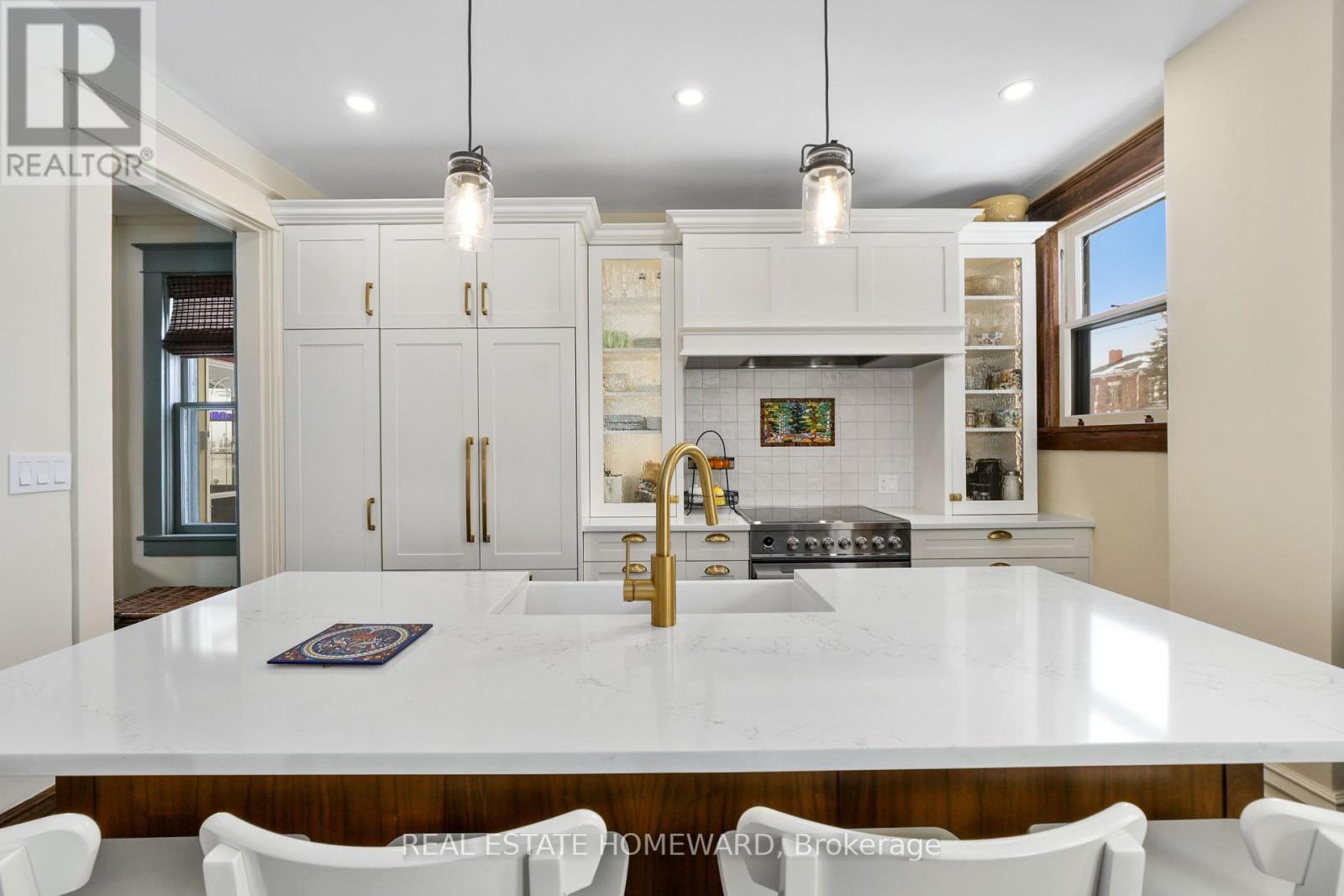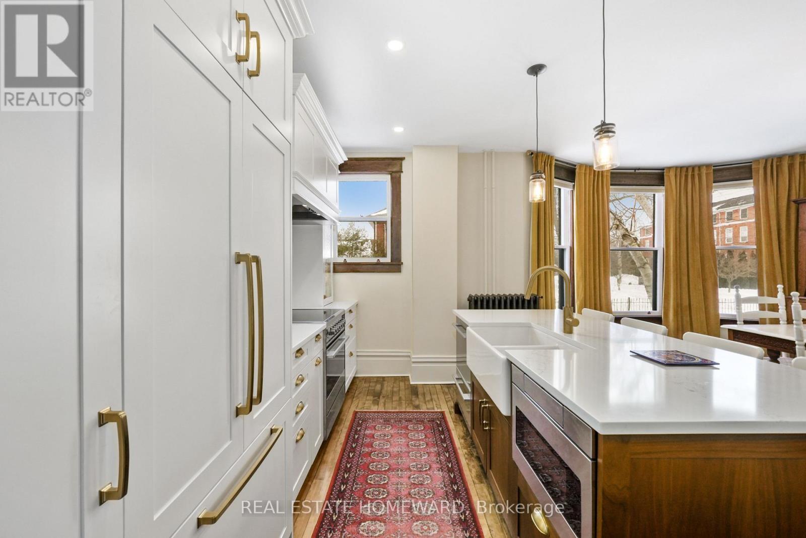 A distinguished Cobourg residence that blends classic architecture with modern function. The bright and spacious recently renovated lower level apartment offers a buyer exceptional value and excellent income options or a gorgeous and generous separate space for a family member!! A large partially-completed dormered attic space adds further options! A home office, guest bdrm, a playroom, workout space, theatre room, etc. Timeless façade, clean lines, and generous proportions.The home features a premium craftsmanship custom Kingsmill kitchen. Fisher & Paykel appliances, farmhouse sink, brass fixtures, h/m tile backsplash. B/I refrigerator. Island delivers a furniture-quality aesthetic, below-counter Sharpe drawer microwave. The main floor w/defined living, dining, family rooms w/ high ceilings, gas fireplace, bay window, hardwood floors. Large windows! Main-floor entry hall, vestibule 2 piece powder rm. Stained and leaded glass, architectural elements retained with spectacular light fixtures. Every element has been thoughtfully curated to honour its history. Designed by a master gardener, the grounds have been designed for minimal effort and maximum visual impact, vibrant perennials and ornamentals offering interest year round. Custom wrought-iron fencing. Tandem double driveway (4 car) and single-car garage!!! Located just minutes from the Cobourg white sandy beach and Yacht Club, enjoy close proximity to Victoria Hall, VIA Rail, easy commuting to Toronto/ 401 corridor. Trinity College School 15 mins away! Min's to charming restaurants, cafés, boutique shops, and everyday amenities, all within a community renowned for its heritage character and relaxed lakeside lifestyle. This home truly checks all the boxes!!! (id:64974)