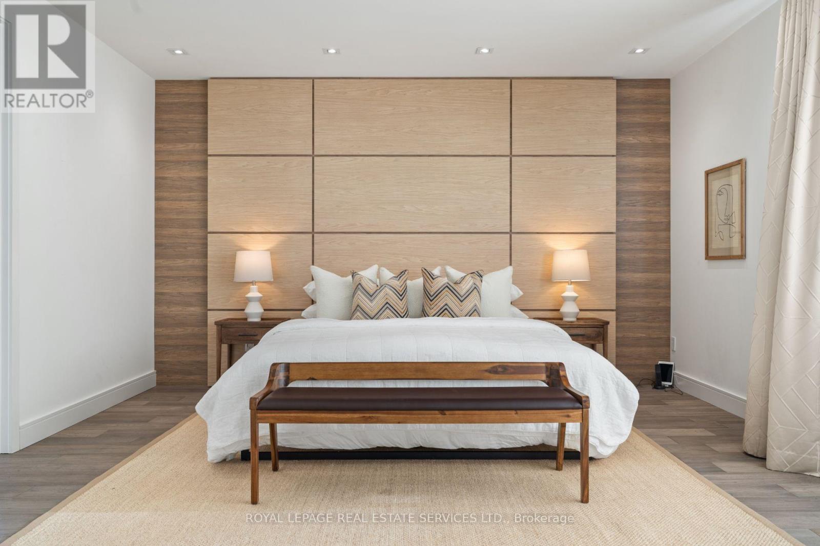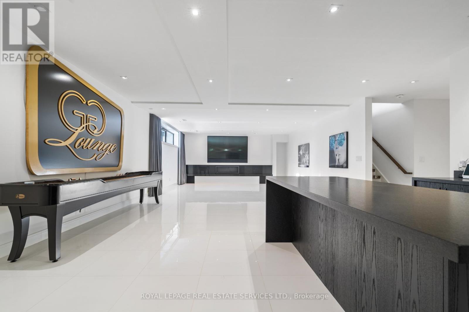 Stunning modern-contemporary custom residence in the heart of The Kingsway, offering an exceptional combination of design, scale, and location. Situated on a rare 54 x 199 ft ravine lot backing onto Tom Riley Park, this home provides a private and tranquil setting surrounded by mature greenery, while remaining just steps from transit, top-rated schools, and the vibrant shops and restaurants along Bloor Street. Spanning approximately 5,200 sqft of total living space, this 4+2 bedroom, 5 bathroom home showcases innovative architecture, premium finishes, and a highly functional layout across all levels. The main floor is anchored by a contemporary chefs kitchen with Caesarstone countertops and backsplash, Jenn-Air, Bosch, and Wolf appliances, a built-in coffee station, and custom wine display, seamlessly flowing into open concept living and dining spaces. Expansive glass doors connect to a covered 340 sqft patio with fireplace, perfect for year round entertaining. Upstairs, a skylit hallway leads to generously sized bedrooms, spa-like baths, and a 326 sqft upper terrace with ravine views, while the lower level offers a dedicated wine cellar, recreation room with fireplace, and state-of-the-art home theatre with 98" 4K screen and custom sound system. Additional highlights include multiple gas fireplaces (indoor and outdoor), heated basement floors, engineered hardwood throughout, illuminated stair features, dual laundry rooms, smart-home automation, and a private backyard oasis designed for relaxation. Rarely does a property of this calibre become available in such a prestigious and family-friendly neighbourhood. (id:64974)