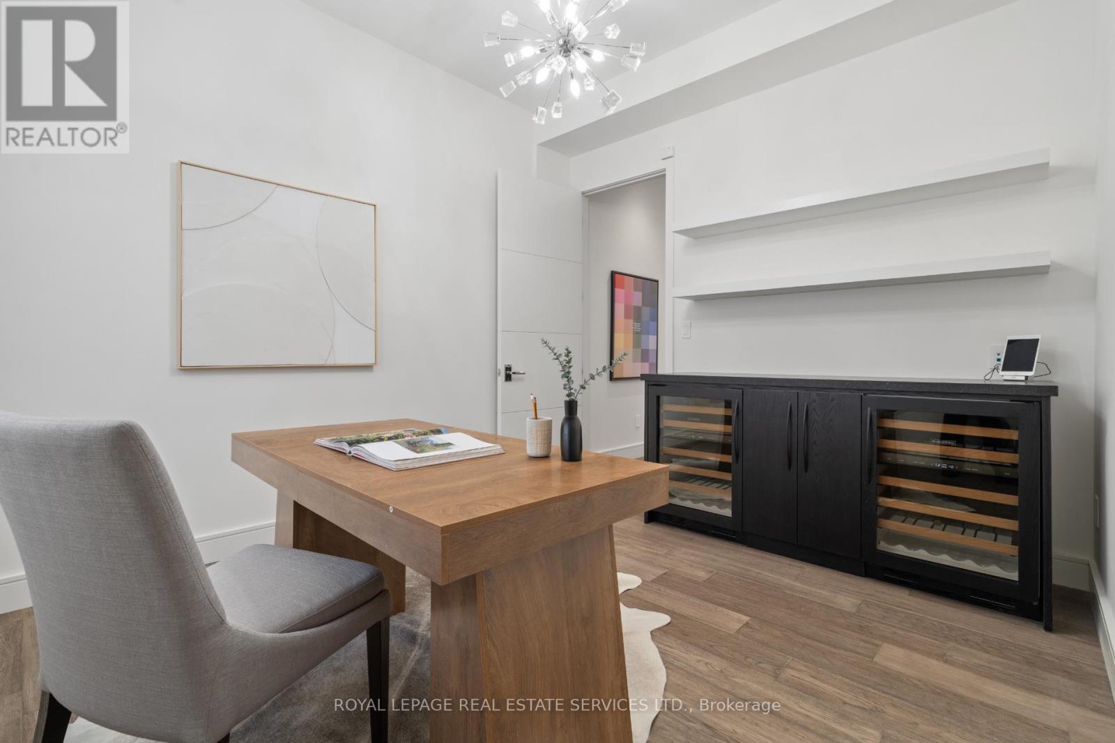 Stunning modern-contemporary custom residence in the heart of The Kingsway, offering an exceptional combination of design, scale, and location. Situated on a rare 54 x 199 ft ravine lot backing onto Tom Riley Park, this home provides a private and tranquil setting surrounded by mature greenery, while remaining just steps from transit, top-rated schools, and the vibrant shops and restaurants along Bloor Street. Spanning approximately 5,200 sqft of total living space, this 4+2 bedroom, 5 bathroom home showcases innovative architecture, premium finishes, and a highly functional layout across all levels. The main floor is anchored by a contemporary chefs kitchen with Caesarstone countertops and backsplash, Jenn-Air, Bosch, and Wolf appliances, a built-in coffee station, and custom wine display, seamlessly flowing into open concept living and dining spaces. Expansive glass doors connect to a covered 340 sqft patio with fireplace, perfect for year round entertaining. Upstairs, a skylit hallway leads to generously sized bedrooms, spa-like baths, and a 326 sqft upper terrace with ravine views, while the lower level offers a dedicated wine cellar, recreation room with fireplace, and state-of-the-art home theatre with 98" 4K screen and custom sound system. Additional highlights include multiple gas fireplaces (indoor and outdoor), heated basement floors, engineered hardwood throughout, illuminated stair features, dual laundry rooms, smart-home automation, and a private backyard oasis designed for relaxation. Rarely does a property of this calibre become available in such a prestigious and family-friendly neighbourhood. (id:64974)
