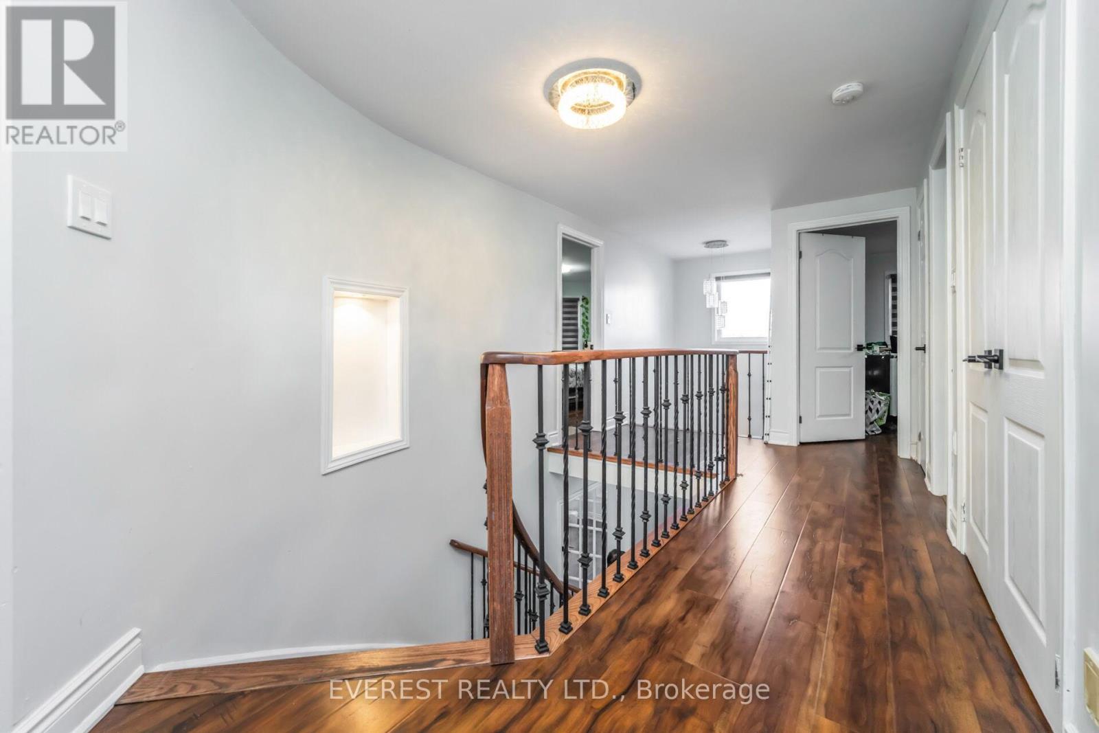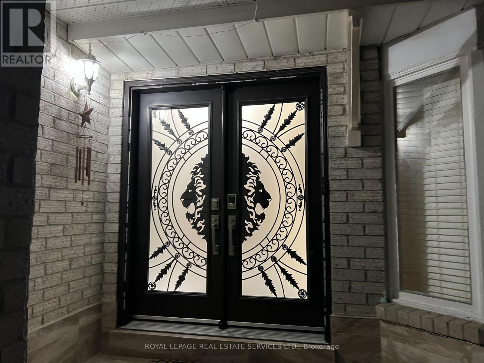 Presenting a rare opportunity to own a gracious all-brick two-storey home with approximately 2,832 sq. ft. (per MPAC) on a 213-ft deep ravine lot. Features a double-door entrance and foyer with curved staircase, formal living/dining with engineered hardwood, modern pot lights on the main floor, and a family-sized eat-in kitchen with family room featuring a fireplace, stainless steel gas stove, breakfast bar, and walk-out to a 25' x 35' concrete patio.Main-floor office/fifth bedroom with 3-piece ensuite. Upper level includes four bedrooms, shared washroom, and primary suite with walk-in closets and 5-piece ensuite. Finished lower level features a registered 2-bedroom Legal basement apartment with separate studio with separate stackable laundry. 200-amp electrical panel upgraded in 2021, double-car garage, and four driveway spaces.Located close to amenities, schools, parks, shopping, 407/401 Highways and transit. (id:64974)