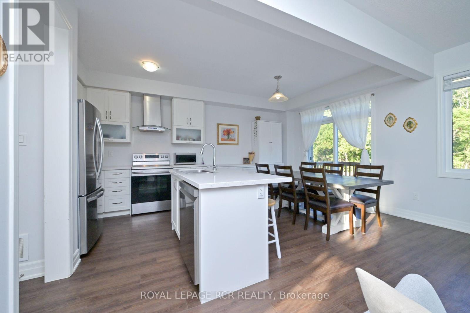 Thoughtfully designed for modern family living, this beautiful all-brick 2-storey home offers the perfect blend of comfort, function, and outdoor space. Built in 2021 and nestled on a rare 174 ft deep lot backing onto peaceful greenspace and walking trails, it's a private backyard oasis where kids can play, parents can unwind, and the whole family can enjoy time together inside and out. Step inside to a welcoming foyer with soaring 18 ft ceilings and oversized windows that fill the home with natural light. The main floor open concept layout perfect for busy family life and weekend entertaining. At the heart of the home is a stylish kitchen with quartz countertops, white cabinetry, stainless steel appliances, and a large island with breakfast bar seating. The adjoining dining area walks out to a balcony with tranquil views - ideal for morning coffee or family dinners with a sunset backdrop. Upstairs, you'll find 3 generous bedrooms, including a serene primary suite with walk-in closet and spa-like ensuite featuring a soaker tub, double vanity, and glass-enclosed shower. The unfinished walkout basement with bathroom rough-in offers amazing potential - whether its a playroom, home gym, in-law suite, or media room. The possibilities are endless. Located in a friendly, well connected neighbourhood just minutes from schools, shopping, parks, major highways and Base Borden, this home combines peaceful living with everyday convenience. ** This is a linked property.** (id:64974)