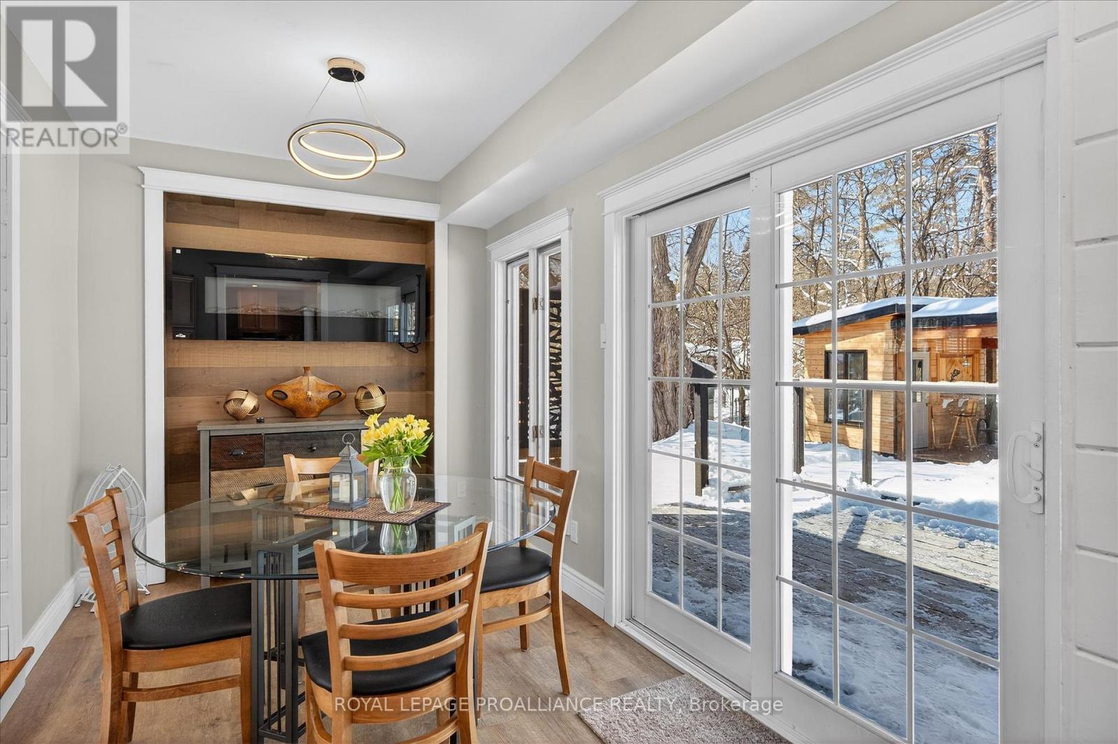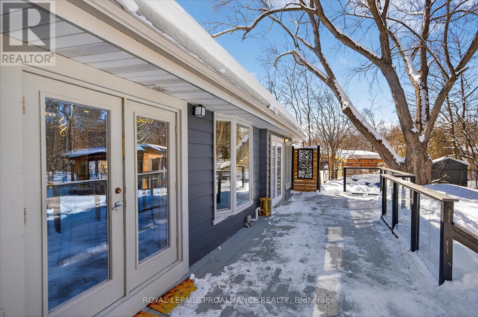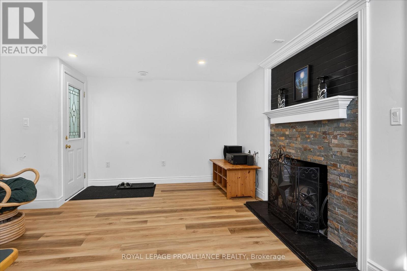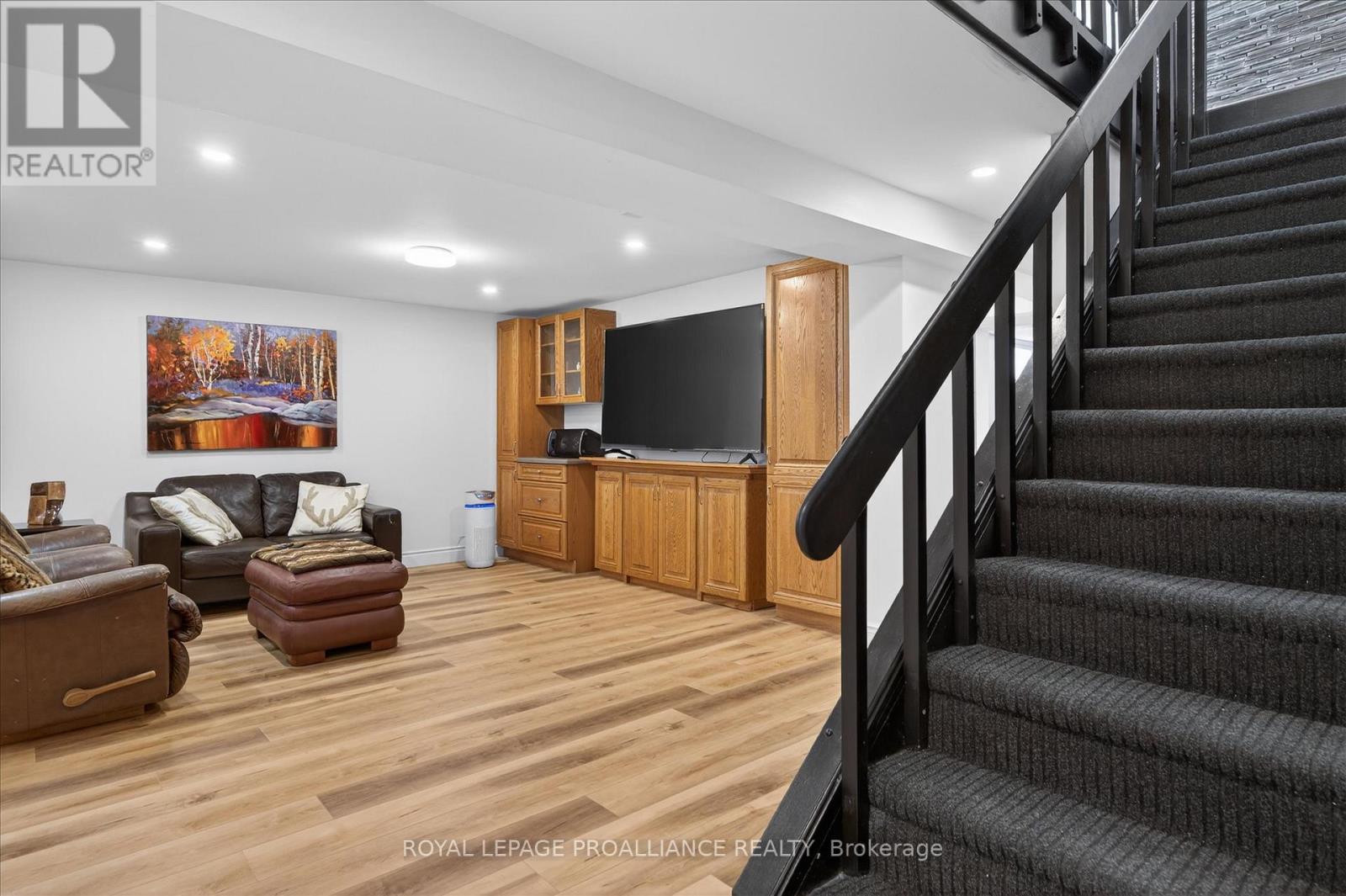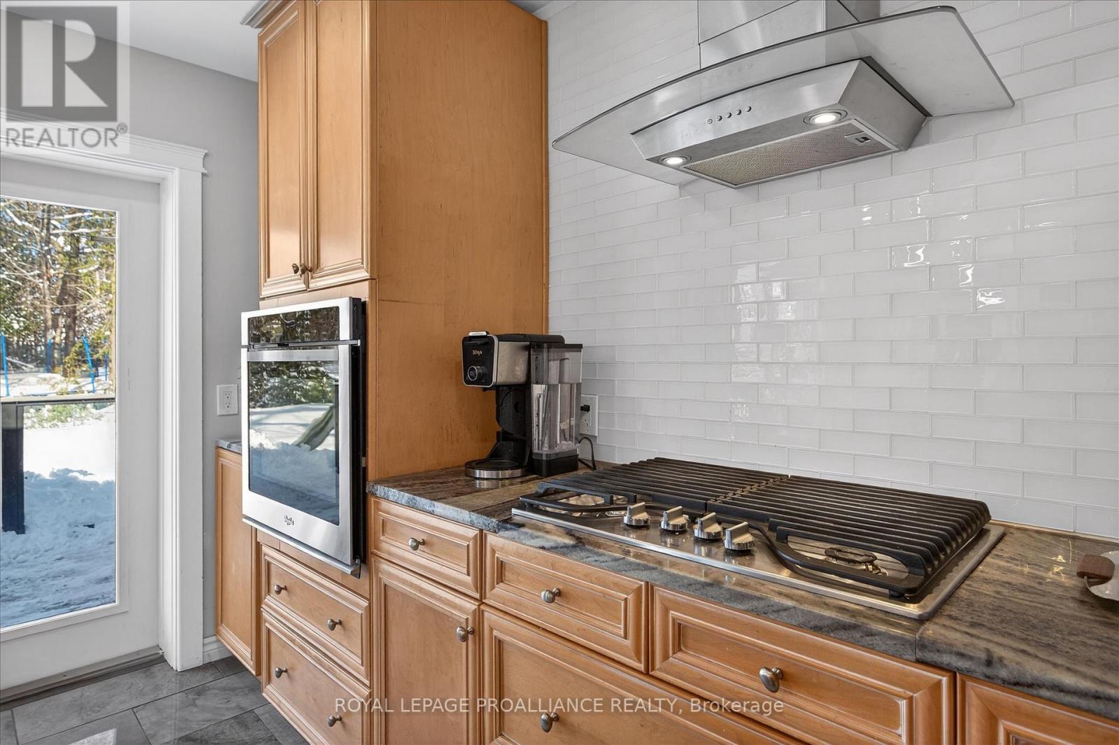 This updated executive bungalow is located in one of Peterborough's most sought-after neighbourhoods. Just a short walk from the Peterborough hospital, and steps from Weller Park. A spacious pool-sized backyard, with mature trees and privacy... plus the mini bar clubhouse for entertaining guests outdoors! Offering elegance in its character features, but with modern comfort, and outstanding versatility. 4 bedrooms, 3 bathrooms, and two full kitchens. The main level features a sun-filled, open-concept layout anchored by a chef-inspired kitchen with an expansive granite island, stainless steel appliances, and dual ovens, ideal for elevated entertaining. The kitchen flows into a sunken dining area highlighted by an electric fireplace, creating a warm and sophisticated atmosphere. The living space is enhanced by a classic wood-burning fireplace, while the spacious primary bedroom offers a full ensuite.Step outside to a generous deck overlooking a private backyard, perfect for summer gatherings, outdoor dining, or quiet relaxation.The fully finished lower level has a separate entrance, and offers exceptional flexibility with a second kitchen and bar area, a large recreation room, games or fitness space, an additional bedroom, and a dedicated media room with fireplace, projector hookup, and walk-out access to the garage-ideal for entertaining or multigenerational living.Ideally positioned close to excellent schools, shopping, and just a short walk to the PRHC hospital, this distinguished west-end home delivers luxury, comfort, and location in one impressive offering. (id:64974)