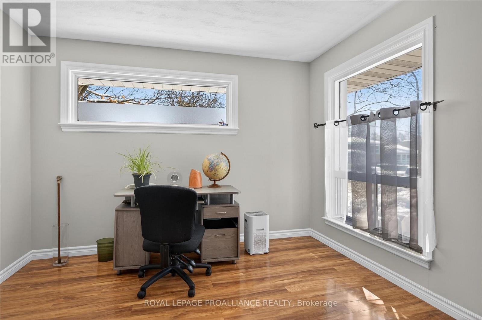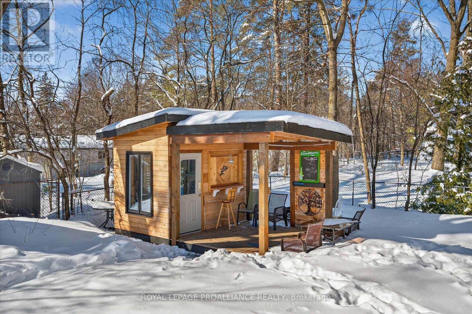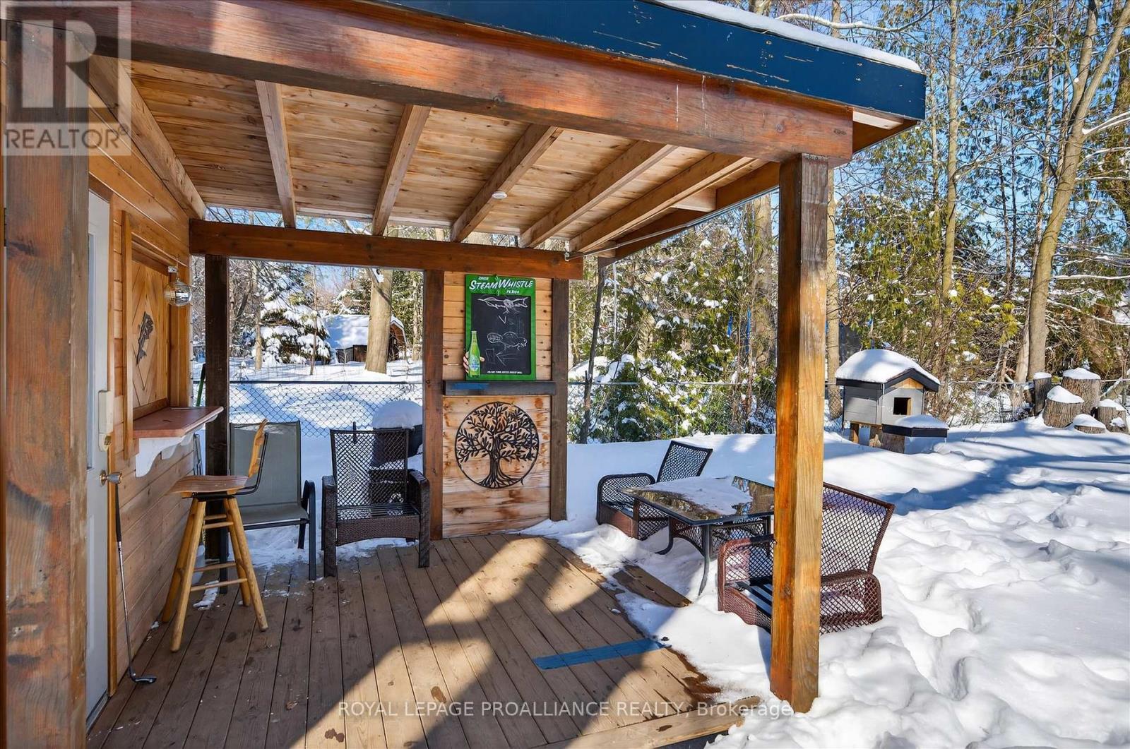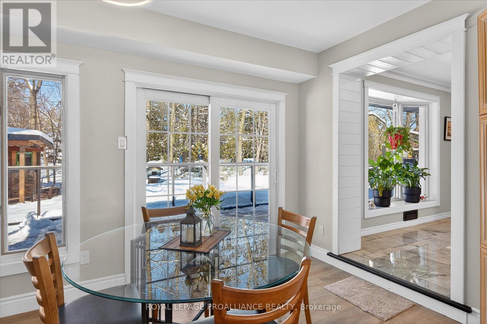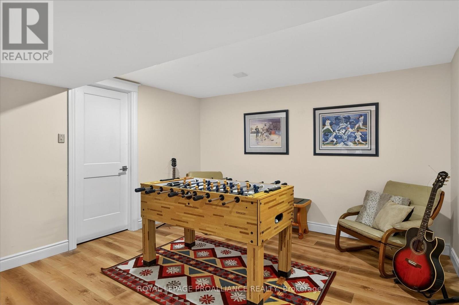This updated executive bungalow is located in one of Peterborough's most sought-after neighbourhoods. Just a short walk from the Peterborough hospital, and steps from Weller Park. A spacious pool-sized backyard, with mature trees and privacy... plus the mini bar clubhouse for entertaining guests outdoors! Offering elegance in its character features, but with modern comfort, and outstanding versatility. 4 bedrooms, 3 bathrooms, and two full kitchens. The main level features a sun-filled, open-concept layout anchored by a chef-inspired kitchen with an expansive granite island, stainless steel appliances, and dual ovens, ideal for elevated entertaining. The kitchen flows into a sunken dining area highlighted by an electric fireplace, creating a warm and sophisticated atmosphere. The living space is enhanced by a classic wood-burning fireplace, while the spacious primary bedroom offers a full ensuite.Step outside to a generous deck overlooking a private backyard, perfect for summer gatherings, outdoor dining, or quiet relaxation.The fully finished lower level has a separate entrance, and offers exceptional flexibility with a second kitchen and bar area, a large recreation room, games or fitness space, an additional bedroom, and a dedicated media room with fireplace, projector hookup, and walk-out access to the garage-ideal for entertaining or multigenerational living.Ideally positioned close to excellent schools, shopping, and just a short walk to the PRHC hospital, this distinguished west-end home delivers luxury, comfort, and location in one impressive offering. (id:64974)