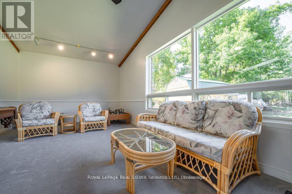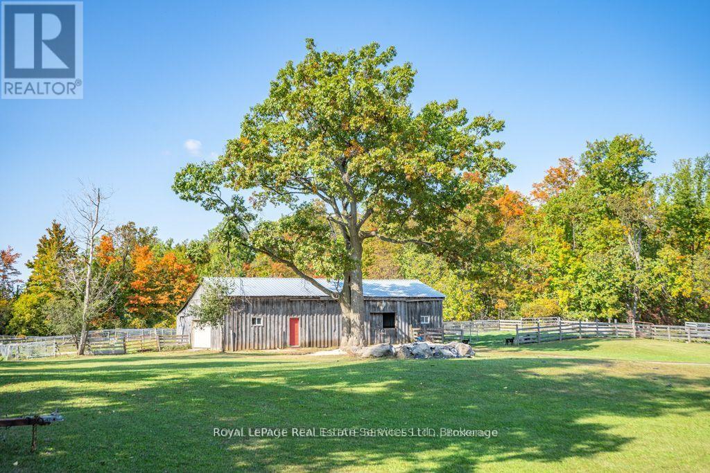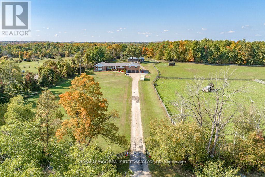 Now on Standard Broadband fibre optics! Note 6 separate walkouts. Beautiful property to be your forever family home, ideal for multi generational living. Impressive (8 bedroom total) 4,500+ square feet (6 bedrooms on main level) bungalow with 3,000+ square foot lower level with walkout at grade level entry which includes a 2 bedroom 1,983 square foot inlaw suite (with lots more room to expand) all on a huge 25 acre parcel of land full of personality comprising a balance of workable land, mixed woods with amazing trilliums, all sure to please the most discerning buyer! Bring your wish list here and check off your boxes! If privacy is a factor, this fine family home is set well back off the road, and is nicely elevated affording beautiful views off all windows and ideal for the nature lover. Additionally for the car collector or multi vehicle family, a total garage space accommodating 7 vehicles or specialty toys, atv's, snowmobiles, etc., of which the tandem 4 car garage with double o/h door is 45'x23'. The updated 24'x40' pole barn with extra double doors on west end, has water and hydro and 3 System Equine stalls for your horses, goats, chickens, or many more parking spaces for your vehicles/trailers. Fantastic location for Pearson Airport commuters per Google only 30 minutes. (id:64974)