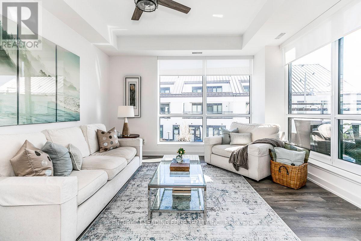 Where Sophistication Meets the Waterfront. This exceptional residence captures the essence of refined lake-side living, offering captivating views of the Marina, Centre Pier, and the sparkling expanse of Lake Simcoe. From vibrant fireworks and live entertainment to the peaceful movement of boats along the water, every day feels like a luxury escape. Enjoy it all from your private balcony or expansive rooftop terrace. An outdoor sanctuary perfect for elegant gatherings, Inside, the spacious design offers the ideal backdrop for elevated hosting and serene day-to-day living, with stunning water views from every level. As a homeowner, you'll receive six exclusive membership cards, granting privileged access to the private beach area, pools, fitness facilities, tennis, pickle ball courts, , kayaking, paddle boarding, snow-shoeing and more. Summer nights come alive with live music, waterfront dining, and an atmosphere unlike anywhere else, yet conveniently located just over an hour from the GTA. Luxury. Lifestyle. Lakefront Living. What else is there? **EXTRAS** Include In Schedule A; Buyer Is To Pay: Condo Fee $877.54/Month, Lake club Fee $230.60 plus hst/Month, Yearly Resort Fee $3378.68 Buyer to pay 2% plus hst Entry Fee to Resort Association on closing. (id:64974)