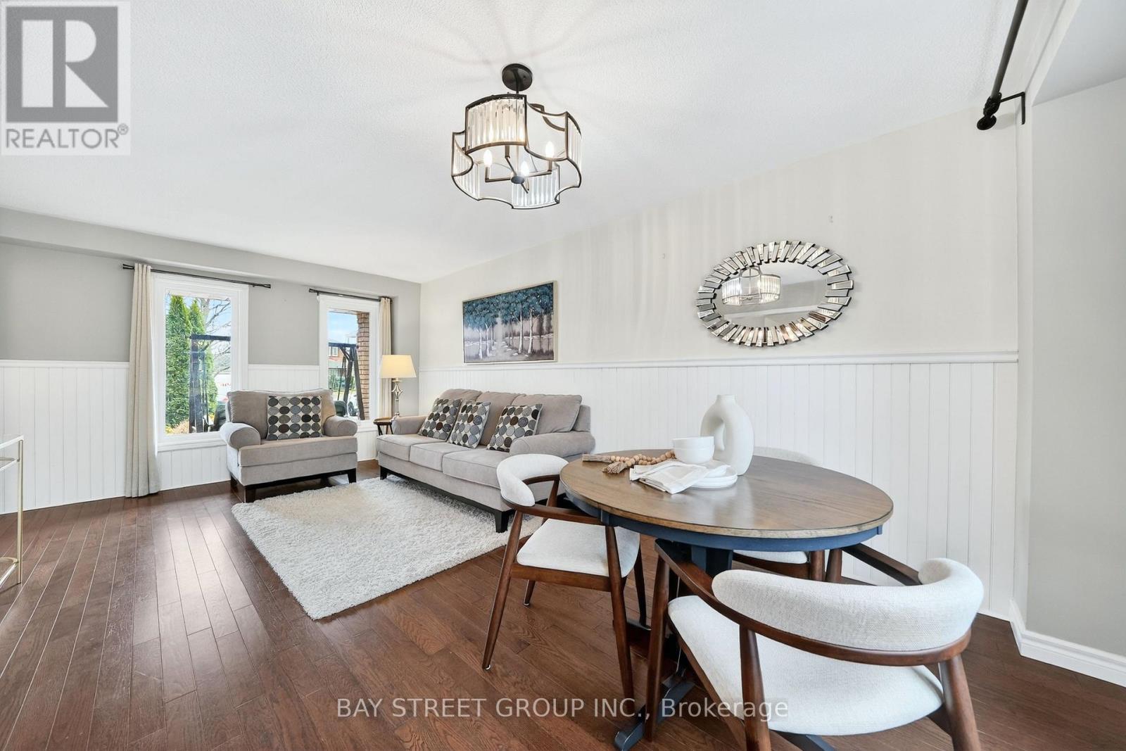 Welcome to 97 Bishop Dr, a beautifully updated family home tucked into Ardagh Bluffs, a neighbourhood loved for its peaceful, family-friendly atmosphere, excellent access to parks and green space, strong school options, and convenient proximity to Highway 400, shopping, and everyday amenities. Ardagh is especially known for its abundance of nature and trails while Barrie's waterfront is also just a short drive away. This move-in ready home offers a functional, well-designed layout with solid hardwood flooring throughout the main floor, bright and inviting living and dining spaces, and an updated kitchen featuring a brand-new centre island that is perfect for both daily living and entertaining. Recently upgraded main floor windows and doors add comfort, efficiency, and style, while the upgraded staircase brings a refined modern touch to the upper level, where you'll find three well-sized bedrooms ideal for growing families. All upgrades were completed in 2021.Step outside to enjoy the huge backyard deck, an excellent extension of the living space for summer gatherings & family BBQs. The professionally finished basement adds exceptional flexibility with a spacious recreation area and a 3-piece bath, offering outstanding in-law or extended family potential and easy future customization possibilities . Complete with a double car garage and set on a child-safe street, this is a fantastic opportunity to own a stylish, versatile home in one of the city's most desirable neighbourhoods. Do Not Miss!! (id:64974)