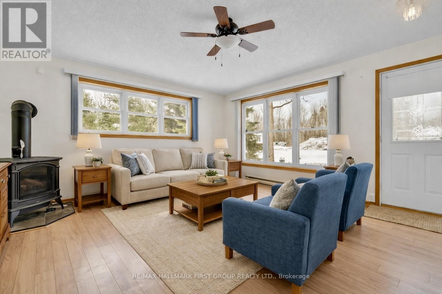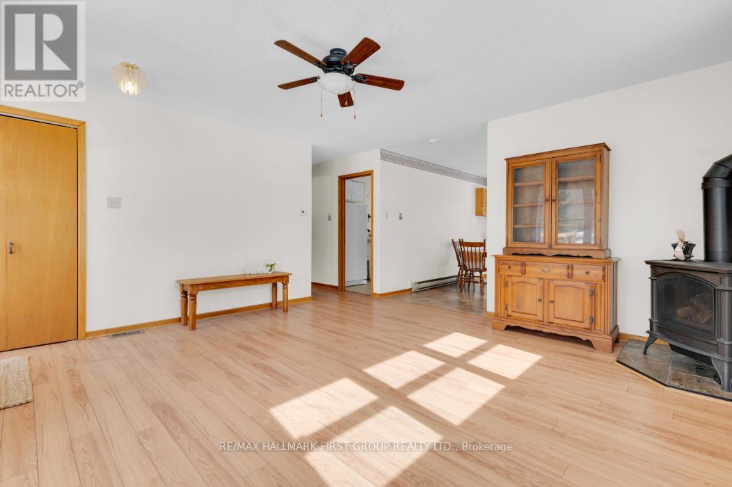 PARK-LIKE SETTING! This charming 3-bedroom bungalow sits on a quiet 2-acre lot in a lovely rural cul-de-sac, just 5 minutes from the Village of Tweed. The bright, cozy one-level home features a propane fireplace in the living room, a spacious kitchen with plenty of cupboards open to the dining area, and sliding glass doors leading to a deck and gazebo with views of the private, treed yard. There are three bedrooms, a main 4-piece bath, and a large laundry room with a 2-piece bath and walkout to the backyard. The attached garage offers parking and storage, with a paved driveway, space for multiple vehicles. This stunning property showcases some beautiful gardens. The home boasts a metal roof, has been well maintained. Fantastic location close to Stoco Lake, boat launch, and Trans Canada trails for ATV and snowmobile enthusiasts. Ready for its new owner with flexible closing. This home is a-must see! (id:64974)