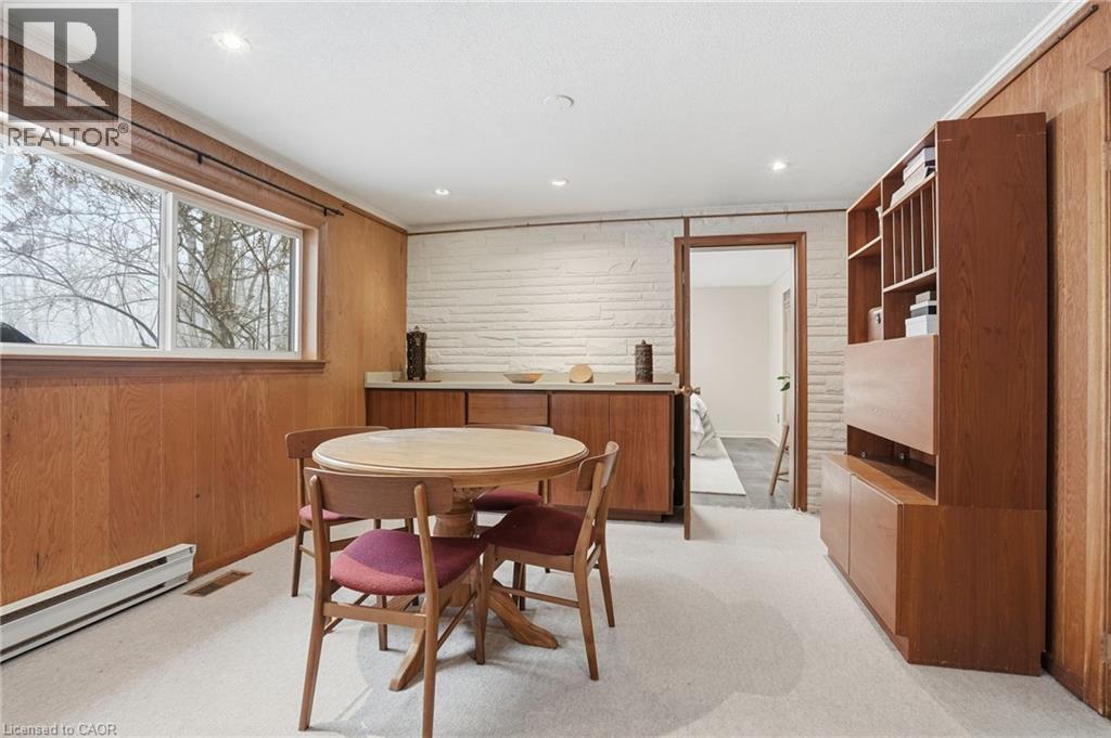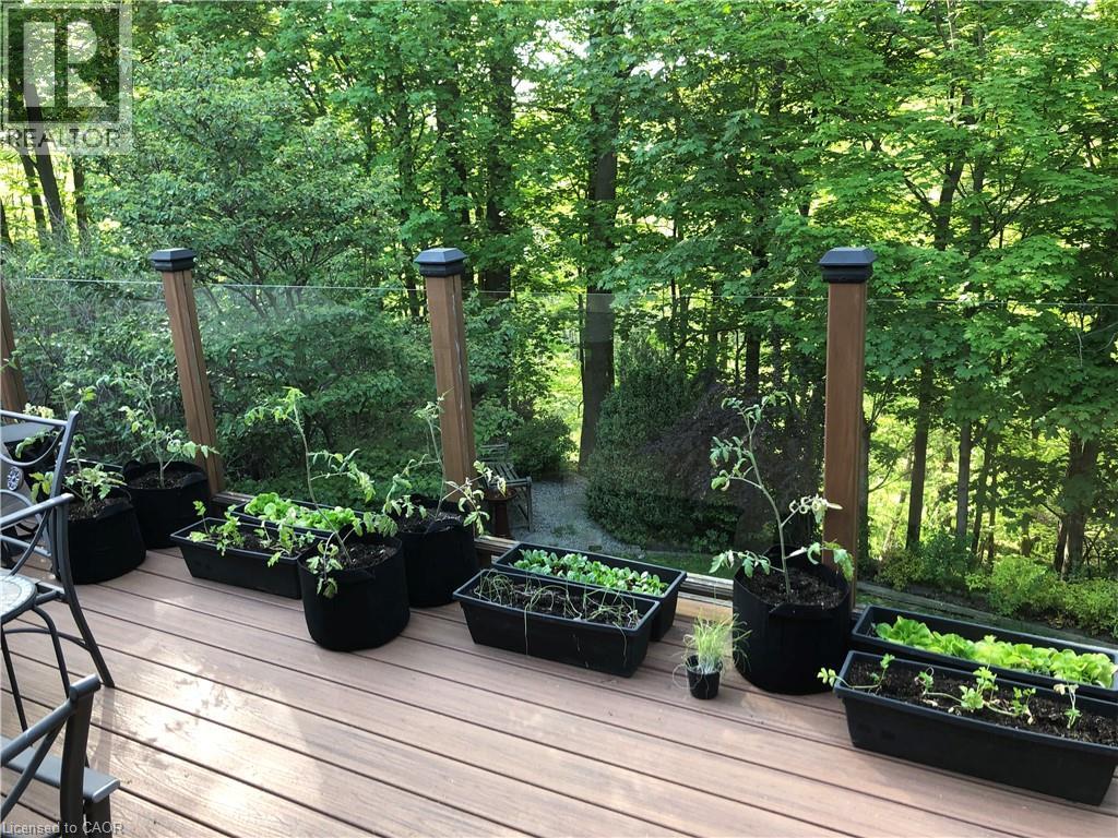 RARE OPPORTUNITY! Nestled on a quiet street w/ seamless access to both Ancaster & Dundas, this charming home offers a rare blend of functional living & a private connection to nature. Backing directly onto the prestigious Dundas Valley Conservation Area, the property is a sanctuary for local wildlife, where deer & birds are your most frequent neighbours. The main floor radiates character w/ its original hardwood flooring & a cozy gas fireplace, featuring 3 spacious bedrooms & updated 3-pc bath. Step through the patio doors onto the expansive deck (2018) to enjoy panoramic views of the lush greenery - the perfect spot for morning coffee or evening relaxation. The home is designed for versatility, boasting a full walk-out basement that serves as a complete in-law suite w/ stairs down from the front of the house as well. This lower level includes a 4th bedroom, a second 3-pc bath, & a rustic wood-burning stove that adds warmth to the living space. With its own set of patio doors leading to a professional interlock brick patio, the suite offers true independence & easy access to the outdoors. Practicality is woven throughout the property, from the shared laundry facilities to the impressive parking capacity, including a 2-car garage & a large driveway that fits 3 vehicles. Significant investments in the home’s infrastructure provide lasting peace of mind. The kitchen was tastefully updated in 2011, while the mechanical systems are well-maintained w/ the furnace & A/C installed in 2013. Most notably, the shingles were replaced in 2023, ensuring the home is protected for years to come. Baseboards provide a secondary heat source in the basement. Whether you are looking for a multi-generational family home, investment property or a peaceful retreat that feels miles away from the city while being minutes from every amenity, this property delivers an unmatched lifestyle in one of the region’s most beautiful settings. You must see the view to truly appreciate this opportunity! (id:64974)