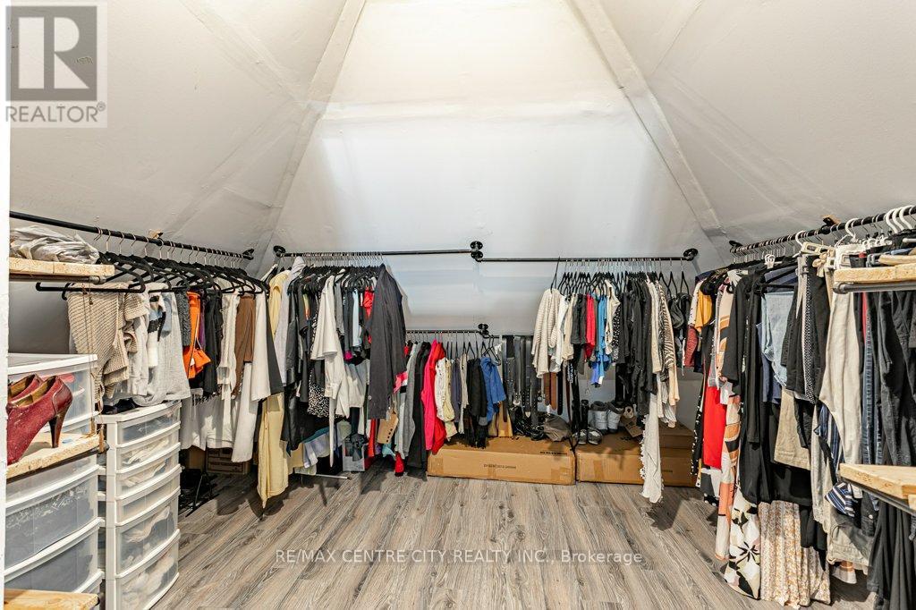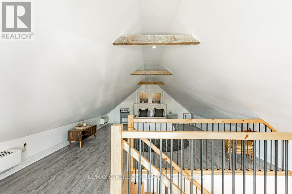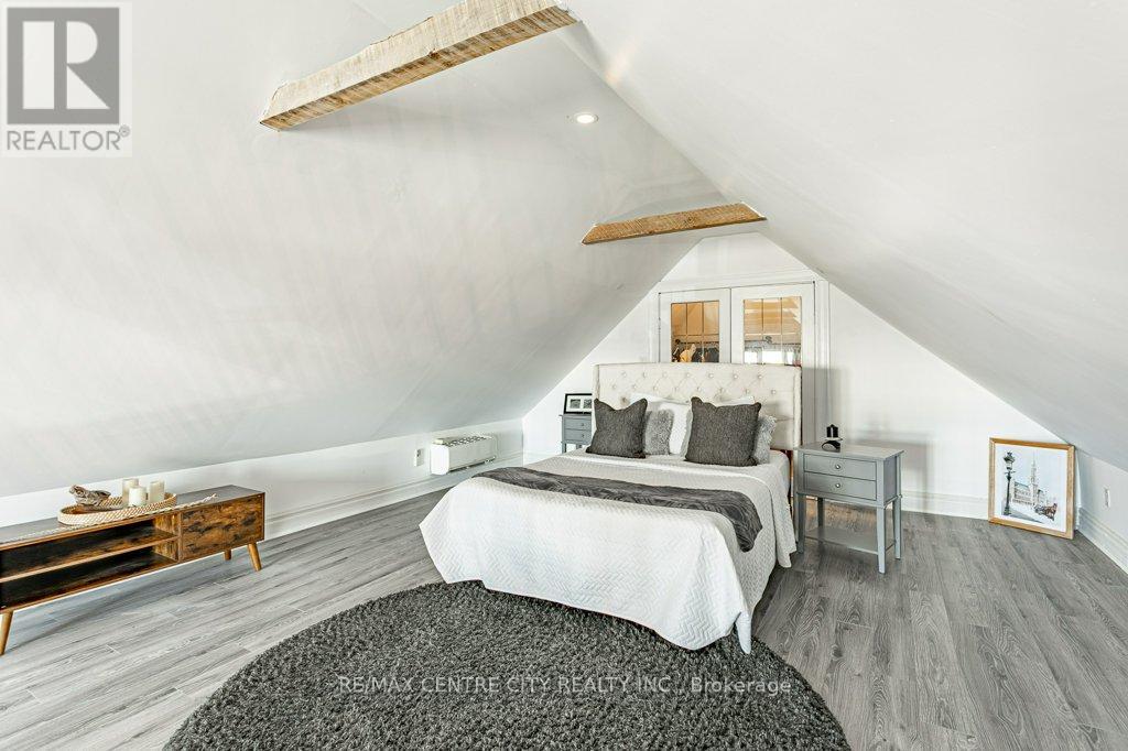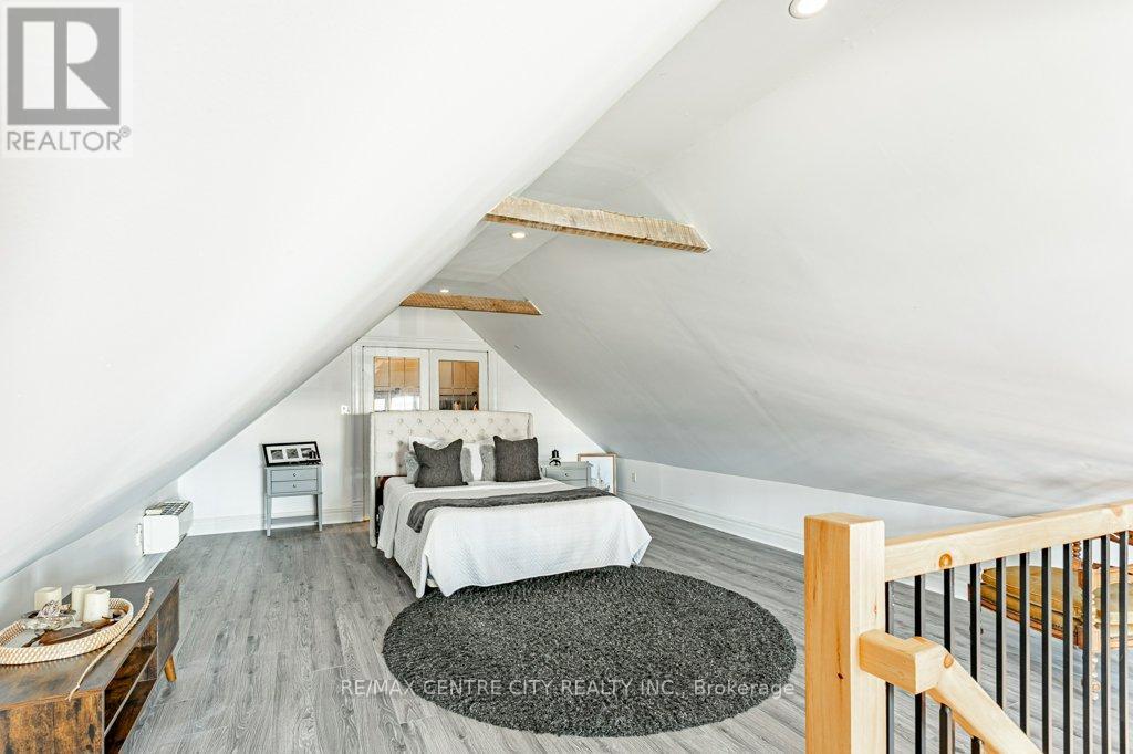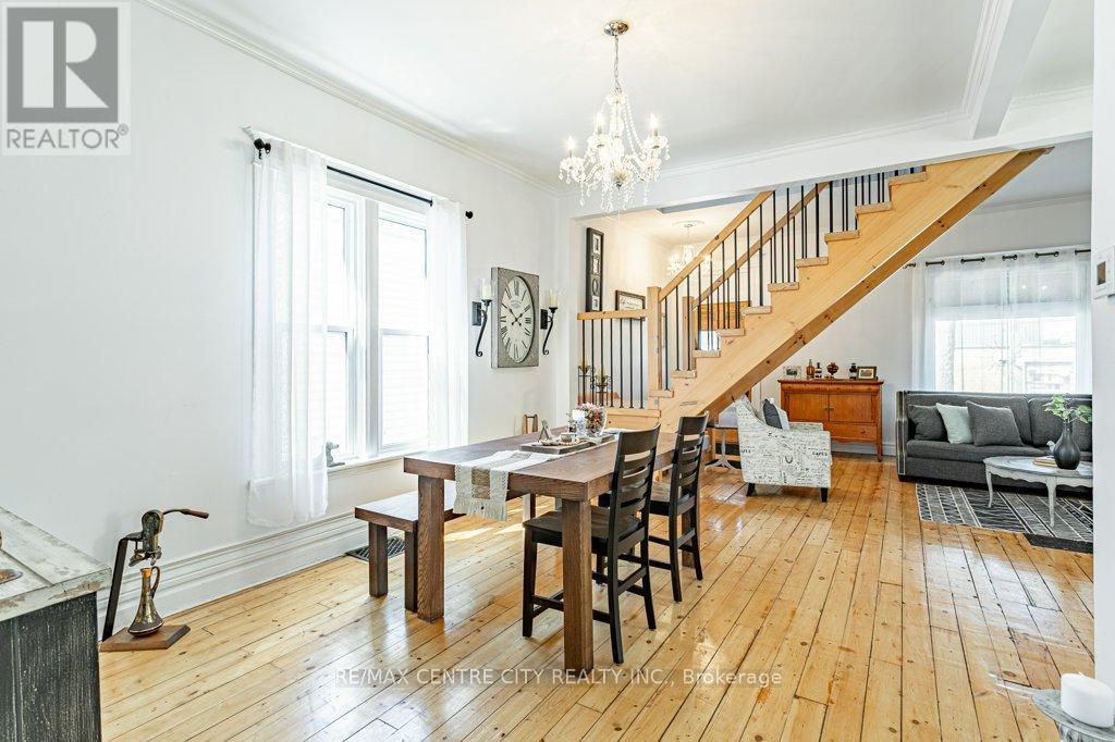 Welcome to 971 Elias Street, nestled in the vibrant Old East Village of London. This distinctive 1.5-storey home offers three bedrooms and one bathroom, blending thoughtful functionality with timeless style. Carefully updated, it retains the charm and character of its early 1900s roots.Step into the bright and inviting main living space, where refinished solid hardwood floors, soaring 10-foot ceilings, and large windows fill the home with natural light. The kitchen features ceiling-height cabinetry, ample storage, a gas stove, dishwasher, fridge, and double sink.The spacious main-floor bathroom includes a large jetted tub with shower, vanity, and tiled flooring. Upstairs, the loft-level primary bedroom serves as a private retreat, complete with an expansive walk-in wardrobe.Convenience continues with main-floor laundry and direct access to a wrap-around deck, perfect for outdoor living. The fully fenced backyard offers privacy, along with rear laneway access and parking for up to two vehicles.Enjoy your downtime gardening, entertaining, or relaxing on the back deck or the welcoming covered front porch. Ideally located within walking distance to 100 Kellogg Lane, you'll have easy access to dining, entertainment, and local attractions, along with nearby parks, markets, and local community amenities.Book your showing today and discover why this unique home is the perfect place to begin your next chapter. (id:64974)