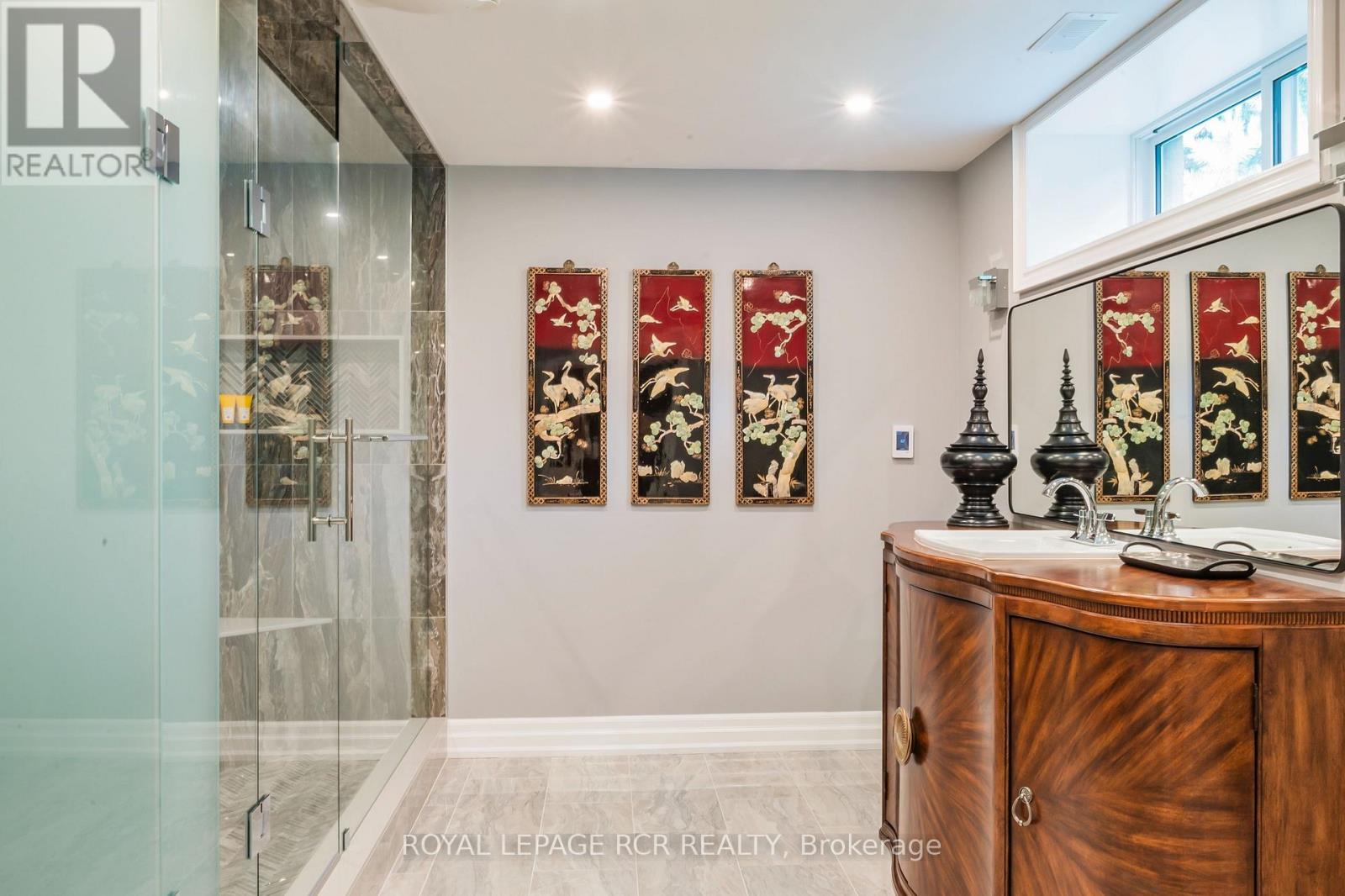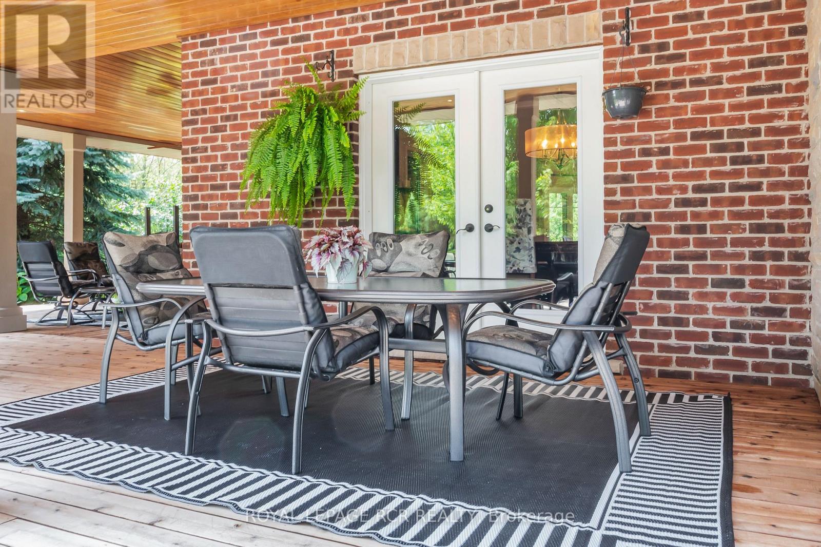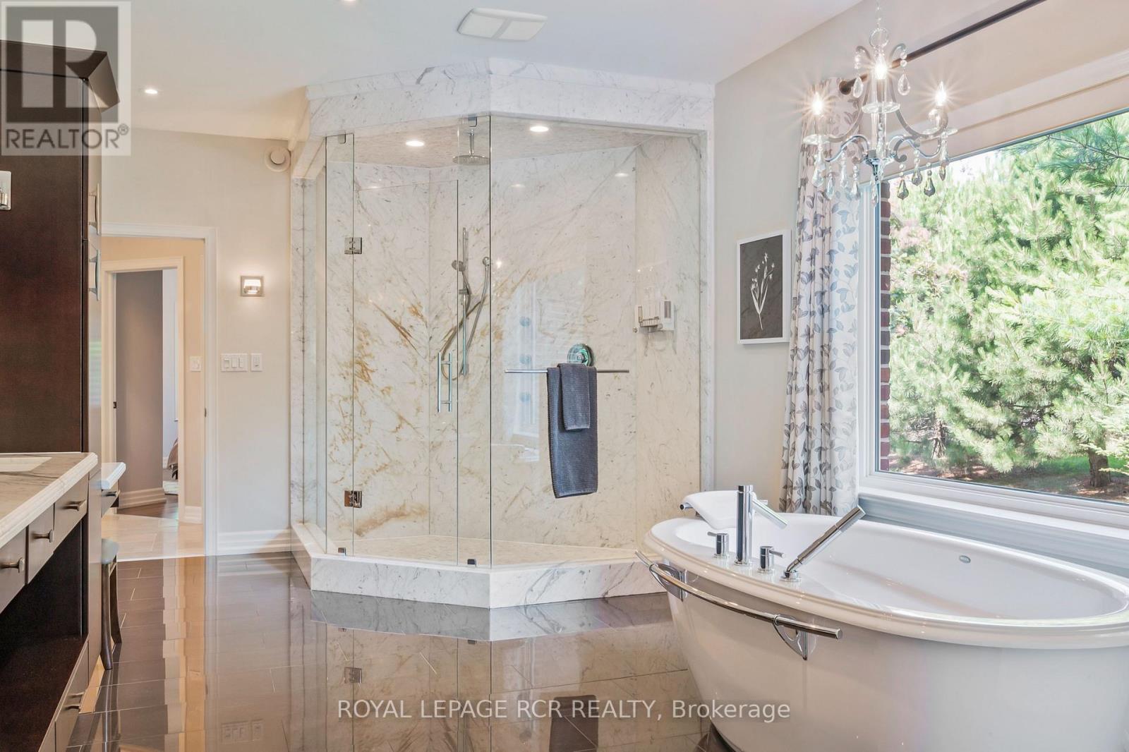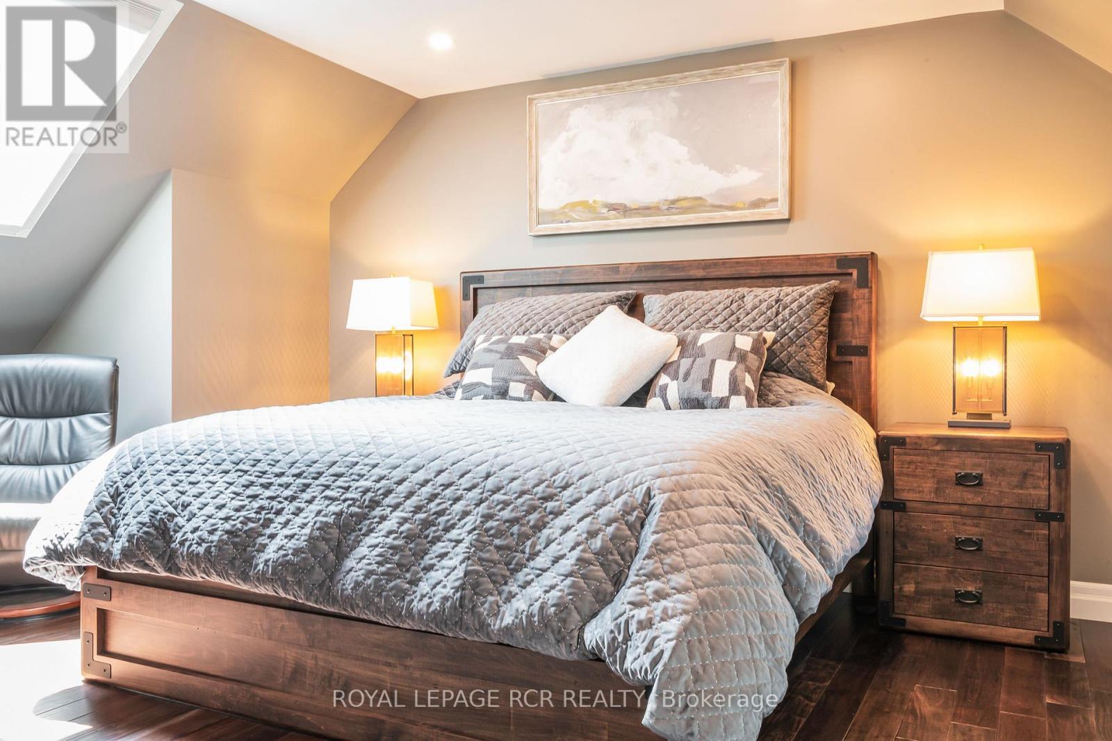 Welcome to your own private paradise just outside of Erin - where luxury, lifestyle, and location converge. This exquisite executive bungalow offers approximately 8,000 sq ft of total finished living space, blending comfort, elegance, and thoughtful design, both inside and out. Set on a beautifully landscaped lot just over an acre, the property is fully fenced and equipped with an in-ground sprinkler system. The backyard is a true oasis for relaxation and entertainment. Dive into the saltwater pool with a cascading waterfall, unwind in the covered hot tub, or host gatherings under the covered porch featuring cedar ceilings, outdoor speakers, a TV, and a wood-burning fireplace for cozy evenings. This outdoor space feels like your private resort, perfect for summer parties or tranquil morning coffees amid lush gardens. Inside, the main floor spans 3,500 sqft with soaring cathedral ceilings in the stunning great room. Durable bamboo flooring and a double- sided fireplace enhance the home's heart, while the eat-in chef-inspired kitchen, updated in 2022, boasts high-end appliances and ample prep space, ideal for daily meals or entertaining. Three generous bedrooms on the main level each offer their own ensuite bathrooms, including the luxurious primary suite with heated floors in both the ensuite and shoe room, a soaker tub beside a fireplace feature, and a walkout to the hot tub. A versatile 1,000 sqft loft above the oversized 3-car garage serves as guest space or a home studio, complete with a three piece bathroom with heated floors. The finished lower level adds approximately 3,500 sqft of living space, featuring heated floors, two bedrooms, two full baths, and a full kitchen. With smart technology and premium finishes, this home is not just a residence; it's a lifestyle. Close to schools, shopping, dining, equestrian centres, golf, and the nearby Elora Cataract Trail, it offers everything you need for a luxurious life. (id:64974)