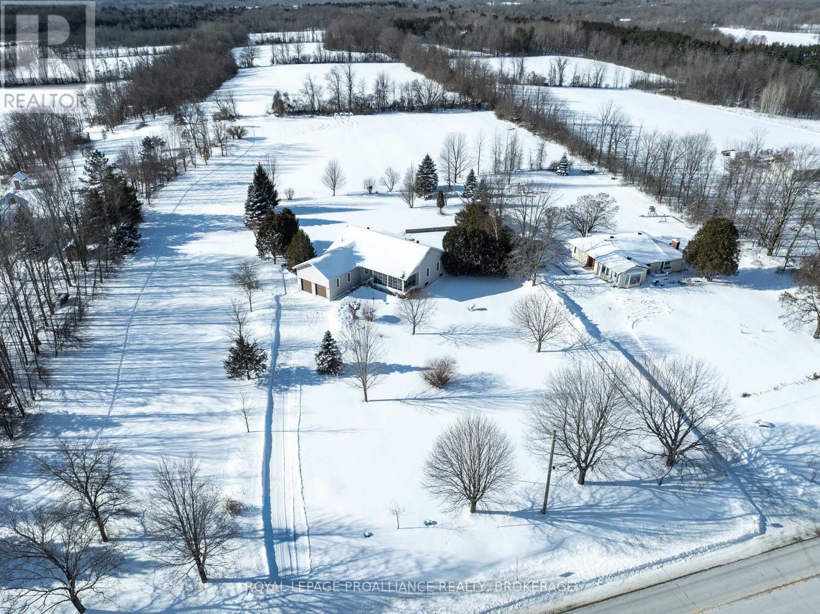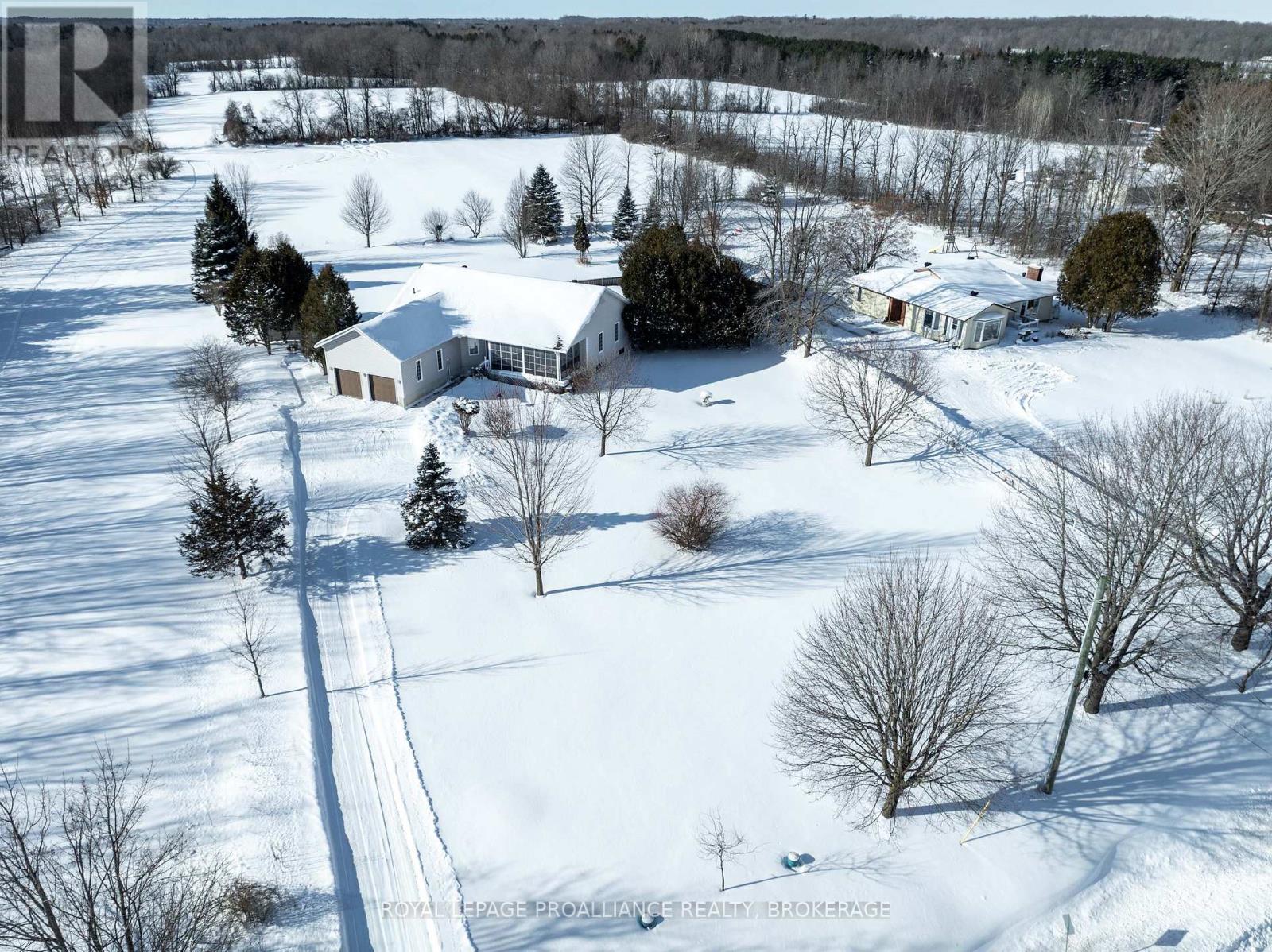 Country living just minutes southeast of the Village of Westport! This beautiful bungalow sits back from the road with a fenced rear yard, storage sheds and a 2-car detached garage. The home has a covered rear porch and a large deck off the back of the home as well as a 3-season sunroom at the front of the home that is perfect for bug-free evenings with family or friends. The foyer of the home opens up into the oak kitchen with ample countertops and storage. The floor plan is an open-concept design with a large living room with soaring cathedral ceilings, a propane fireplace for those cold winter days and access to the rear deck from the living room. The laundry room sits between the kitchen and garage, along with a 2-pc bathroom. Down the hall, you will find three bedrooms, a full main bathroom as well as a full ensuite bathroom and access to the deck via the primary bedroom. The lower level is extensive and has been spray-foamed and is ready for your designs. The property has been well maintained and is serviced by a drilled well and full septic system and has an on-demand generator system in place. Prime location in the heart of lake country with amenities just a few minutes away in Westport, including shopping, dining, entertainment, a winery, beach plus more! (id:64974)