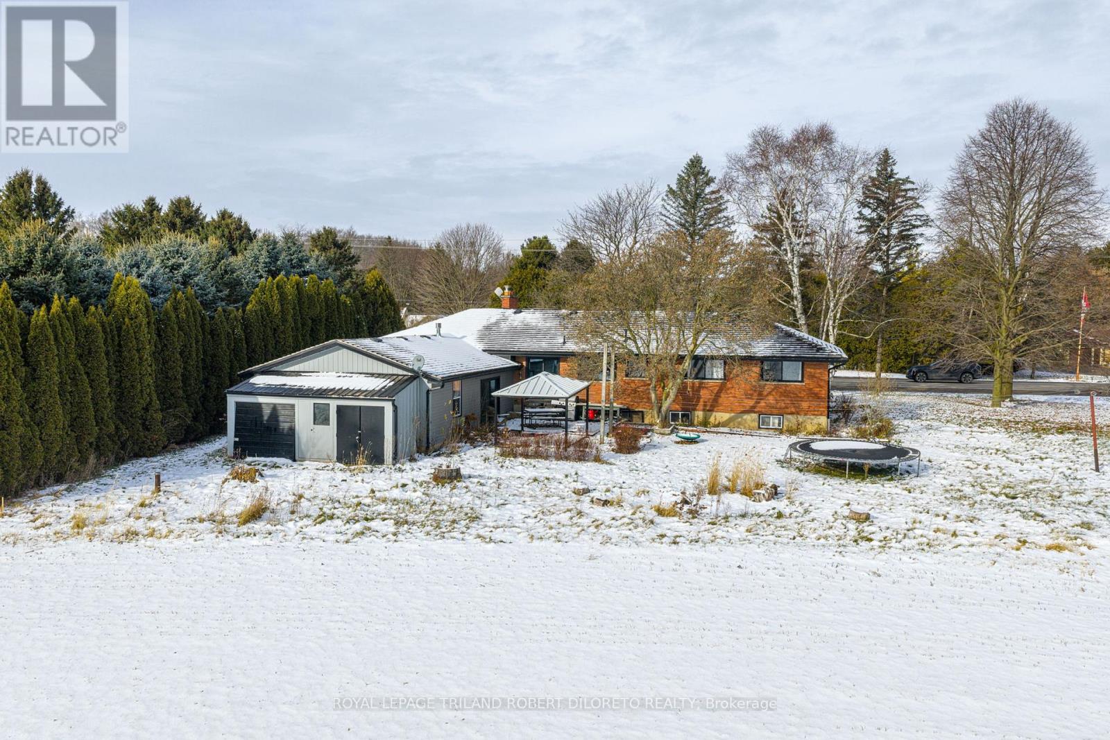 Over 2 ACRES of country living on paved road just west of London! Very spacious 3+2 bedroom, 3 bath bungalow with updates, finished lower level and main floor family room conversion. Carpet free; neutral decor; open concept main floor living areas include kitchen with white cabinets and island open to living and dining areas; 3 main floor bedrooms; family room with 5pc bath and storage; large lower level; Loads of potential and fast possession available. Easy access to London, Delaware and HWY 401 & 402! More details available. (id:64974)