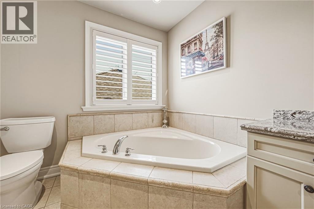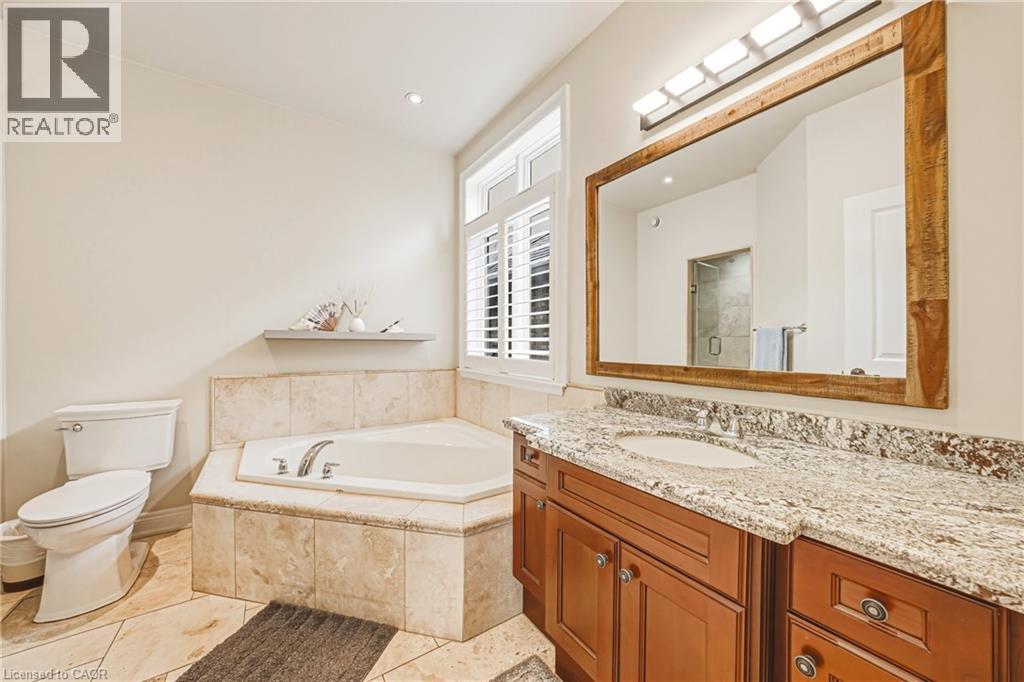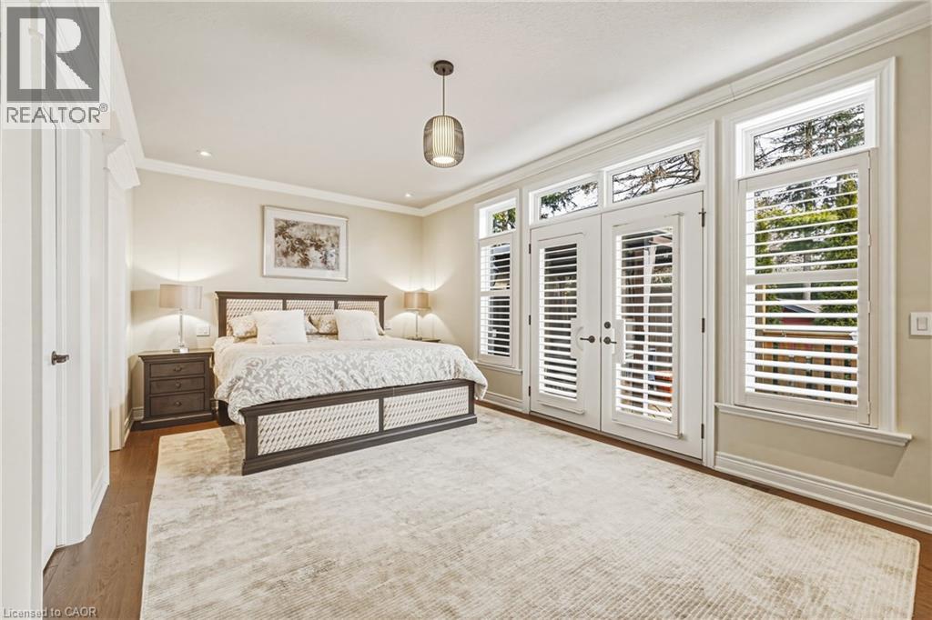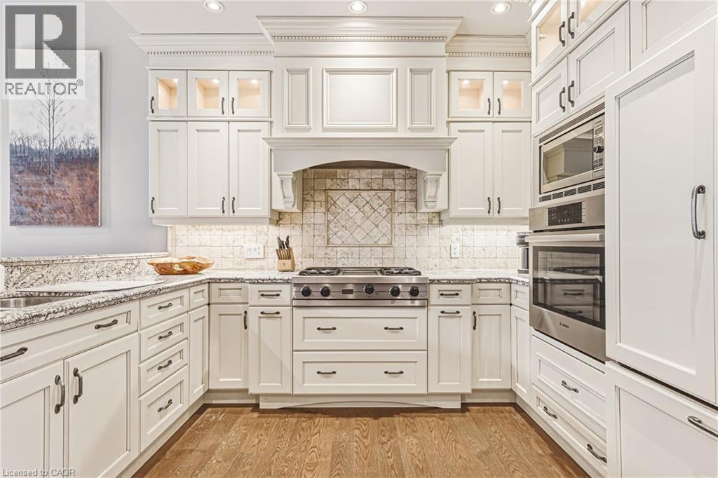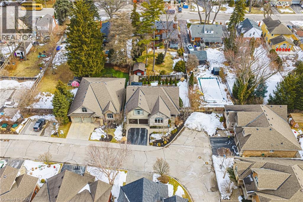 This STUNNING renovated, detached BUNGALOFT sits in a quiet enclave in Aldershot. Featuring 3+2 bedrooms, 3.5 bathrooms, over 2400 square feet PLUS a fully finished lower level and a DOUBLE car garage! The home features quality designer finishes and fixtures throughout. The open concept floor plan boasts vaulted ceilings, hardwood flooring and plenty of natural light. The large foyer opens to the dramatic, oversized dining room with 14’ ceilings. The incredible kitchen features custom cabinetry, a large accent island, granite counters and top-quality appliances. The kitchen flows directly to the large 2-storey family room which includes custom built-ins, a gas fireplace, in-wall speakers and two sets of french doors leading to the private backyard. The large primary bedroom has a walk-in closet and a spa-like 4-piece ensuite with heated flooring. The main level also includes a separate powder room and garage access! The 2nd level includes 2 spacious bedrooms, a beautiful 4-piece bathroom and laundry room. The professionally finished lower level features 9 ft ceilings, radiant in-floor heat flooring throughout, 2 bedrooms AND a den, a 3-piece bathroom, large rec room / media room and plenty of storage space! The exterior of the home has been extensively landscaped and features a private low maintenance backyard with a large deck and turf! Amazing location- close to all amenities and transportation! (id:64974)