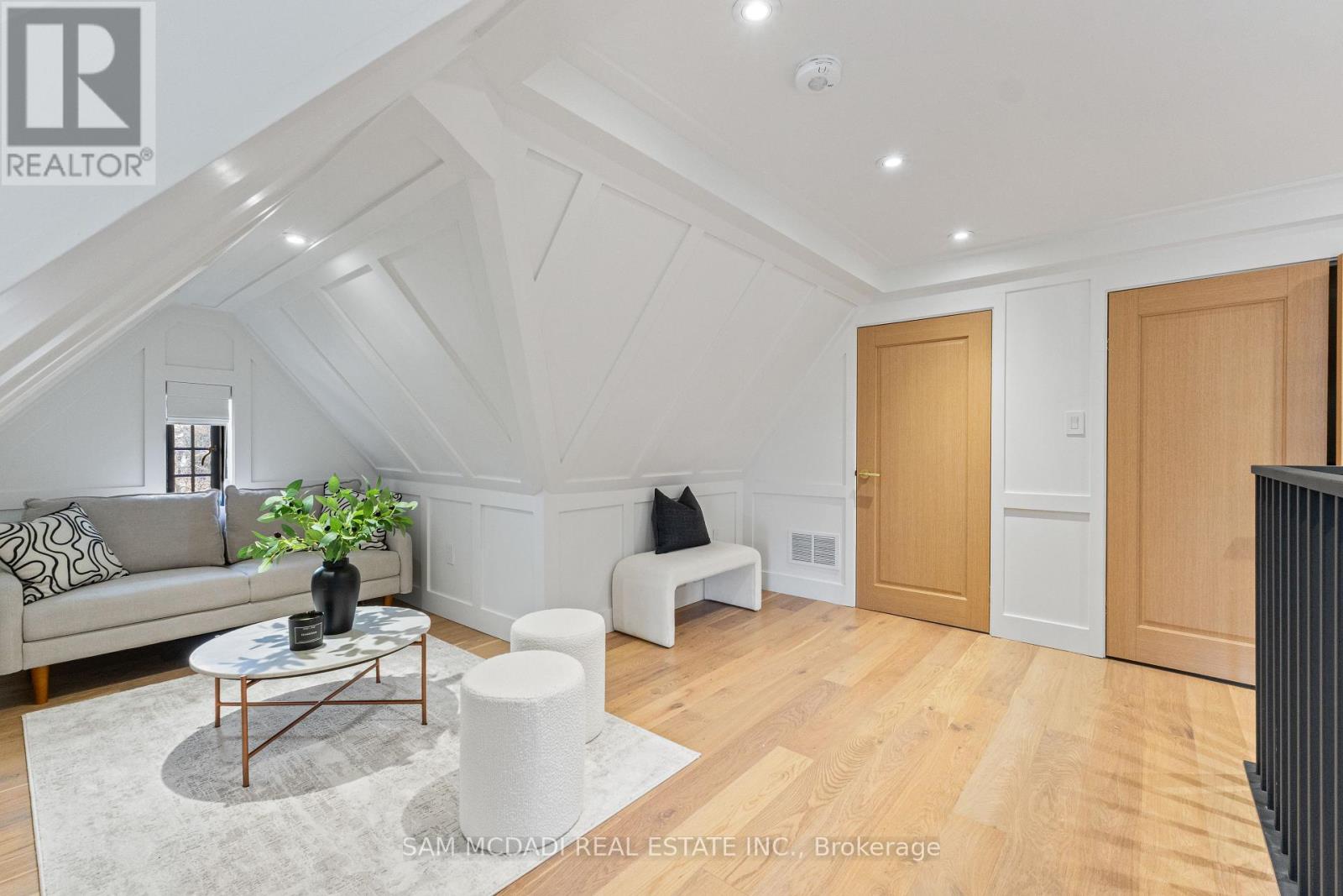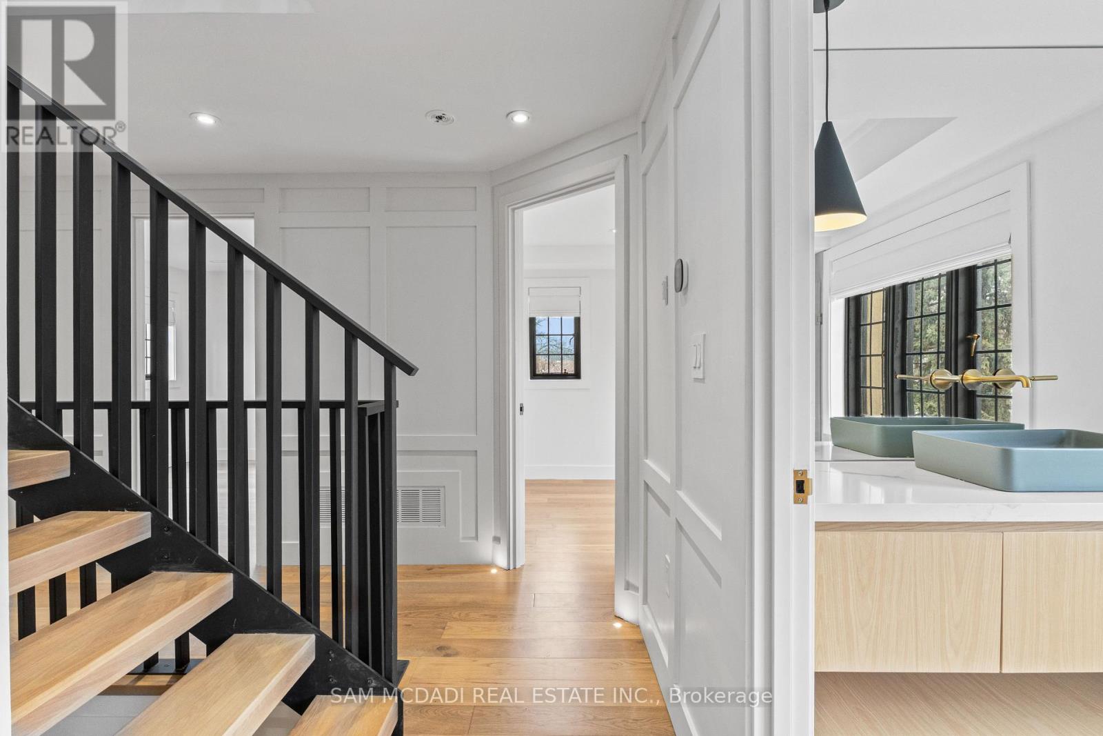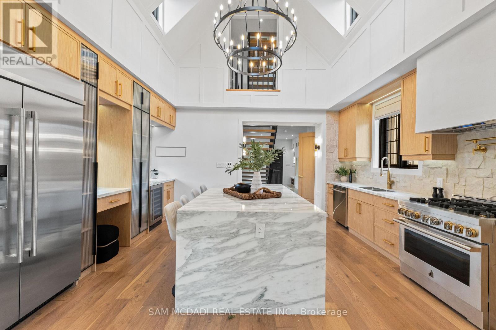 Welcome to the famous George Unsworth home, a high quality Neo-Tudor style home constructed with cut & carved stone alongside a textured stucco exterior finish. Redesigned by renowned architect Walter Scott, and located in Aldershot's upscale neighbourhood, this beautiful home w/ approximately 5,000 SF total has been completely reimagined w/ a modern yet charming design. Upon entering, you'll find large principal rooms enhanced with sophisticated hardwood floors, LED pot lights, panelled walls, and more. At the heart of this home is where you'll locate the chef's kitchen elevated w/ a centre island, stone countertops, JennAir appliances, charming stone backsplash and ample cabinetry space. Overlooking the kitchen is the grand family room, which boasts cathedral ceilings, a stone fireplace, and direct access to your covered outdoor patio, perfect for al-fresco dining with loved ones. Also on this level is the formal living room, which features a fireplace, wood beam ceilings, and access to the outdoor patio, as well as a home office perfect for professionals working from home. Ascend to the owner's suite, curated with a boutique inspired walk-in closet, a wet-bar, and an oversized 6-pc ensuite w/ heated floors, a soaker tub, and a rainfall shower. 2 more bedrooms with built-in closets and a shared 3-pc bath with heated floors are down the hall. The loft can easily serve as a nanny or in-law suite, featuring a spacious bedroom w/ a 3-pc ensuite, a seating area, and a separate laundry room. The basement completes this home with perfect entertainment spaces incl: a wet bar, a large recreation room, a 5th bedroom, a 3-pc bath w/ heated floors, and a den that can serve as a gym, play room, spa, or theatre - the possibilities are endless. Beautifully situated in a highly rated family oriented neighbourhood nearby top rated schools, grocery stores, shopping malls, lakeside parks and trails & more. A piece of history with a modern twist! (id:64974)
