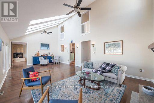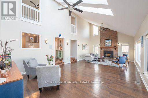 Wow 250 feet with westerly views on beautiful Buckhorn Lake. This fantastic waterfront home features over 5000 square feet of finished living space with many updates. Featuring 4+ bedrooms, 3 baths, cathedral ceilings, hardwood floors, 2 gas fireplaces, 2 wood burning fireplaces and 5 walkouts with lake views. Enjoy the perfect separate space for in-laws or visiting friends including a newly renovated bath and walkout to the deck. The large bright laundry room has convenient access to the double car garage. The amazing finished lower level with walkout includes a gym, family/games room and a theatre room. The property is level and is great for family games, has good swimming off the dock, a fire pit and a large private deck lakeside. This bright waterfront home complete with a newer septic is the perfect family home or rental for family reunions or work functions. The possibilities are endless. Buckhorn Lake is part of a 5 chain of lakes with lock free boating. Enjoy boating destinations of Buckhorn and Bobcaygeon, watersports, great fishing and all the Trent Severn Waterway has to offer. Situated at the end of a dead-end township road, a short drive to Peterborough and great access for commuters. (id:64974)