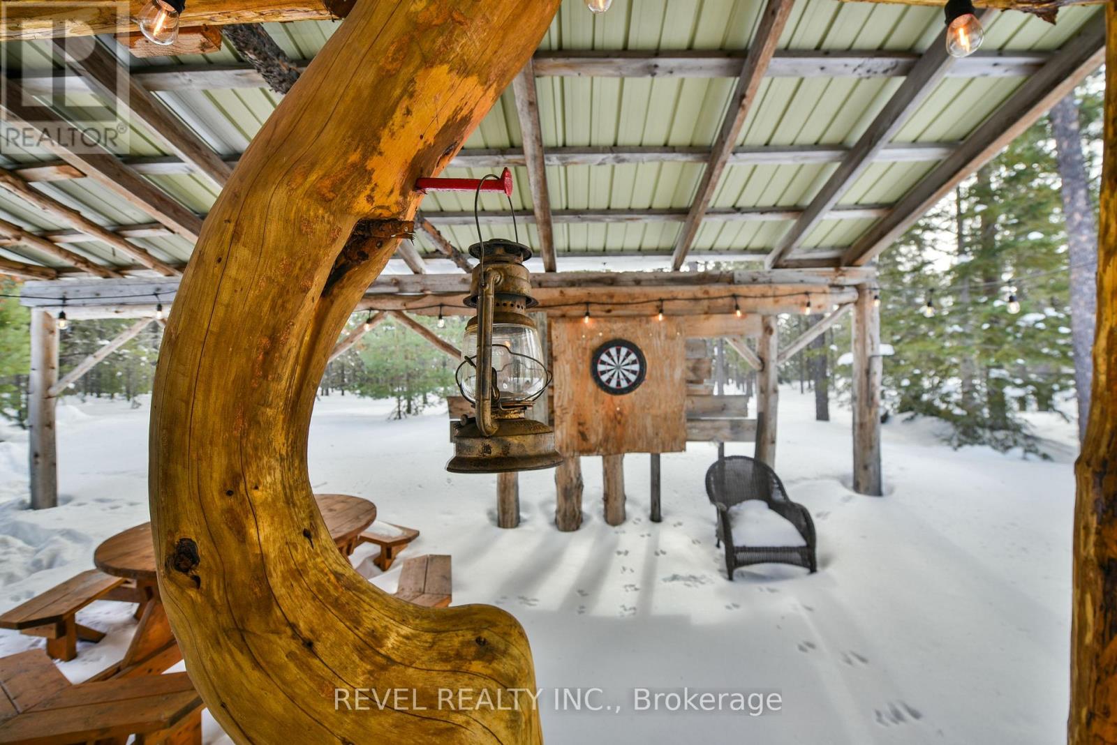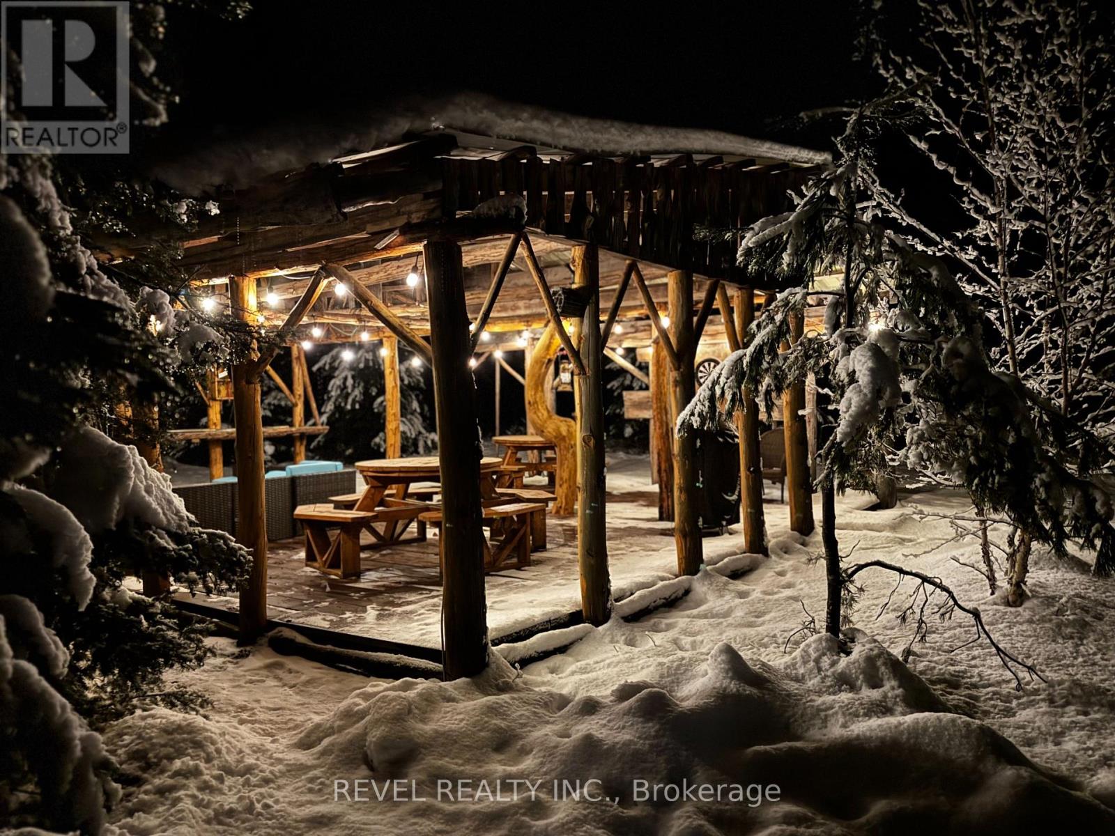 If privacy, nature, and year-round adventure are at the top of your wish list, this property delivers in a way few can. Set on over 15 acres of beautifully treed land and backing directly onto Kettle Lakes Provincial Park, you'll enjoy a peaceful, natural backdrop of protected forest and endless trails right beyond your property line. Mature trees and wide-open space create a setting that feels secluded and serene - the kind of Northern Ontario lifestyle so many buyers are searching for. The all-brick bungalow offers an inviting open concept layout with a bright kitchen, dining, and living area, hardwood floors on the main level, and a brand-new patio off the kitchen overlooking your acreage. It features 1+2 bedrooms, 2 full bathrooms, and new electrical throughout - including underground wiring run to the pavilion and garage. Located directly across the road from OFSC snowmobile trails, this is a four-season outdoor enthusiast's dream. Head out for a ride straight from your driveway in the in the winter, explore the surrounding wilderness year-round, and enjoy the rare combination of privacy and recreation all in one location. The outdoor space is thoughtfully designed for gathering and entertaining. A charming pavilion with a brick fireplace - complete with new underground wiring- offers incredible potential as an outdoor kitchen or cozy retreat for evenings by the fire. The impressive 26x30 wired and heated garage with lean-tos on both sides and at the rear provides exceptional space for recreational toys, equipment, or workshop needs. Both the home and garage feature durable metal roofs and a new well was drilled (3yrs). The home is move-in ready and thoughtfully updated. (id:64974)