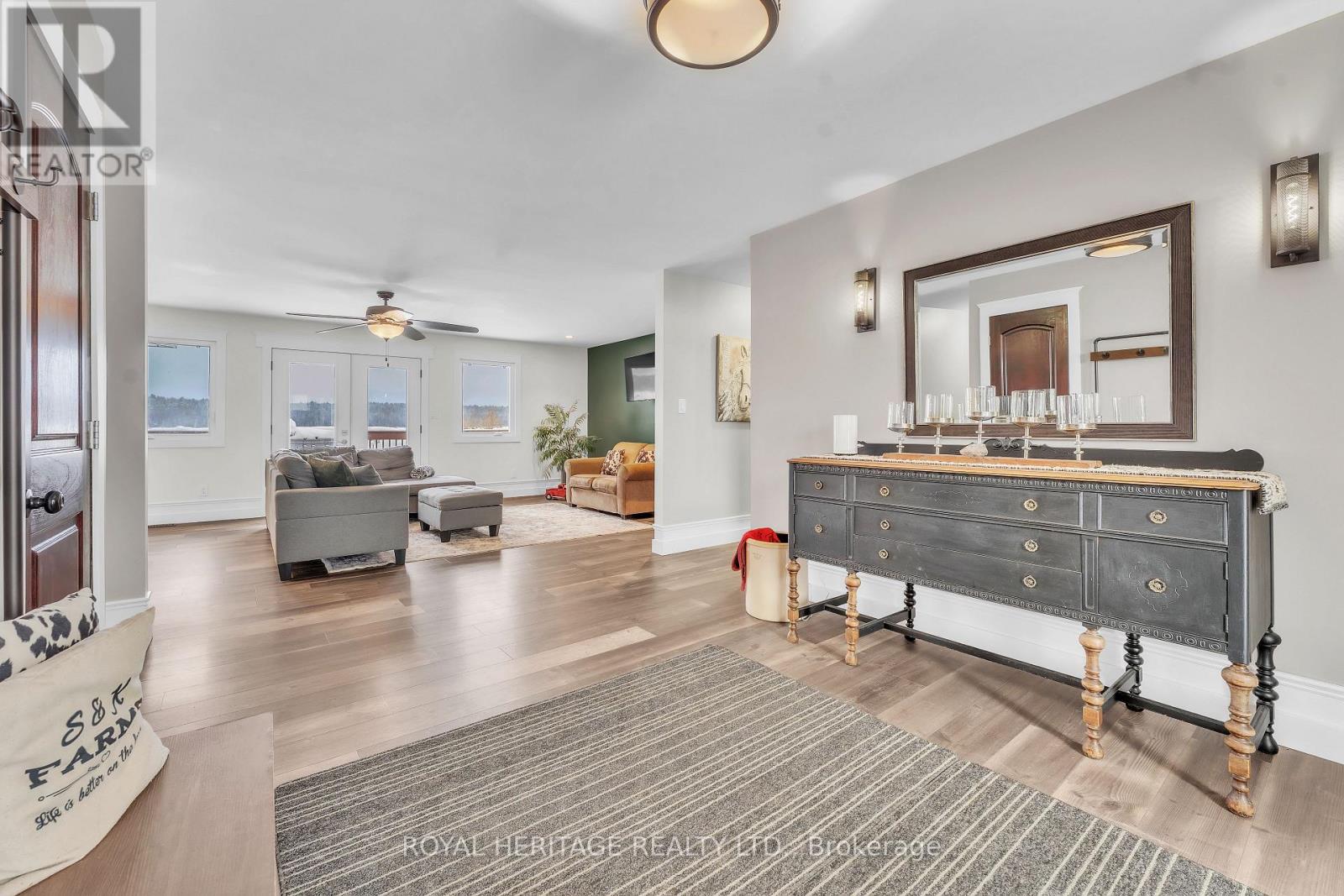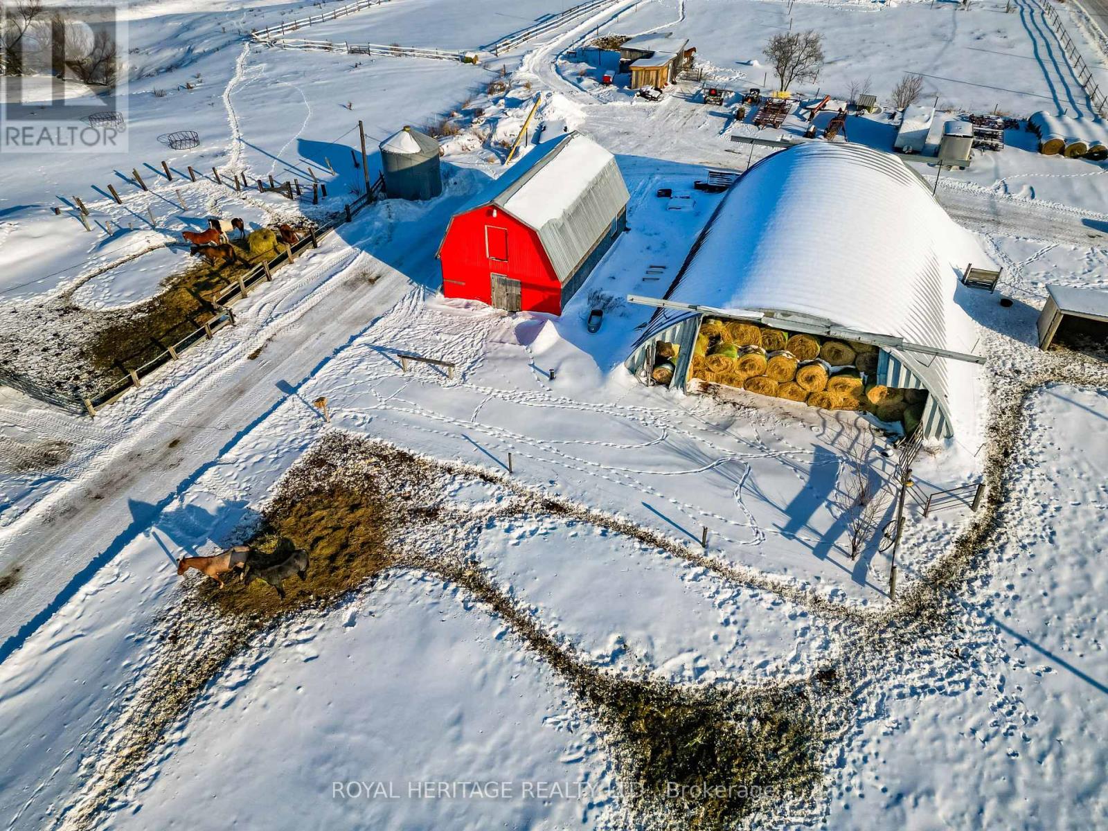 Turnkey 164-acre agricultural/commercial farm operation located at 979 Stewart Road, Cache Bay, Ontario. Property consists of 100 acres tile drained, 46 acres of bush, and multiple electric-fenced pastures with 6 paddocks, supporting an established cattle and horse operation. Productive land with two cuts of hay annually yielding approximately 600 round bales. Improved with a 2016-built bungalow offering over 4,500 sq ft of finished living space, 5+2 bedrooms, 3 bathrooms, walkout basement with rough-in for a second kitchen, and in-floor heating in the basement and double car garage, suitable for owner-operator residence, staff housing, or multi-generational use. Farm infrastructure includes a barn, newer Quonset building, and two drilled wells, providing strong operational capacity for livestock, hay production, and mixed agricultural use. (id:64974)