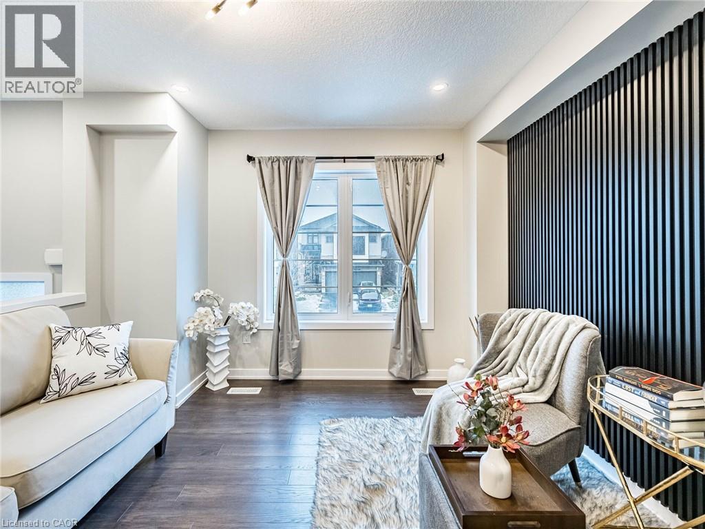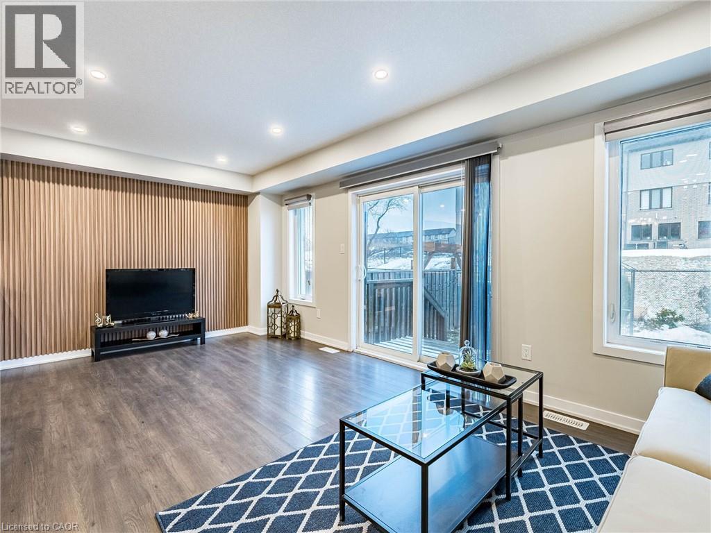 Spectacular this exquisite Freehold Townhouse, crafted by Empire Homes, is nestled in the prestigious Stoney Creek community. Spanning 1744 sqft, this stunning residence boasts 9' ceilings, 3 generously-sized bedrooms, and 3 elegant bathrooms. Step inside and be captivated by the inviting open-concept layout adorned with gleaming hardwood floors on the main level and laminate on the first floor. The spacious family/living room seamlessly flows into a sunlit, upgraded contemporary kitchen featuring stainless steel appliances, an oversized breakfast island, and direct access to a beautifully tiled patio with a gazebo perfect for entertaining guests. The master suite is your personal retreat, offering a spacious walk-in closet and a private ensuite. Enjoy the convenience of bedroom-level laundry and the elegance of upgraded light fixtures throughout. The unfinished basement offers limitless potential for future expansion. Outside, the backyard is ideal for hosting BBQs and outdoor gatherings. The water heater is owned, not rented, adding to the home's convenience and peace of mind. This home is perfectly located near major highways, schools, shopping destinations, the Go Station, golf courses, and more. Plus, it backs onto beautiful trails and waterfalls, providing a serene backdrop for relaxation and outdoor activities. Show with confidence ! (id:64974)