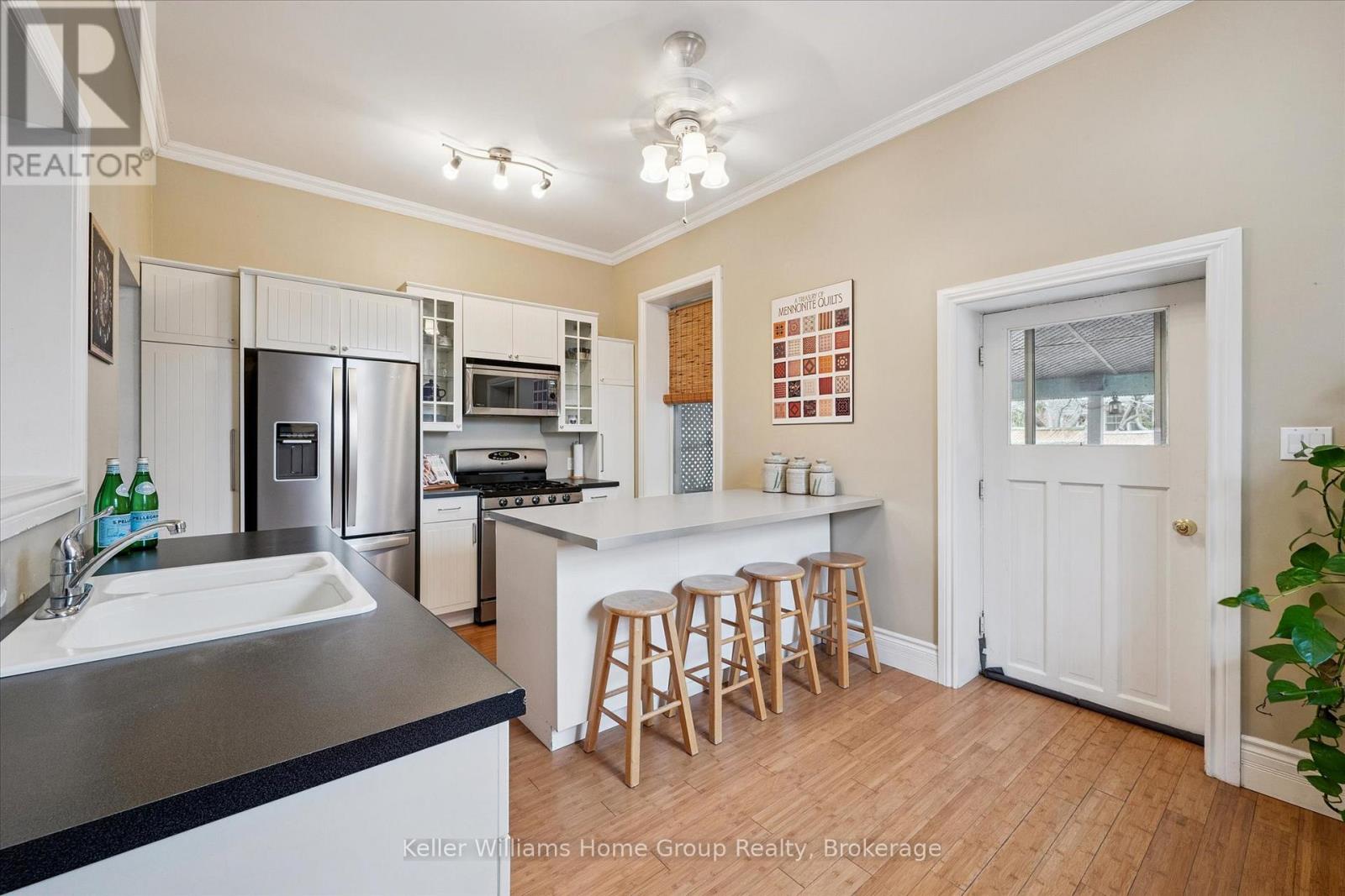 JUNCTION 3 BEDROOM BUNGALOW! This bright and airy 3 bedroom Ontario cottage style bungalow located in the Junction offers modern conveniences combined with old home charm! At almost 1200sf, this home has a wonderful, functional layout which is ideal for both everyday living and entertaining. At the front of the house are three spacious bedrooms and a large, bright living room. Further back, you'll find 4 pc bath, a formal dining room with beadboard and a bright 3 season sunroom off the side, perfect for morning coffee. There's also main level laundry for added convenience! At the rear of the house is the updated kitchen with peninsula that has backyard access. Outside in the fully fenced yard is a large covered patio area and a wonderful pool! Move in just as pool season starts and take advantage of it all summer long. They don't make homes like this anymore! Walking distance to downtown Guelph, bus routes, the Farmers Market, Fixed Gear Brewery and more. Updates include AC, fridge, dishwasher, washer/dryer, pool pump, heater, liner and chlorinator (all 2024). (id:64974)