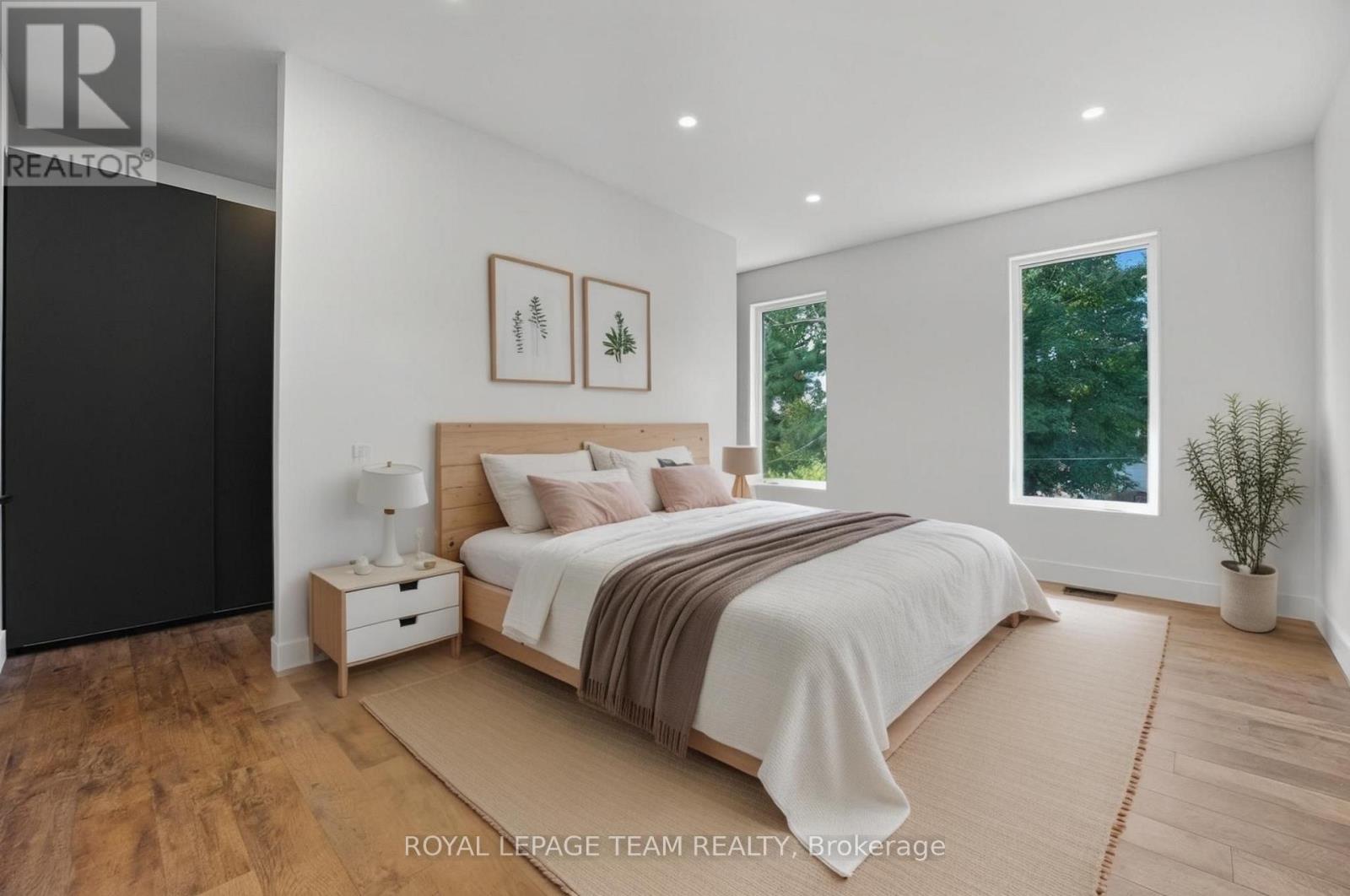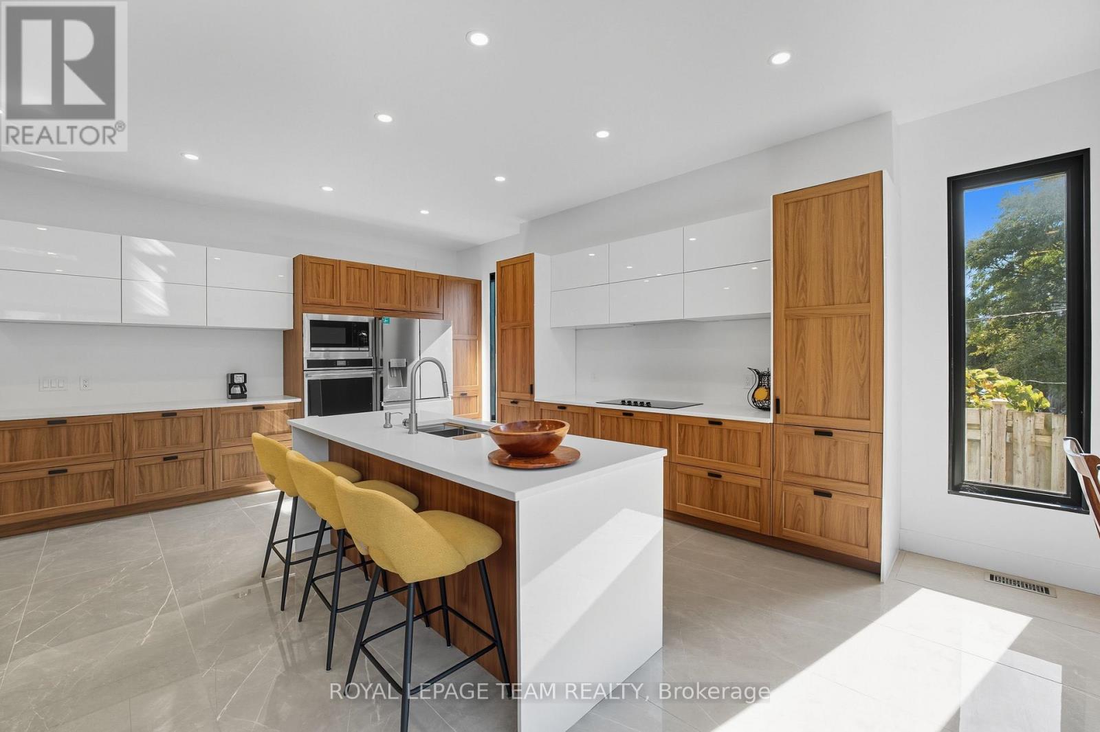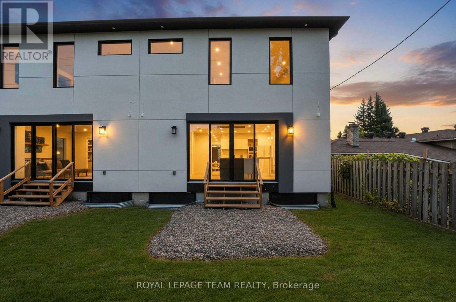 This custom semi at 984 Watson blends modern design, and low maintenance luxury with everyday function and flexibility - Featuring over 2,900 sq.ft. of living space, 4 beds, 4 baths, and an attached garage with inside entry. The main level showcases a modern open concept layout anchored by a two-tone kitchen (waterfall island, quartz counters, double wall ovens, sleek cooktop, under-mount island sink) set against large-format polished porcelain and pot lights; dining flows to a bright great room with a linear feature fireplace and oversized black-framed sliders to the yard, while a statement open-riser staircase elevates the architecture and a mud/laundry plus powder room keep life effortless. Upstairs, wide-plank wood floors lead to a bright office area / loft, and three generous bedrooms, including a primary retreat with a custom walk-in closet with built-ins, and spa-style ensuite (double vanity, freestanding soaker, oversized glass shower); a chic family bath adds an oversized shower with rain head + body jets. The lower level offers incredible flexibility, designed with a self-contained suite complete with private exterior entrance, living area, 4th bedroom, full bath, and kitchenette/wet-bar. Perfect for multi-generational living, an in-law suite, teenage retreat, home office, or private rental income unit. Prefer single-family living? The space can easily be re-opened to extend the main home's lower level.Step outside to enjoy an easy-care yard and unbeatable convenience: minutes to IKEA, Bayshore Shopping Centre, good schools, Algonquin College, and Hwy417, with fast transit at Pinecrest Station on the east-west LRT extension; parks, the Ottawa River Pathway, Elmhurst Park, Frank Ryan Park, and Britannia Beach are all close by. Disclosure: Sale is conditional upon final registration of the approved severance. Conditional consent has been granted, and municipal requirements have been satisfied. Final registration is in progress with the Seller's lawyer. (id:64974)