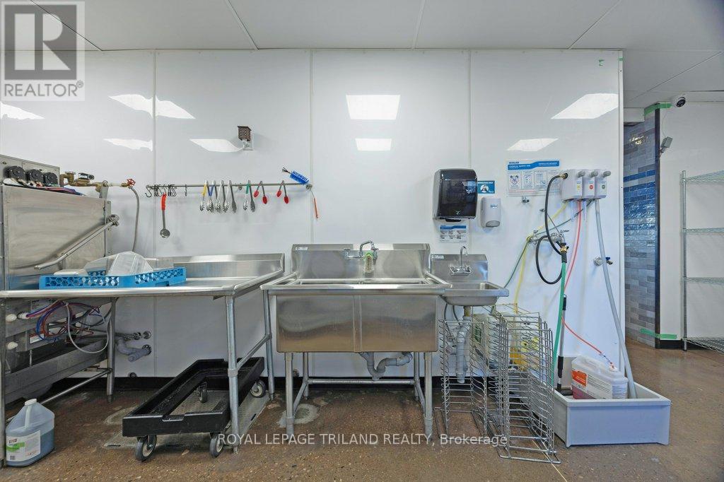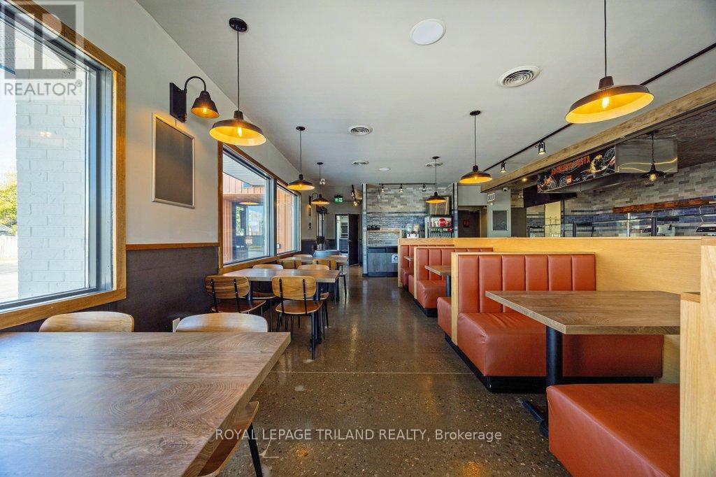Prime 3,433 sq. ft. commercial building located in the heart of downtown St. Thomas, positioned along the east end of Talbot Street in a high-traffic corridor. Previously operated as a pizza restaurant and convenience store, the property has been fully renovated within the past three years, including significant upgrades to heating, electrical, plumbing, washrooms, air conditioning, and flooring.The front portion of the building, approximately 2,000 sq. ft., is ideally configured for restaurant or food service use and includes an existing hood and kitchen area. A built-in wood-fired pizza oven may be available; however, it is not warranted by the landlord. Any equipment shown in marketing materials may not be included as part of the lease. This front section is fully barrier-free and features accessible washrooms.The rear portion offers approximately 1,400 sq. ft. of open-concept space, providing excellent flexibility for a variety of retail, service, or storage uses. The layout allows the premises to be leased as a single unit or demised into two separate spaces, subject to lease terms.Ideally located just one block from the Walmart Plaza site and one block from the busiest traffic intersection in the city, the property benefits from strong surrounding commercial activity. Nearby national tenants include McDonald's, KFC, the LCBO, and other well-established businesses, making this an exceptional retail opportunity.Offered on a net lease basis with a base rent of $25.00 per square foot. Tenants are responsible for common area costs, including realty taxes (currently $6.65 per sq. ft. or $22,848.92 annually), insurance (currently $1.11 per sq. ft. or $3,792.96 annually), as well as maintenance, snow removal, landscaping, and grass cutting. Floor plans are available upon request. (id:64974)