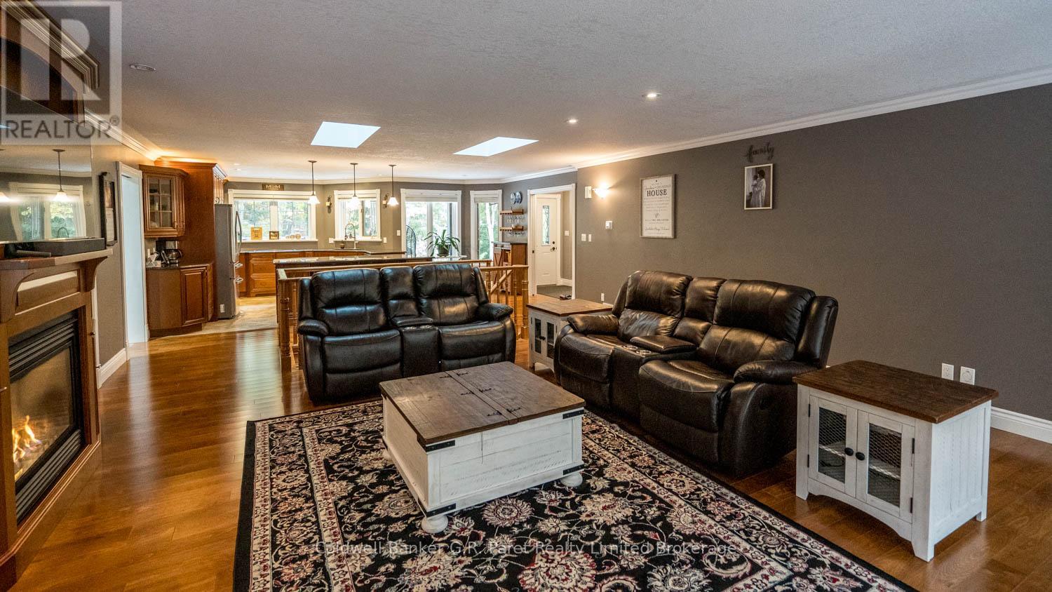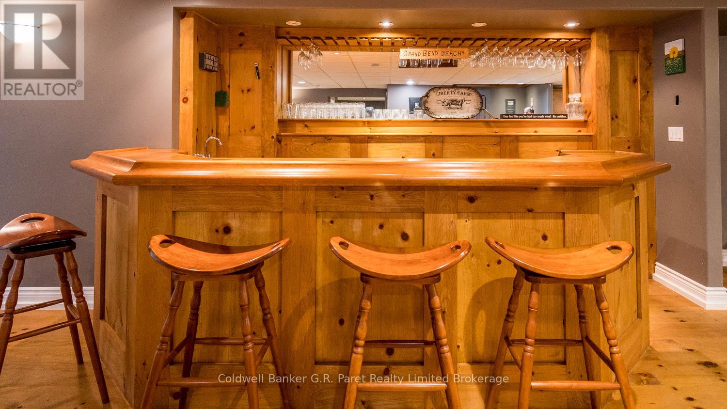 CUSTOM BUILT EXECUTIVE BUNGALOW RESTING ON 9.7 ACRES BACKING ONTO ENDLESS TRAILS AND BEACH ACCESS VIA PINERY PARK. This Meticulously Maintained 3600 Sq Ft. 4 Bed/4 Bath full brick House with an immaculate Detached Insulated Heated Shop creates the perfect experience of tranquility while maintaining the perfect location with all amenities within a short distance. The Newer Home features chef's kitchen & Island with granite counter tops, main floor laundry, Open concept kitchen and living room with a gas fireplace, alongside a Generous sized Master bedroom with; a 2nd Gas fireplace, walk-in closet and vast En-suite bath with double vanity. also features a stellar office, den (currently used as 5th bedroom), Man cave of your dreams with; a walk-out seperate entrance, a kitchenette, pool table, wet bar, and 3rd gas fireplace which makes it perfect for an in-law suite. The property has endless parking, and plenty of room for all your Rvs, Boats, or Atvs. Updates include Brand new Eavestroughs with leaf guards, front porch Veka Deck boards (better then composite), New rear and side stamped concrete decks, as well as Celebright lights (lights built into the soffit that match any occasion) This home is Perfect for the outdoor enthusiast, Large families, Atv/Snowmobile/Boat/Rv owners or buyers just looking for premium privacy. You'll fall in the love the moment you arrive with the breath taking oak savannah canopies and vast assemblage of natural beauty and wildlife. (id:64974)