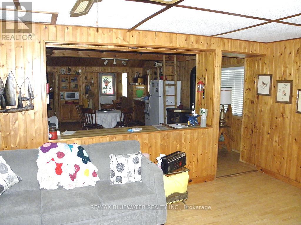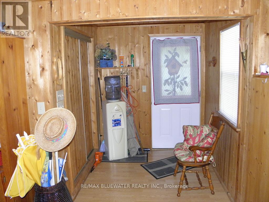 Lake Front furnished 3 bedroomLake Front furnished 3 bedroom cottage on beach at Kettle Point, walls, ceiling & crawl space are insulated, does have electric baseboard heating, plus a propane stove fire place, 3 piece bath, 20 x 12 foot deck on lake side and a 15' x 10' deck on the road side. 60 amp hydro service, metal roof on cottage new in 2018. 5 windows new in 2024, bedroom windows new in 2023, open concept with vaulted pine ceilings. Laminate flooring in all rooms. 2 bedrooms on main floor have closets, 3rd bedroom is an open loft bedroom overlooking kitchen- dining area with lots of space for 2 beds. Septic system is a holding tank, Water is currently supplied by underground storage tank. Storage shed 15' 9" x 10' 3" has hydro, riding lawn mower is included. Over 3 miles of beach to walk. great location for the family is located on drive on beach but no cars come down this far. Many mature trees on lot. Located on paved road very short walk to great sand beach at Ipperwash. Great view of Lake Huron. Several great public golf course within 15 minutes, 20 minutes to Grand Bend, 40 minutes from Blue Water Bridge in Sarnia. Come and enjoy the fantastic sun rise and sunsets over Lake Huron and the great sand beach to enjoy long walks on over 3 miles of beach Note: Located on leased land at Kettle Point, current land lease is $3,000. per year plus Band fees of $3,987.50 per year which pay for garbage collection, road maintenance, police & fire protection and water. There are no taxes to pay, taxes shown on listing are actually Band Fees (id:64974)