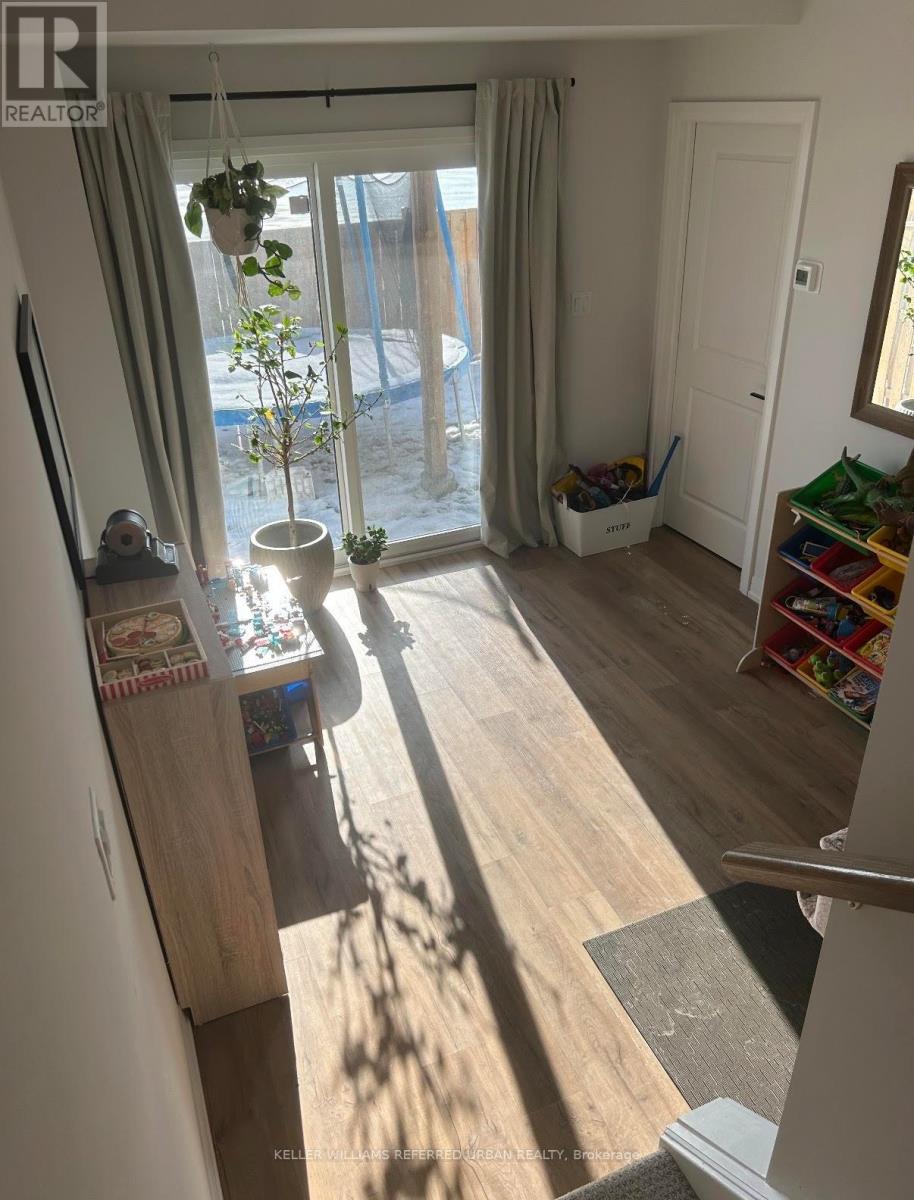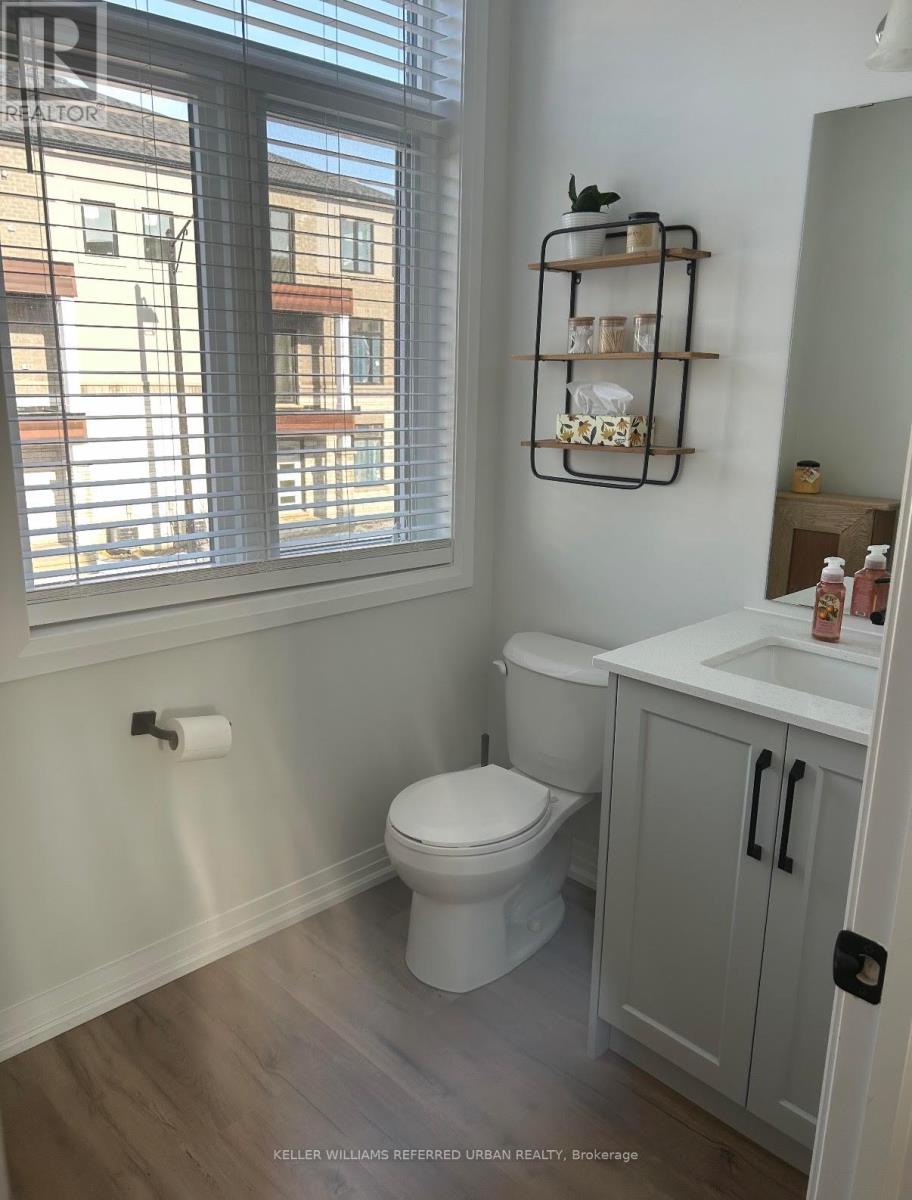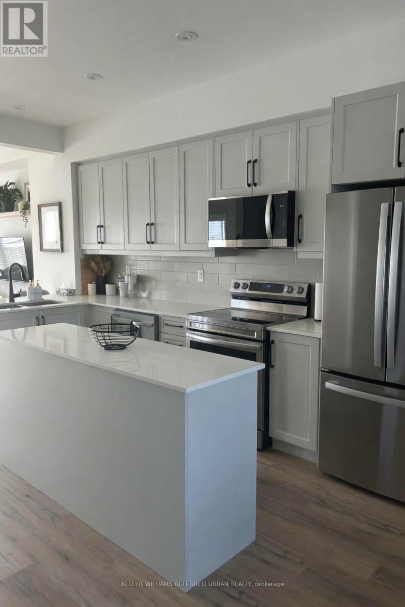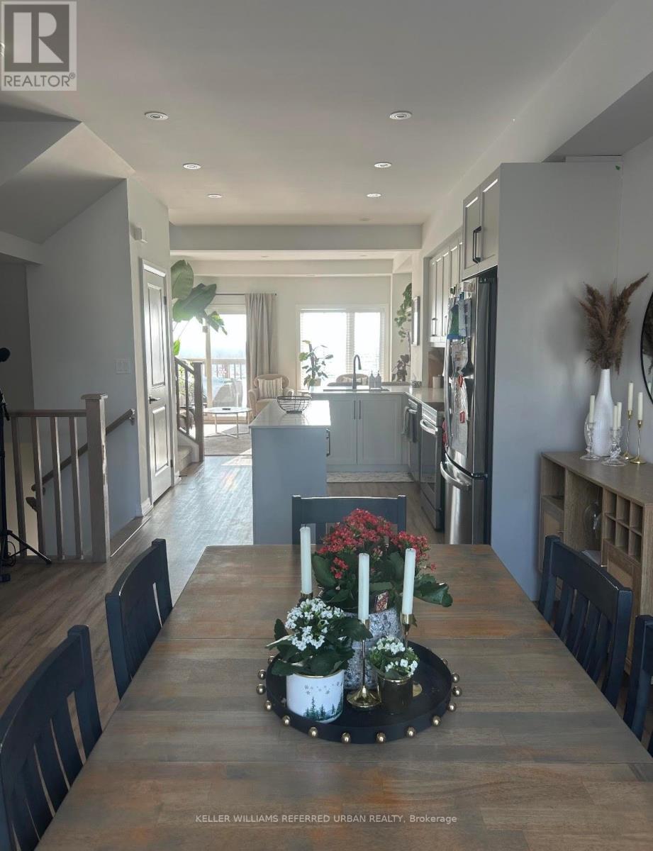 A sophisticated, impeccably maintained 3-bedroom, 3-bathroom townhouse offering approximately 1,500 sq ft of beautifully finished, turnkey living in one of Cambridge's most desirable communities. Thoughtfully designed with both style and functionality in mind, the open-concept main level is filled with natural light and enhanced by 9-foot ceilings, wide plank flooring, and expansive windows that create an airy, elevated atmosphere. The seamless flow is ideal for both everyday living and refined entertaining. The chef-inspired kitchen serves as the heart of the home, showcasing designer finishes including crisp white cabinetry, quartz countertops, stainless steel appliances, a timeless subway tile backsplash, and a generous centre island perfect for gathering.The dining area overlooks the backyard and private deck through oversized windows, creating a bright and inviting setting for family meals or hosting guests. Step outside to the deck an ideal extension of the living space, perfect for summer barbecues, morning coffee, or relaxed evenings outdoors. Upstairs, well-proportioned bedrooms offer comfort and privacy, including a spacious primary retreat. The smart layout maximizes space and functionality, delivering low-maintenance luxury without compromise. Complete with both garage and driveway parking, this home offers rare convenience and everyday practicality an exceptional advantage in townhouse living. Ideally situated in a family-friendly neighbourhood close to parks, top-rated schools, shopping, and major commuter routes, this home offers the perfect balance of upscale living and everyday convenience. An exceptional opportunity for discerning buyers seeking designer style, comfort, and long-term value in Cambridge. (id:64974)